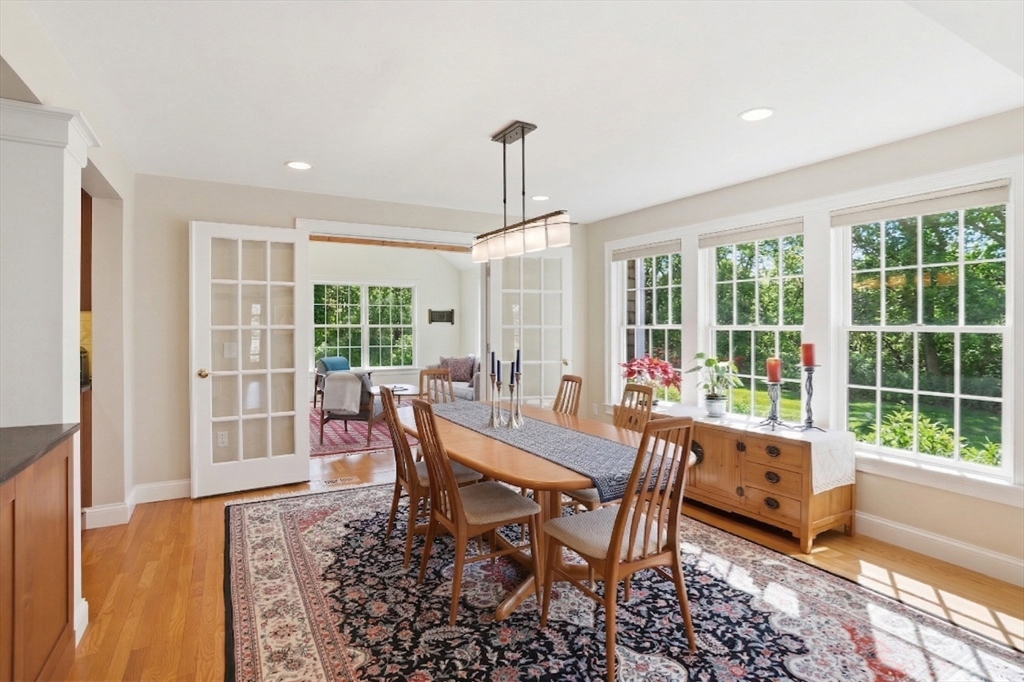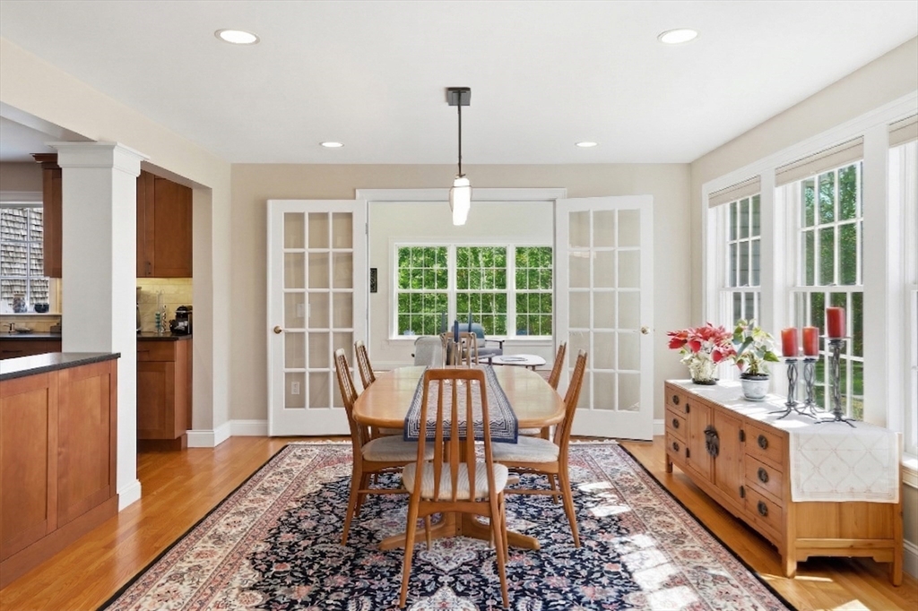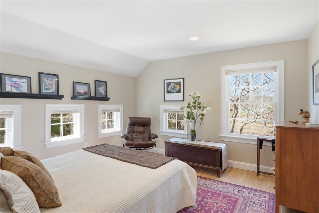 This distinguished home in Edgartown’s Bold Meadow neighborhood features light-filled interiors highlighted by south-facing windows in a cathedral-ceilinged Great Room that flows into a new sunroom. The main house offers 3 bedrooms, complemented by a spacious detached 900-sf guest apartment above an oversized garage, ideal for hosting. Recent upgrades include a renovated kitchen, updated primary bath, and thoughtfully integrated sunroom. Set on 1.5 acres with greenbelt on three sides, the property offers privacy, expansion potential, and room for a future pool. A full-height basement provides additional possibilities such as a media room or gym. Located less than 3 miles to Edgartown Village and close to Morning Glory Farm, the home also benefits from 30 SunPower solar panels for energy efficiency. Move-in ready and meticulously maintained