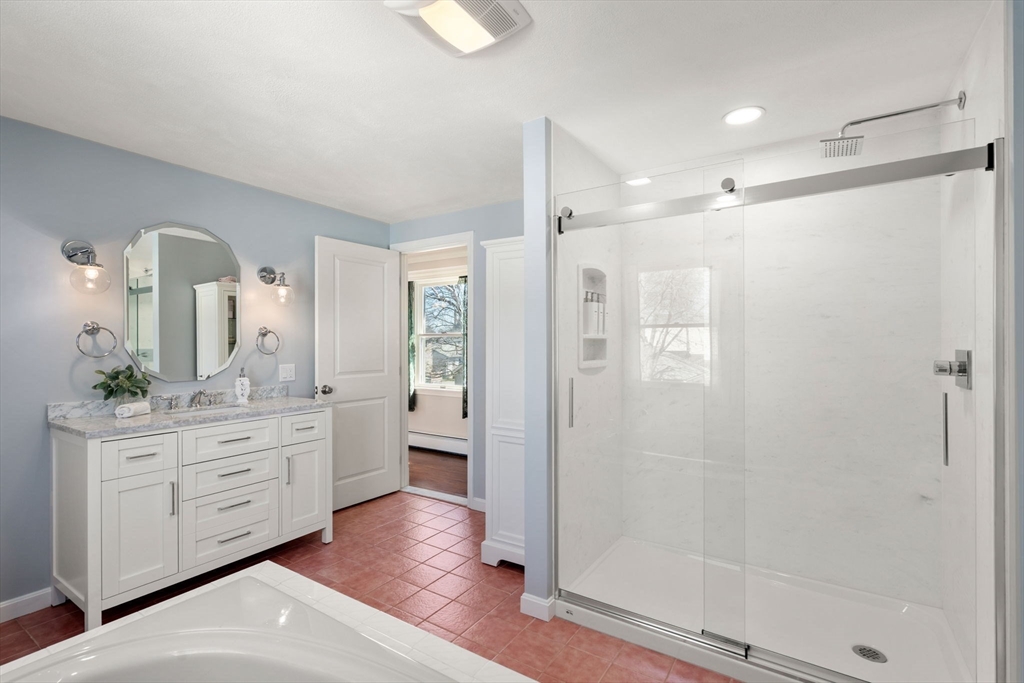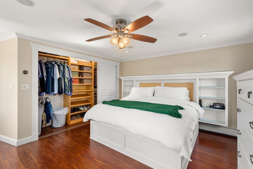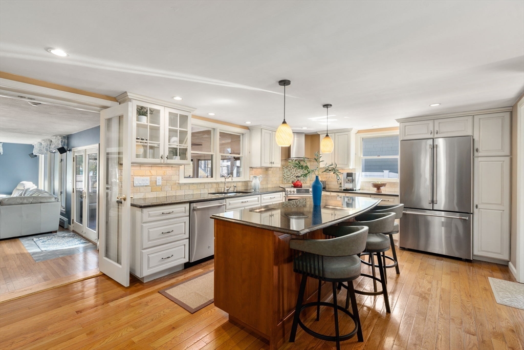 Meticulously maintained by the same family for nearly 45 years, this home showcases true pride of ownership throughout. The sun-filled living room features custom built-ins and a stunning stained glass window. A thoughtfully designed kitchen offers an oversized island, pantry, and ideal flow for cooking and entertaining. Convenient mudroom off the driveway adds everyday functionality. The family room w/ custom media console and dining room w/ built-in seating and shelving add charm and character. Enjoy seamless indoor/outdoor living w/ a spacious screened porch featuring hardwood floors, skylight, and French doors. Upstairs offers 4 bedrooms w/ hardwood, 2 including custom built beds and storage solutions, Primary bedroom w/ custom bed plus a refreshed primary bath with soaking tub, shower, and updated vanity. Lower level provides storage, laundry, & playrooms. Private fenced yard w/ patio completes the home.Convenient location close to shopping, dining, and commuter routes. Ev Charger