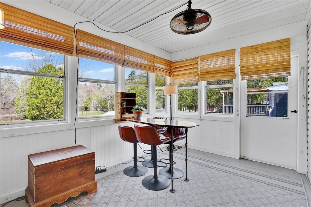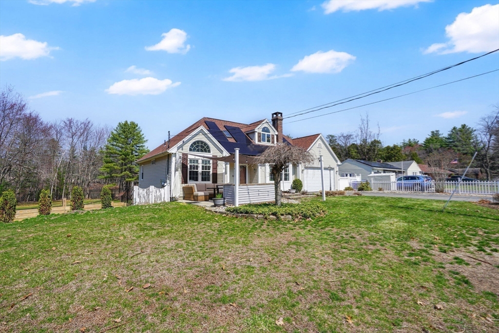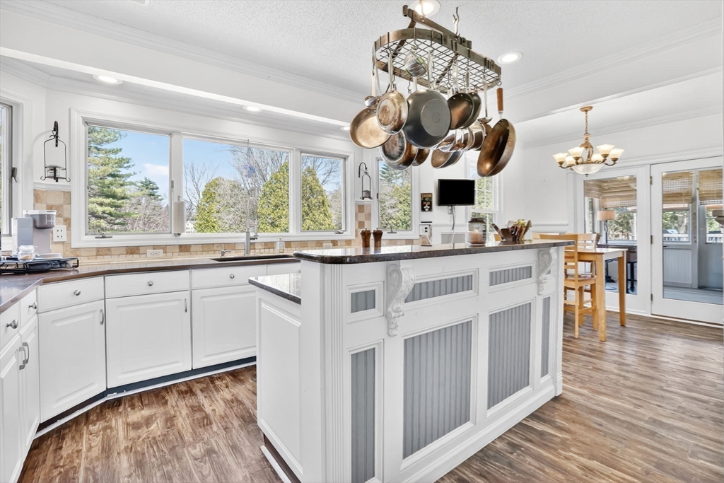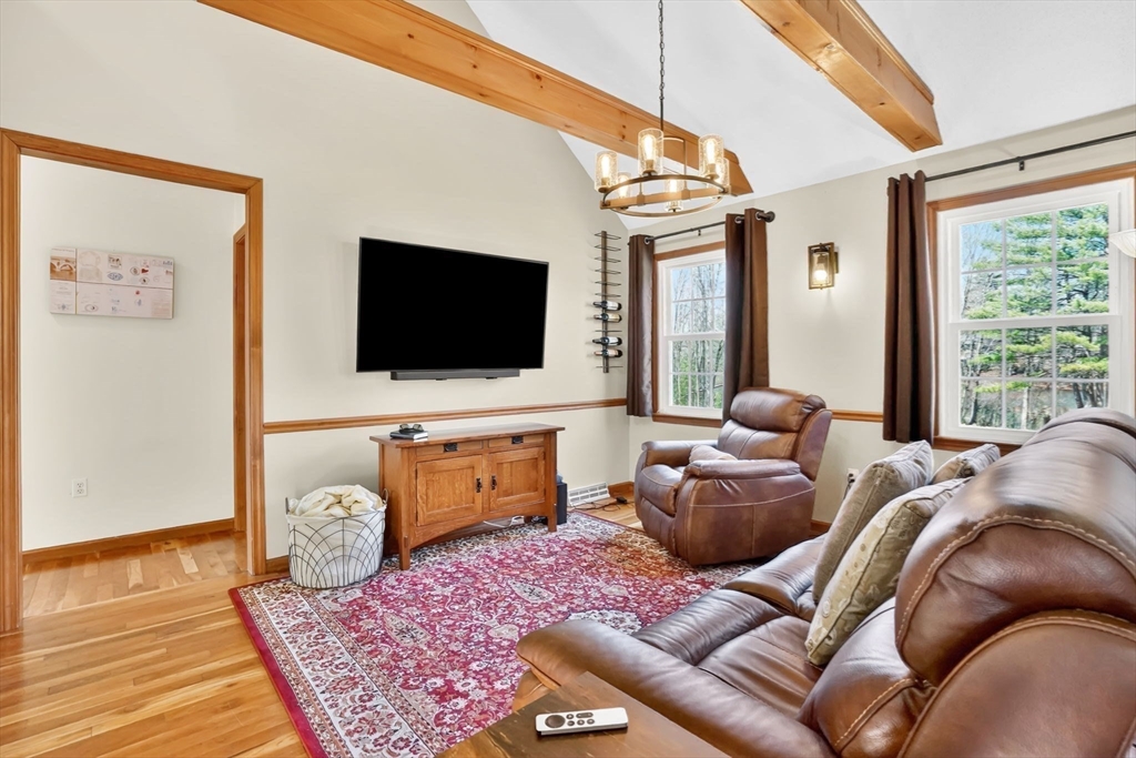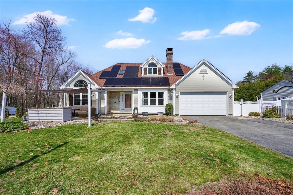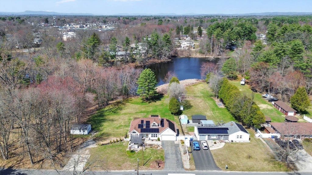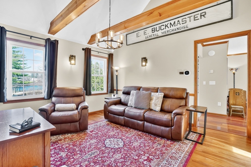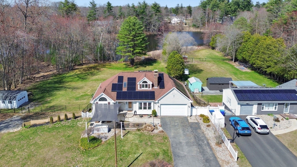 Expect to be impressed...expansive custom built Contemporary Cape set on just over an acre lot with stunning views of Mill Pond!! Welcomed by soaring foyer flooding with natural light from the skylight that opens the floor to Rustic beamed Living Rm with vaulted ceiling & Dining Rm featuring cozy fireplace & wall of windows. Breathtaking views in the modern Eat-In Kitchen featuring SS Appliances with Gas Stove, RR lights, granite counters, Pantry, convenient Laundry Closet & access to cozy 3 Season Rm keeping you inspired by nature! Finishing off 1st level with Full Bath & 2 unique BRs 1 with operating Train, the other impresses with arch window. Upper level features primary suite w/ built-in side tables, walk-in closet & Full Bath with tiled Shower/ Double Sinks! Lower level showcases Great Rm centered by Gas Stove, open floor plan to Kitchenette/ Wet Bar, tons of storage, cozy office/ Guest RM & 3rd Full Bath! BONUS: Owned Solar, 2020 roof, 2nd Driveway with 16X12 additional garage!