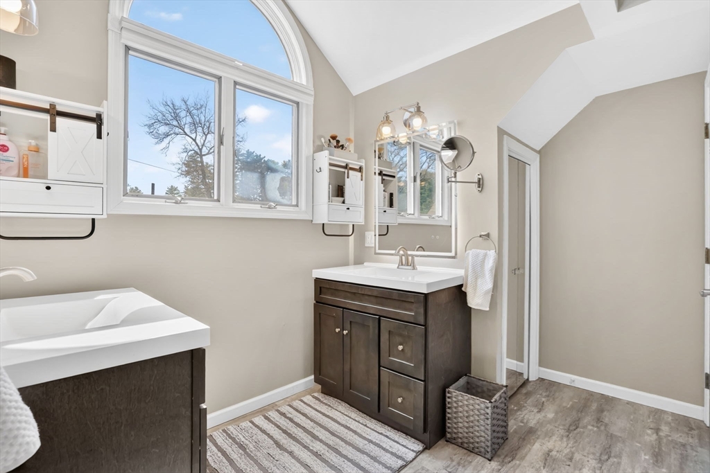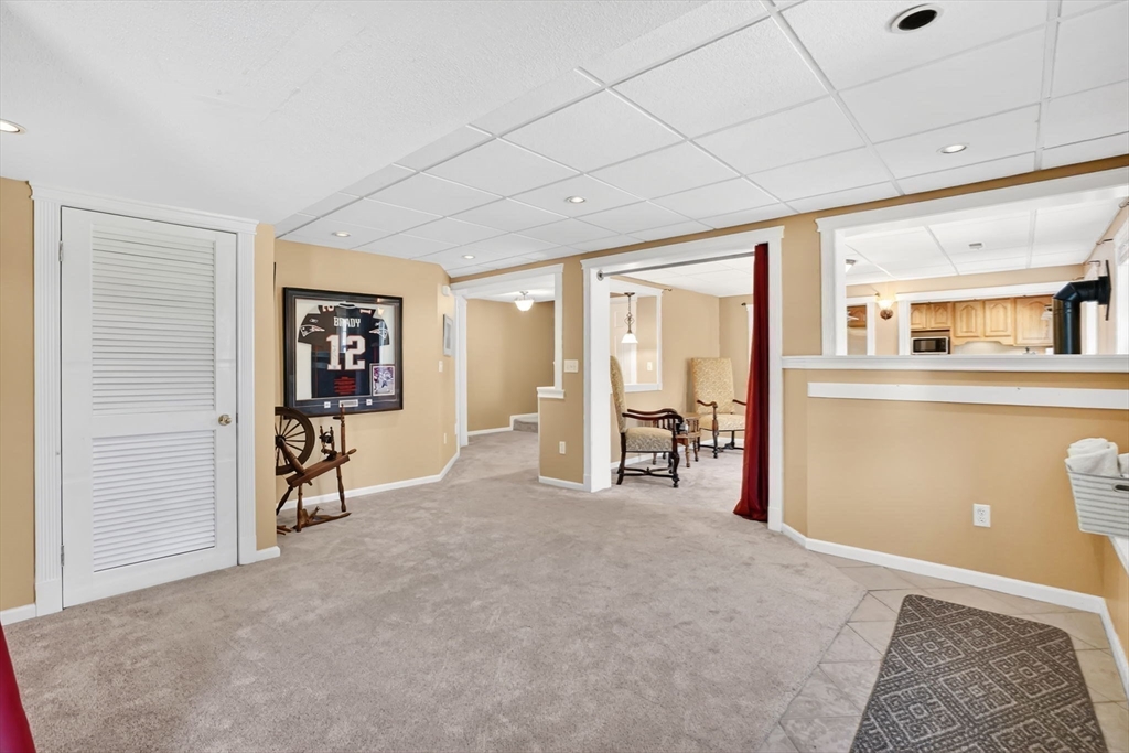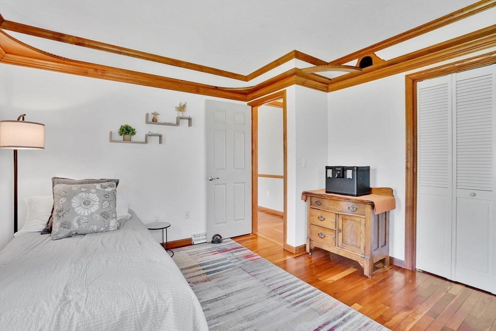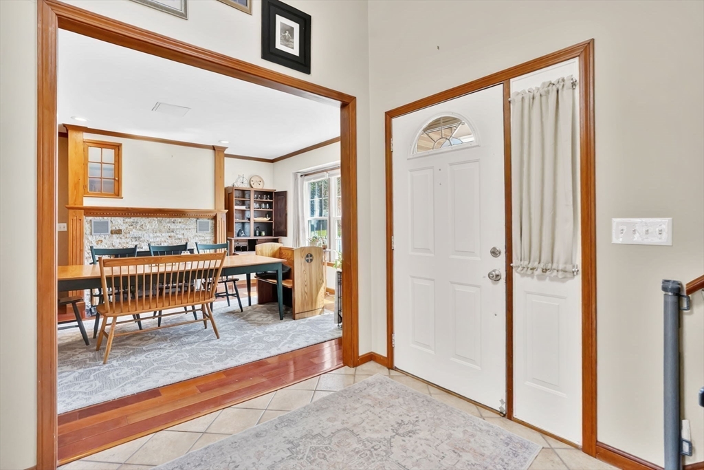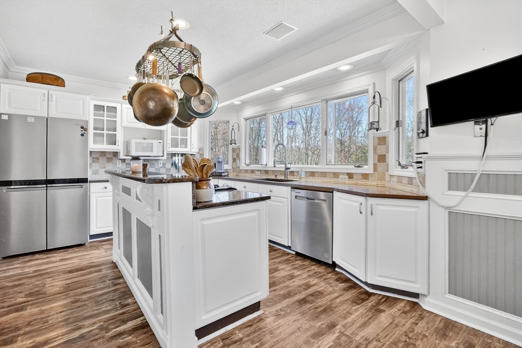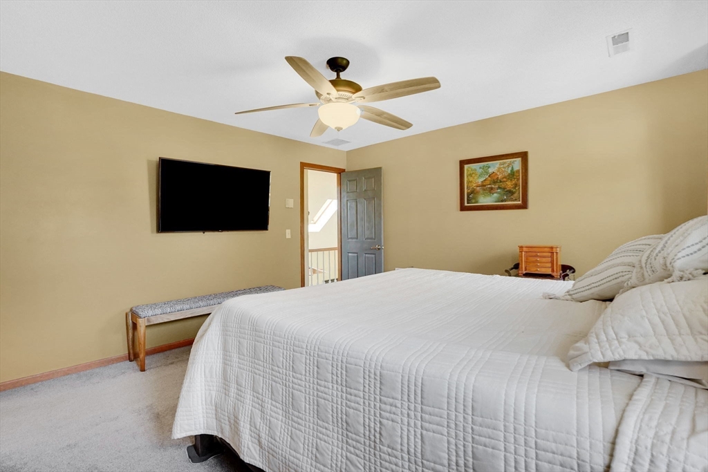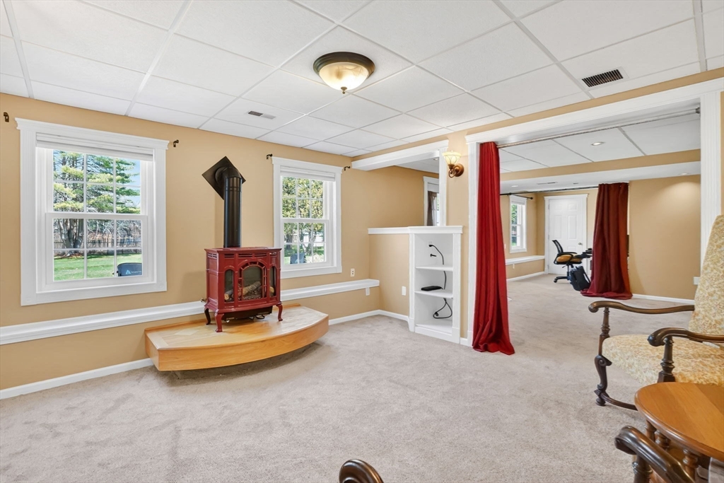Expect to be impressed...expansive custom built Contemporary Cape set on just over an acre lot with stunning views of Mill Pond!! Welcomed by soaring foyer flooding with natural light from the skylight that opens the floor to Rustic beamed Living Rm with vaulted ceiling & Dining Rm featuring cozy fireplace & wall of windows. Breathtaking views in the modern Eat-In Kitchen featuring SS Appliances with Gas Stove, RR lights, granite counters, Pantry, convenient Laundry Closet & access to cozy 3 Season Rm keeping you inspired by nature! Finishing off 1st level with Full Bath & 2 unique BRs 1 with operating Train, the other impresses with arch window. Upper level features primary suite w/ built-in side tables, walk-in closet & Full Bath with tiled Shower/ Double Sinks! Lower level showcases Great Rm centered by Gas Stove, open floor plan to Kitchenette/ Wet Bar, tons of storage, cozy office/ Guest RM & 3rd Full Bath! BONUS: Owned Solar, 2020 roof, 2nd Driveway with 16X12 additional garage!