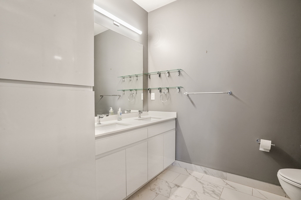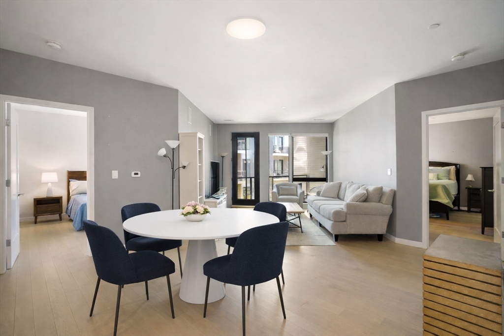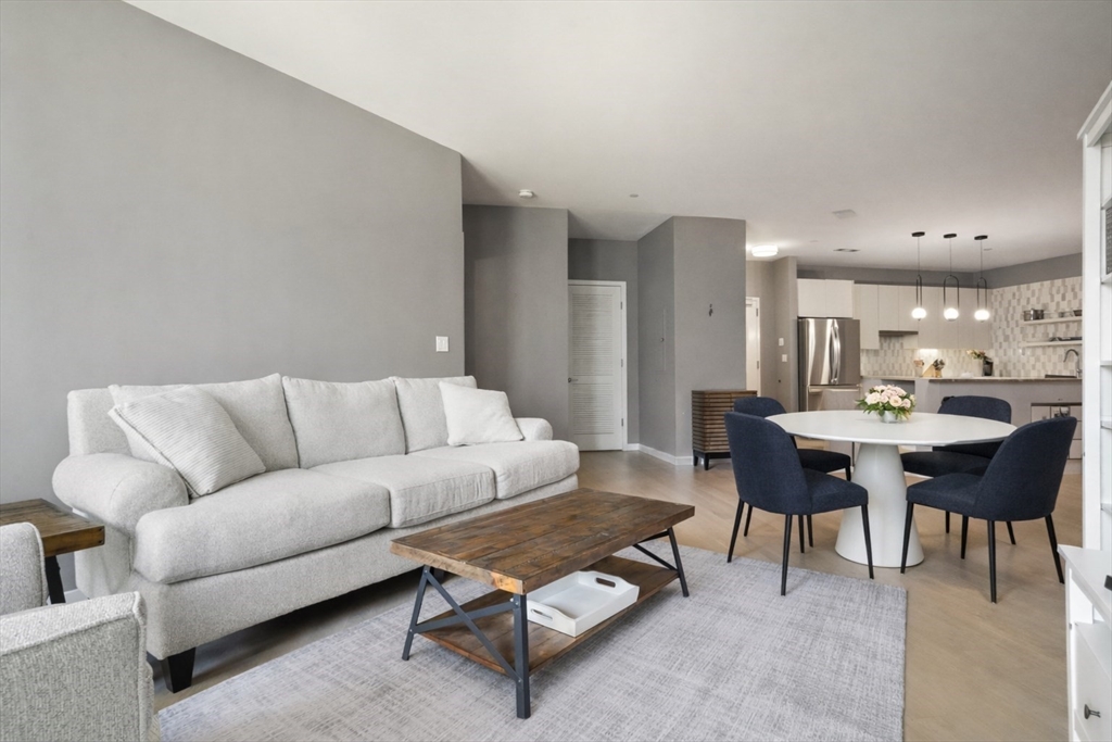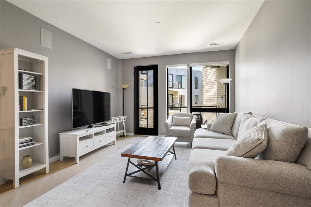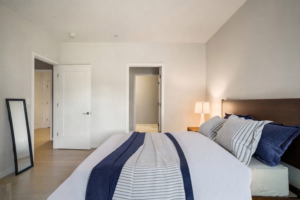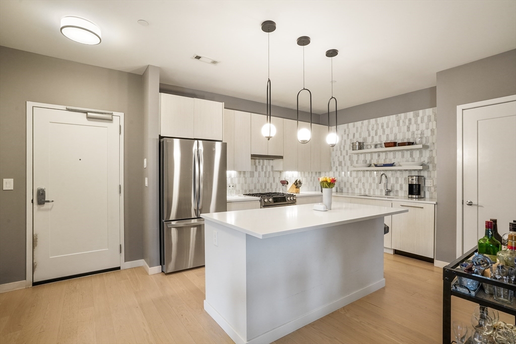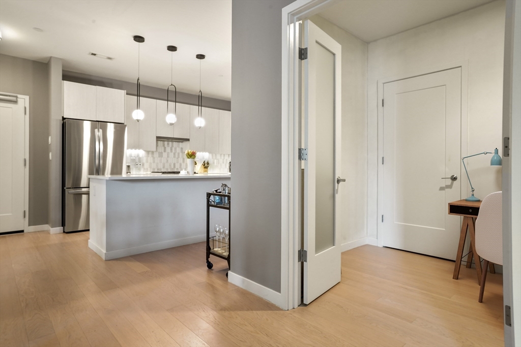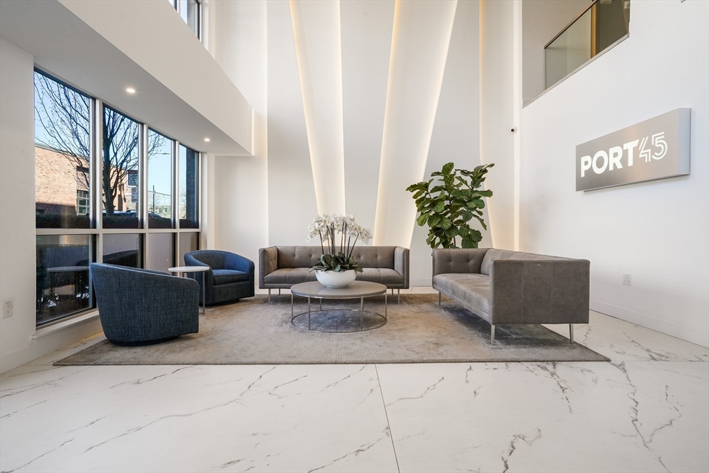 Built in 2018, this move in ready unit at the highly desired Port 45 building! This spacious and modern unit features 2 ensuite bedrooms both with walk in closets, an office/den, private outdoor space, and garage parking! The open-concept layout features a sleek kitchen with Bosch stainless steel appliances, and quartz countertops, flowing seamlessly into the living and dining area with direct access to a private terrace overlooking the courtyard. Additional features include high ceilings, floor-to-ceiling windows, wide-plank hardwood floors, and recessed lighting throughout. This luxury building also features a concierge, fitness center, resident lounge, roof deck with grilling area, pet spa, and bike storage.Conveniently located near the South End and Seaport, it offers easy access to the Red Line at Broadway, as well as nearby dining, shopping, and highway access to 93, 95, and 90. First Open House, Sunday, April 19th from 1-3pm.
