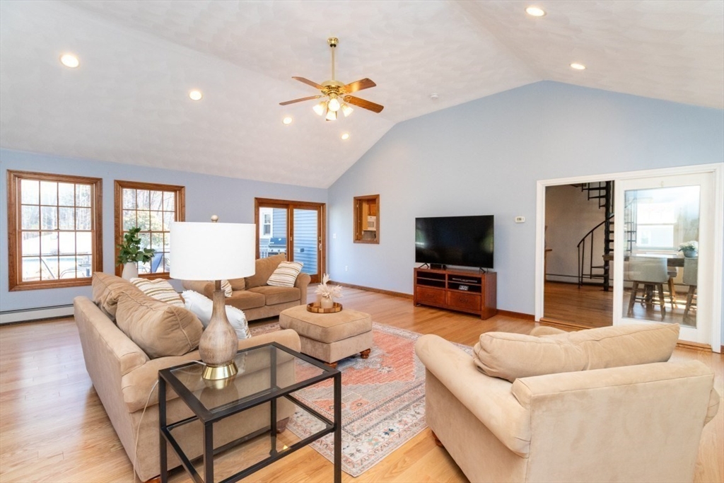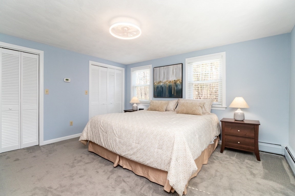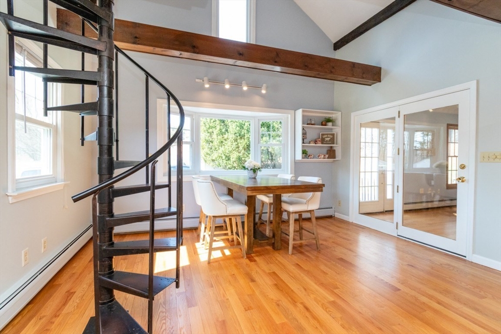 Beautiful transitional Greek Revival/Italianate home on a level 0.57 acre lot in Burlington. Fully updated, this move-in ready home offers an oversized family room with vaulted ceilings, recessed lighting, sliders to a large 23x12 deck with direct access to the backyard. The spacious eat in kitchen features a breakfast bar, hardwood flooring and spiral staircase to the loft above that is a perfect space for office or to do some yoga. A flexible layout that includes a formal dining room with access to the deck, main level primary bedroom, two additional bedrooms upstairs and 2 full baths. A walk up attic provides lots of storage space. Outside, professionally landscaped grounds surround a heated gunite pool, low maintenance composite deck and a fully fenced pool area—perfect for summer entertaining. The property has ample off street parking for 12+ vehicles. Minutes from Wildwood Park, shopping, fine dining, Burlington Mall, Lahey Hospital, Third Ave, and major highways.