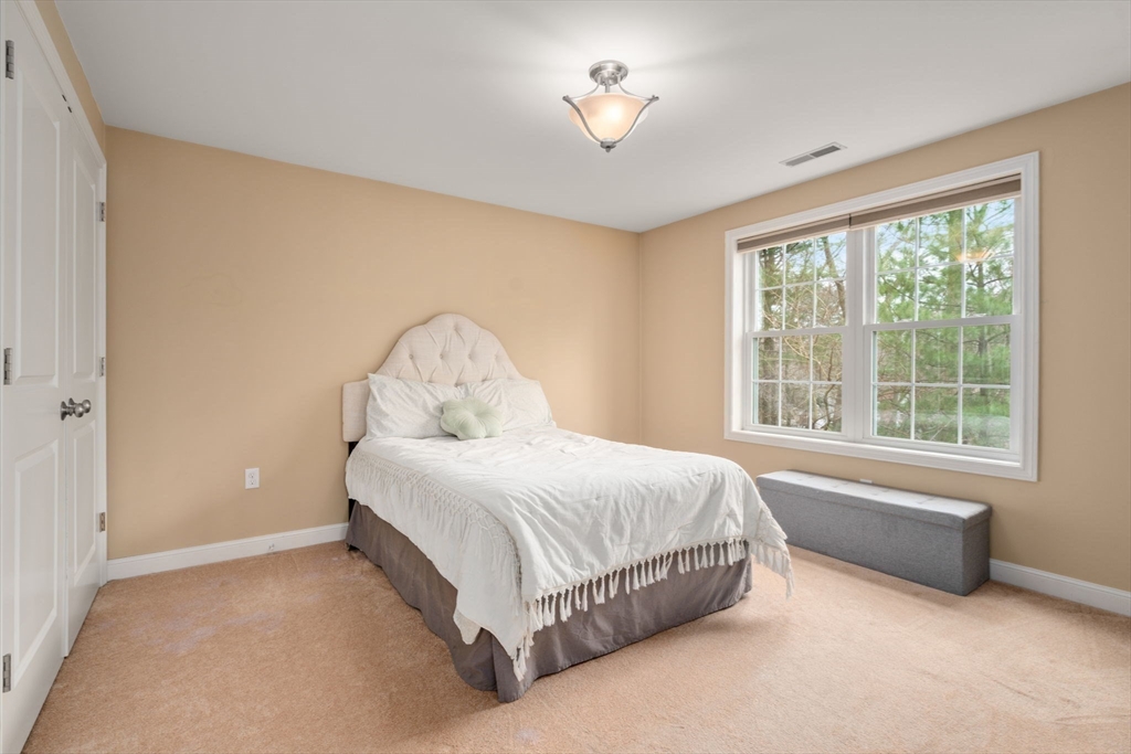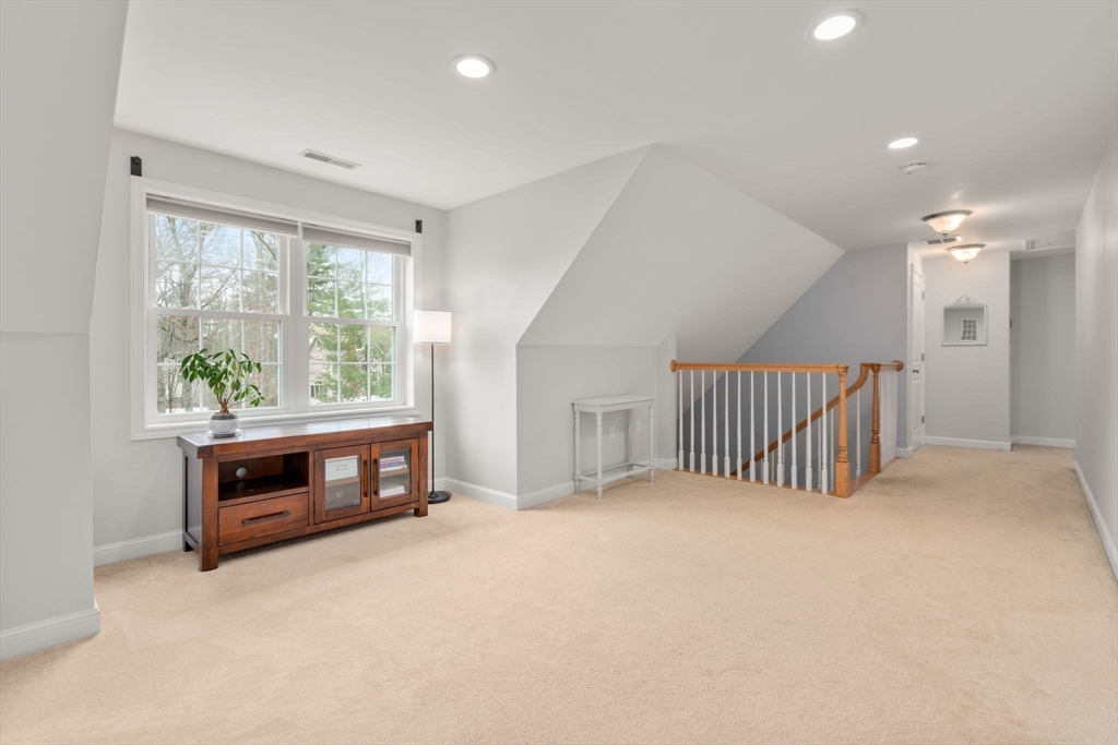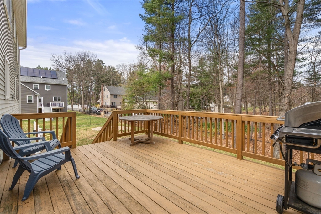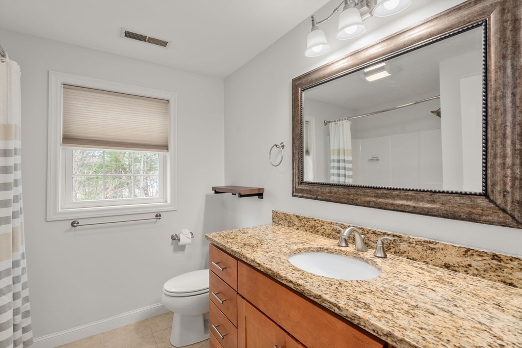 Welcome to this turn key home tucked on a quaint dead end street. This beautiful spacious home is designed for everyone to spread out while balancing privacy, shared spaces, and functionality. The open floorplan brings the kitchen, dining & living areas together perfectly for entertaining. The oversized kitchen is equipped w/maple cabinetry, granite counters, ss appliances, large center island perfect for gathering. The first floor primary suite with a generous walk-in closet and upgraded bathroom with separate whirlpool tub and newly tiled step-in shower. The split hardwood staircase leads to the 2nd floor with a spacious loft area, 3 bedrooms & full bath. The lower level offers a bonus room and 3rd full tiled bath. The slider from the kitchen leads you onto the deck leading to a fenced in yard with firepit area and a Reed Ferry Shed. Other upgrades include 2 car garage, irrigation system, central a/c, custom Levlor shades, and whole house water filtration. A perfect forever home!