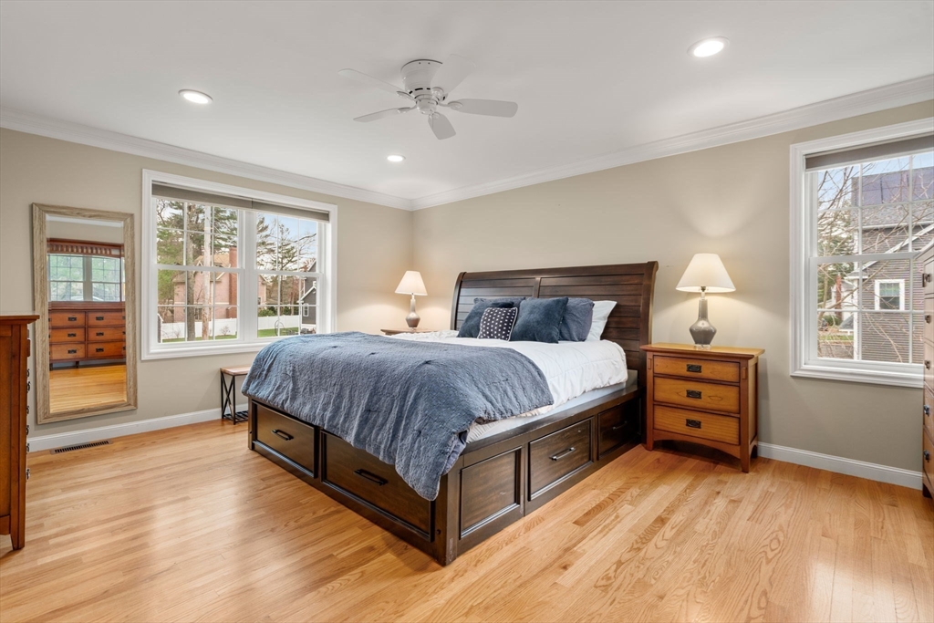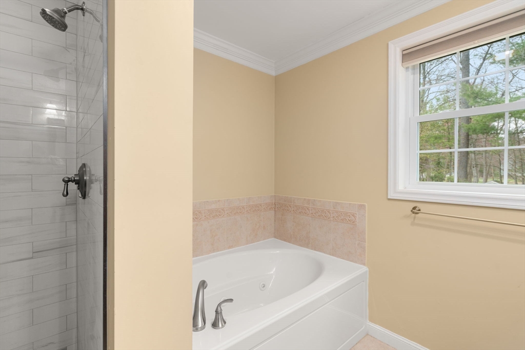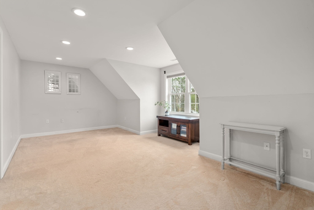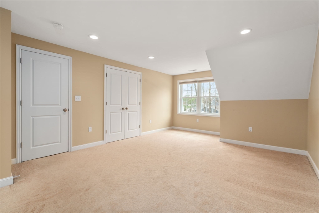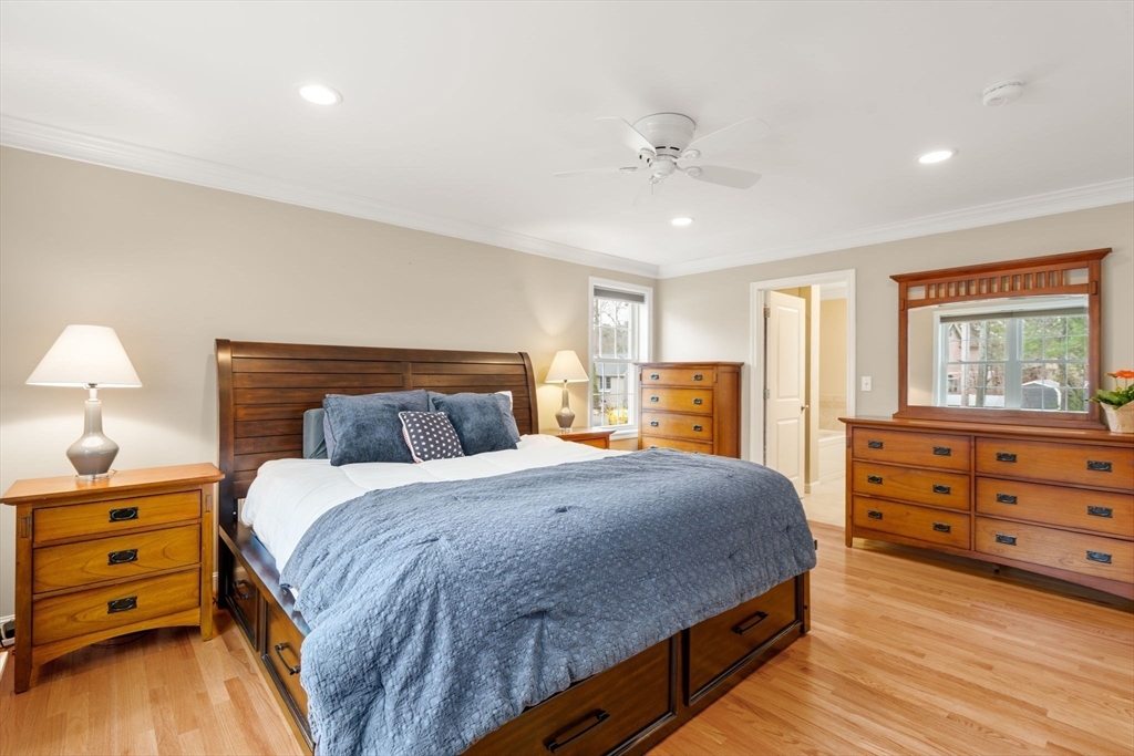 Welcome to this turn key home tucked on a quaint dead end street. This beautiful spacious home is designed for everyone to spread out while balancing privacy, shared spaces, and functionality. The open floorplan brings the kitchen, dining & living areas together perfectly for entertaining. The oversized kitchen is equipped w/maple cabinetry, granite counters, ss appliances, large center island perfect for gathering. The first floor primary suite with a generous walk-in closet and upgraded bathroom with separate whirlpool tub and newly tiled step-in shower. The split hardwood staircase leads to the 2nd floor with a spacious loft area, 3 bedrooms & full bath. The lower level offers a bonus room and 3rd full tiled bath. The slider from the kitchen leads you onto the deck leading to a fenced in yard with firepit area and a Reed Ferry Shed. Other upgrades include 2 car garage, irrigation system, central a/c, custom Levlor shades, and whole house water filtration. A perfect forever home!