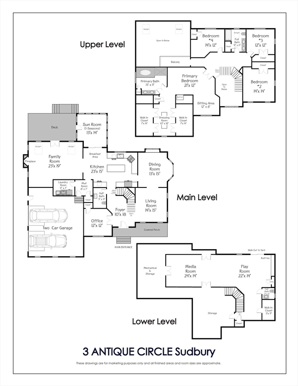 If you have been searching for a home in a convenient & walkable location, this is the property for you! Set in the heart of Sudbury, this bright and airy colonial lies a short distance to the elementary school, library, shops, dining, houses of worship & the new Bruce Freeman & MA Central Rail Trails. Bike or walk until your hearts content. Highlights include a beautifully renovated kitchen, 3 season porch, oversized deck and incredible yard. Gather friends & family in the grand family room or find true respite in the primary suite complete with separate sitting area, and a dressing room with exceptional closet space, and custom shelving for all of your Jimmy Choos! The finished walkout lower level is expansive and includes a 1/2 bath, as well as a large workroom. Set on 3+ acres, the yard is private and perfect for game play. Stroll tree-lined streets with fieldstone walls to the historic center or enjoy a front row seat on your farmers porch for the 4th of July parade. Exceptional!