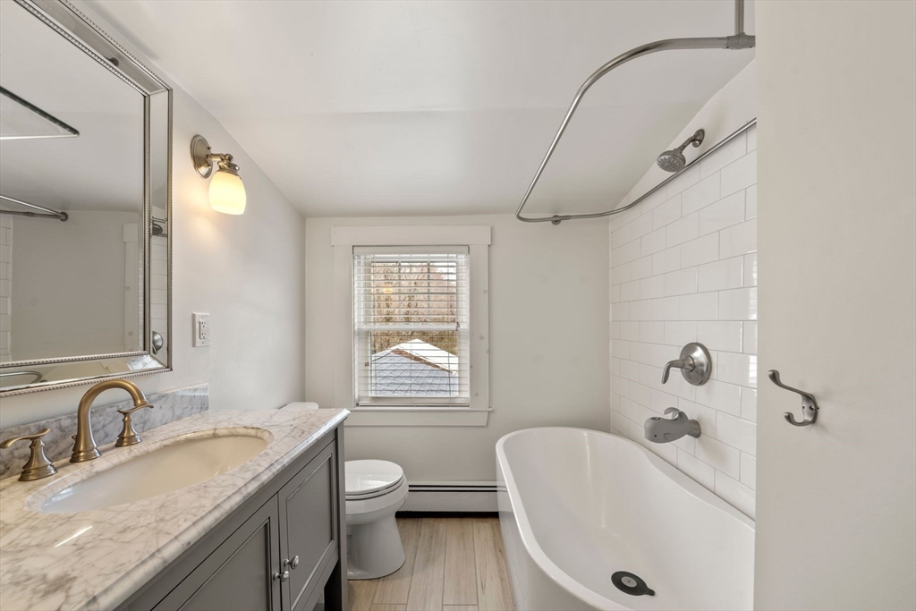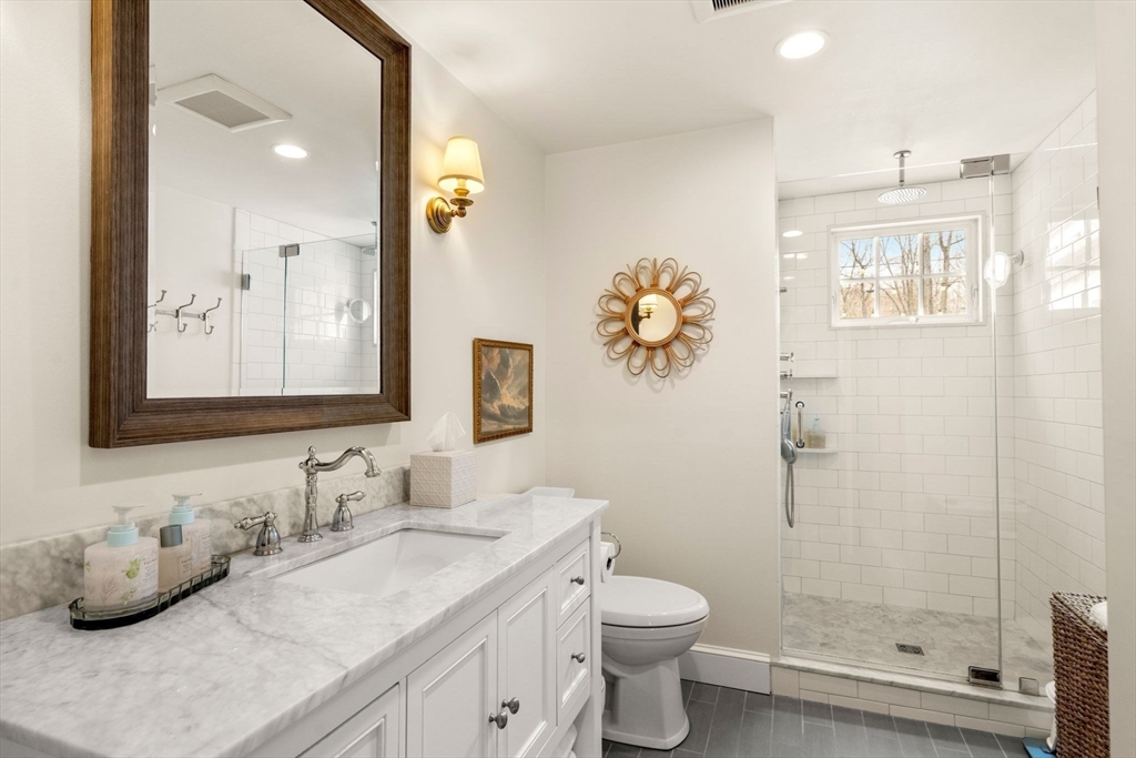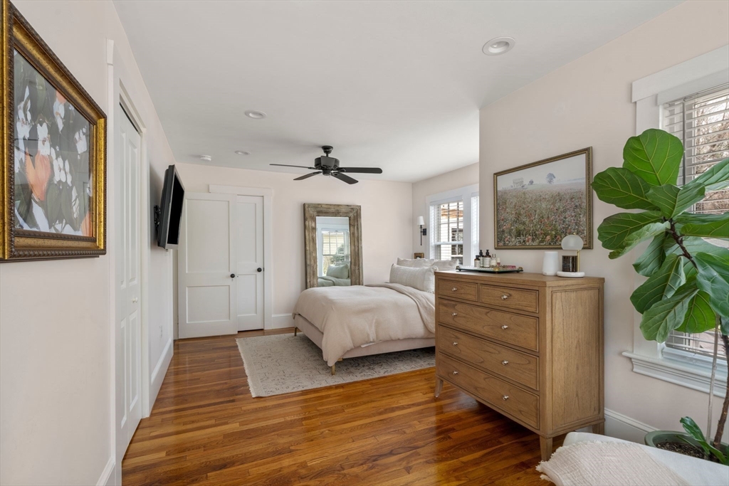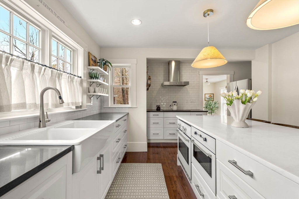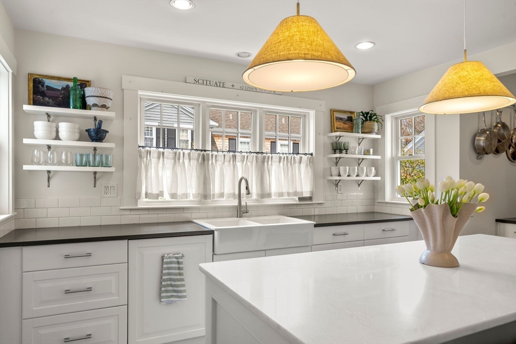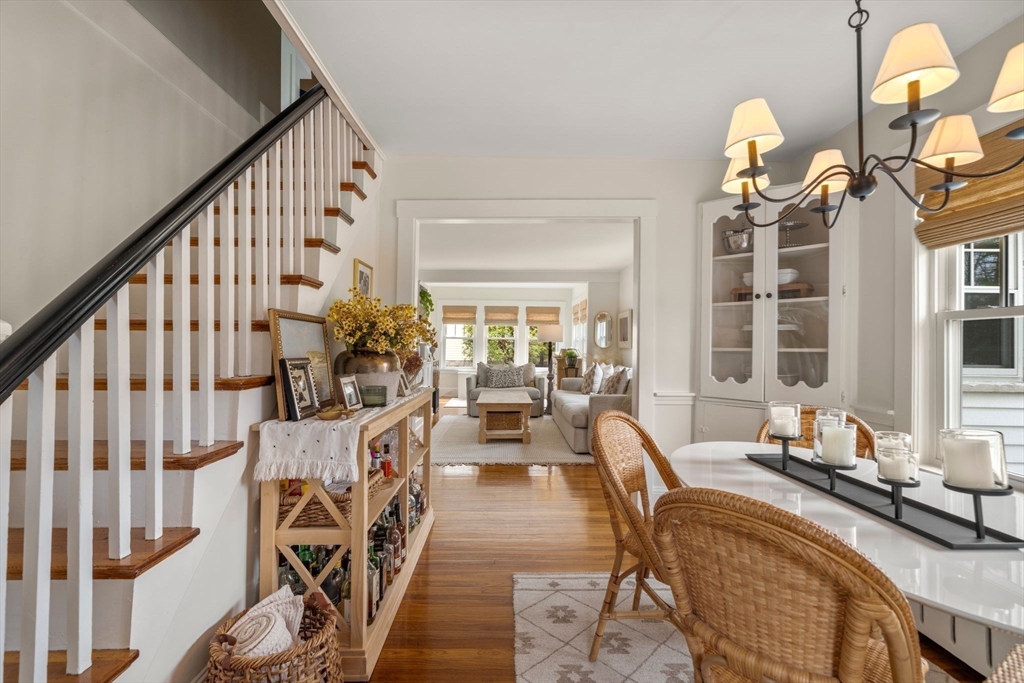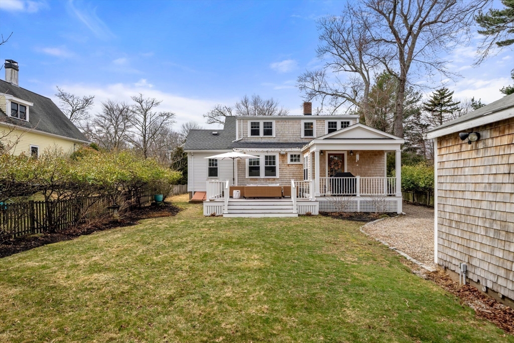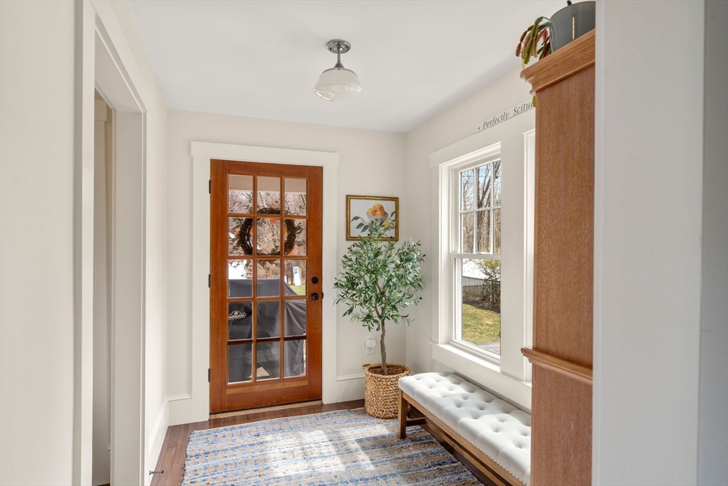 Quintessential New England Cape, beautifully redesigned for today’s modern lifestyle. Ideally located in the heart of town, just a short stroll to schools, Rec. Dept, library, ball fields, and town common. Enter through the newly finished covered porch into a spacious mudroom addition with custom laundry and built-in storage. The stunning designer kitchen showcases rich hardwood floors, an oversized island with polished marble countertops, crisp white cabinetry, and sleek stainless appliances. A sun-filled dining room blends original woodwork and built-ins with stylish updated lighting. The expanded living room offers generous space for entertaining, plus room for a play area or cozy reading nook. Large first-floor bedroom and full bath with glass-enclosed tiled shower provide flexible living options. Upstairs features three additional bedrooms and a full bath with soaking tub. Full basement, two-car garage, and expanded yard with deck perfect for summer cookouts after the beach.