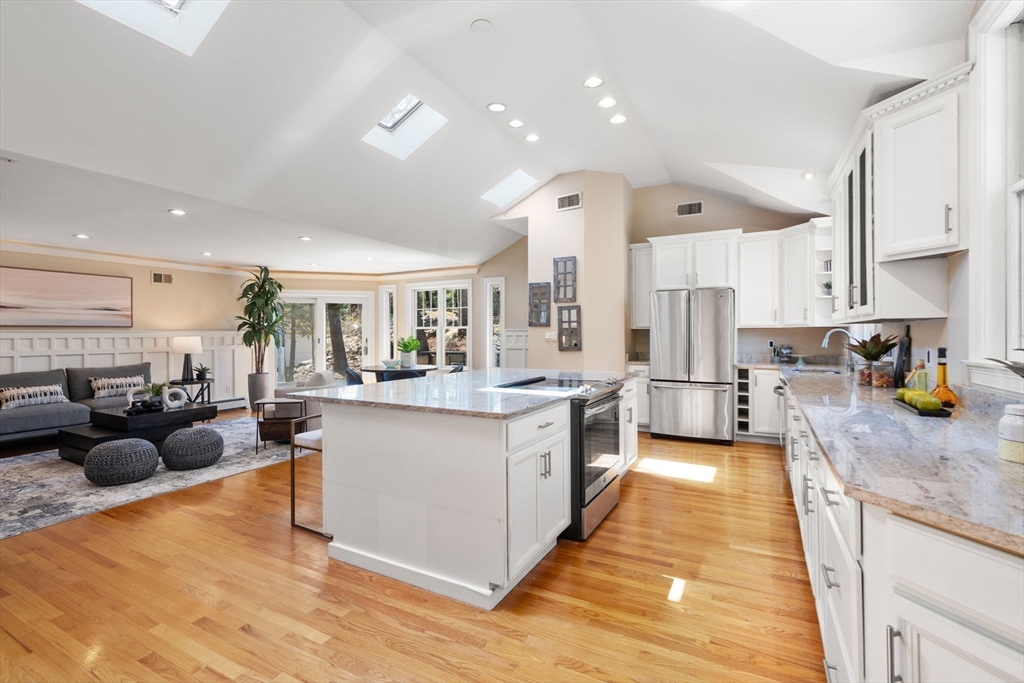 Set in one of Waban’s most sought-after neighborhoods on Gammons Road, this lovely sun drenched brick Colonial offers the perfect blend of timeless elegance, classic architectural details & modern living. With more than 5600 sqft, this homes features 6 generously sized bedrooms & 4.5 bathrooms. The heart of the home is an expansive kitchen with soaring vaulted ceilings & skylights that flood the space with natural light—ideal for both everyday living & entertaining. A spacious family room, living room, dining room, play area, mudroom & half bath complete this level. A standout feature is the private auxiliary apartment, offering incredible flexibility for extended family, guests, or potential rental income. The oversized 2 car attached garage complete this home. This is a truly exceptional property with unique opportunity to expand. Set on a beautifully landscaped lot in a premier location close to top-rated schools, parks, public transportation & all that Newton has to offer.