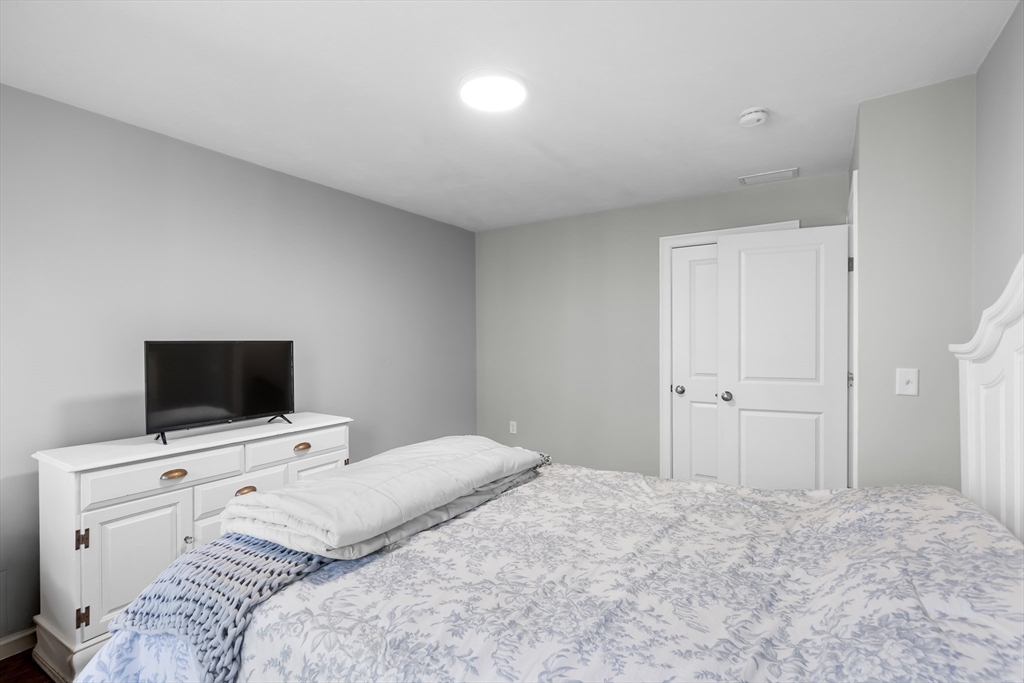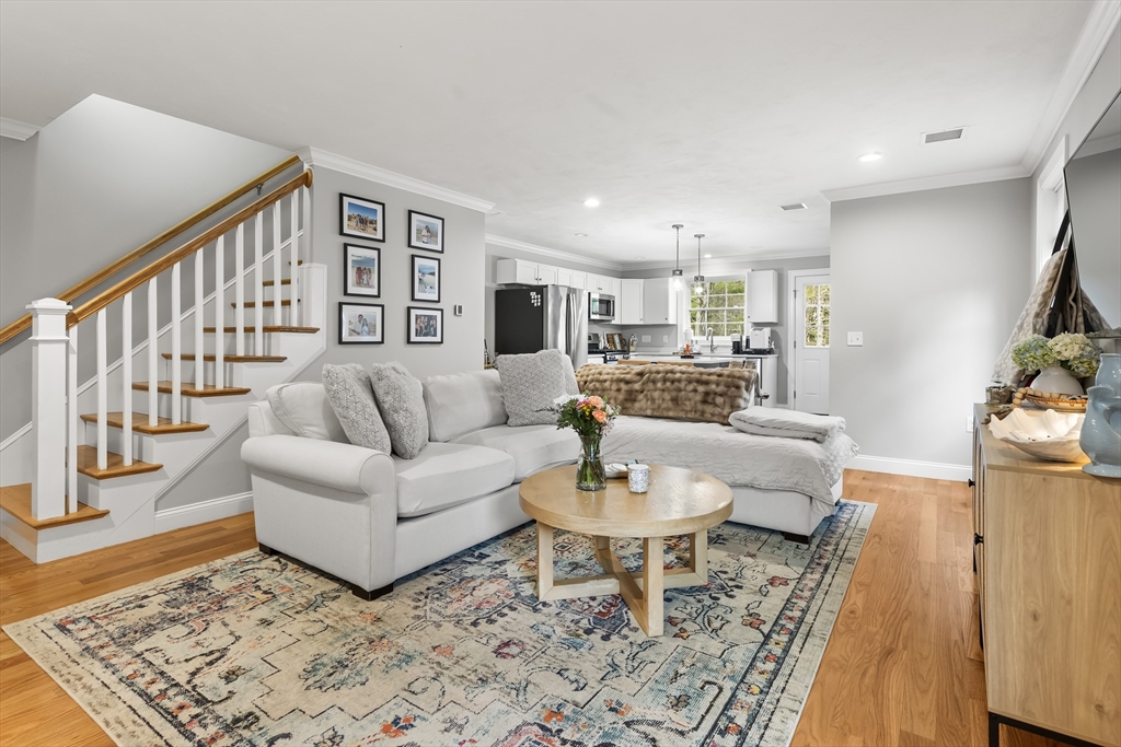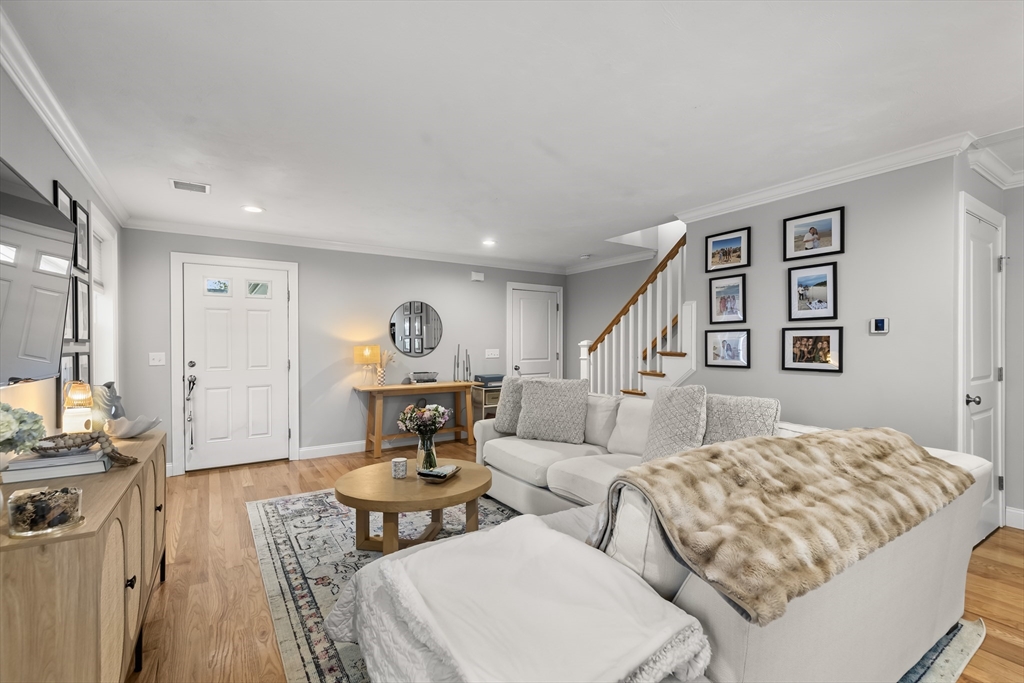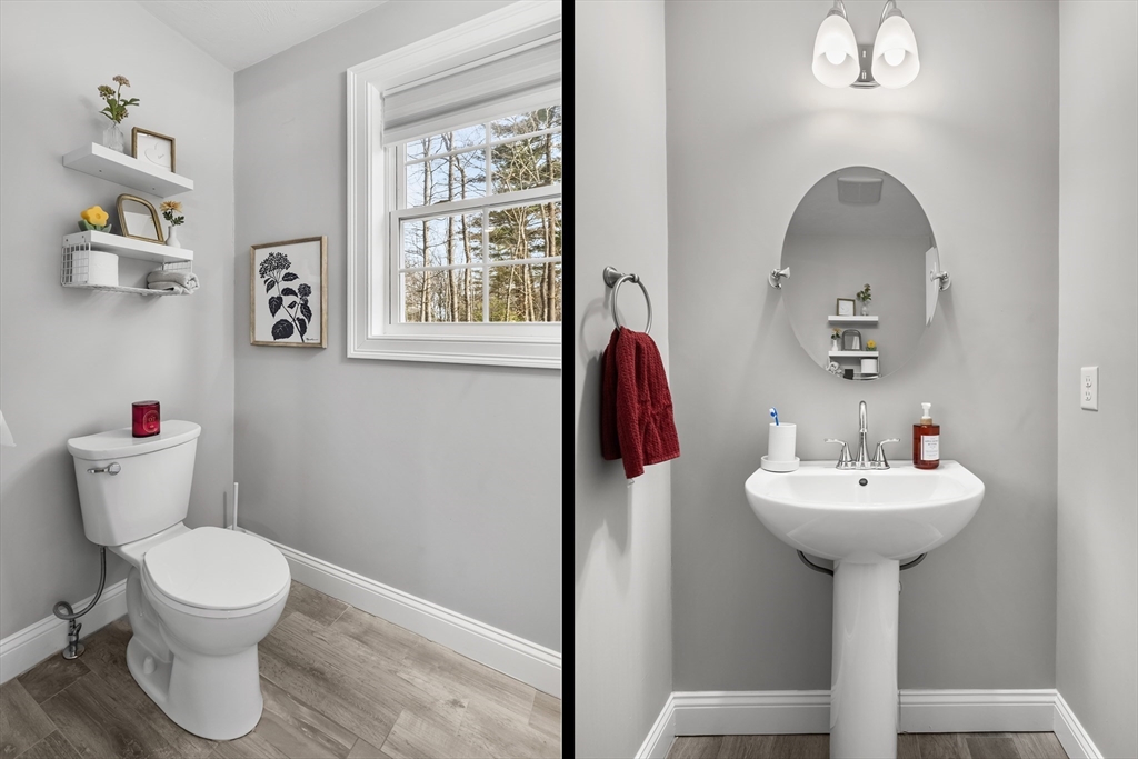LIKE NEW 2023 townhome on a quiet Holbrook cul-de-sac, close to highways for easy commuting. Open-concept living with modern kitchen, quartz island, and stainless appliances. Wood floors throughout the main level, with a convenient half bathroom for guests. Upstairs there are two spacious bedrooms; primary bedroom complete with two generously sized closets and great natural light. The walk-out basement offers room to grow with great ceiling height and ability to create additional living/entertaining space and make this townhome yours with instant equity. This townhome is complete with a private, wooded backyard with grassy area. The townhome features an attached one-car garage with ample storage. Quick and flexible closing possible without a home sale contingency. Move-in ready and designed for effortless, modern living!