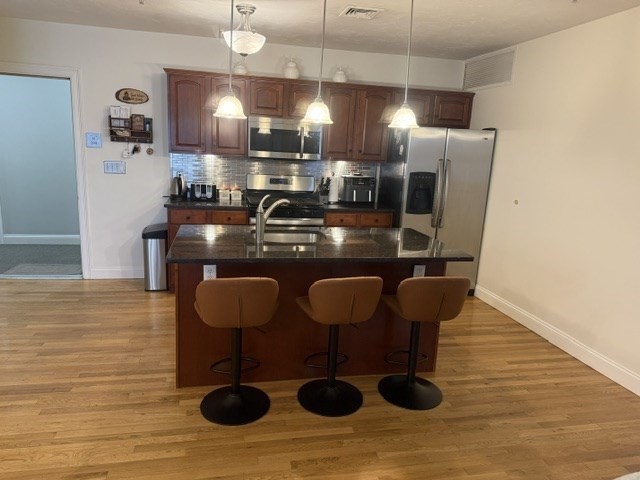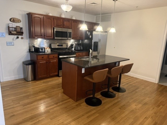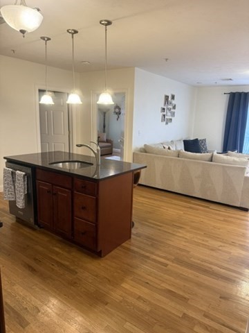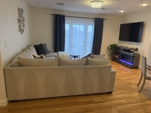 Welcome to this beautifully updated 2 Bedroom,2 Bath condo in a truly prime location. Perfect for today's lifestyle and ideal for commuters! Just a short walk to the Mansfield MBTA Commuter Rail, This home offers unbeatable convenience while providing a bright, stylish, and comfortable living space.Step inside to find gleaming hardwood floors throughout and an abundance of natural light that fills every room. The entire unit has been freshly painted and enhanced with all new lighting fixtures, creating a clean, modern feel. The updated kitchen features new appliances, including a new microwave and gas stove, while the elegant dining area is highlighted by crystal chandeliers. Spacious primary bedroom with walk in closet and private en-suite bathroom, complete with a tiled stand up shower. Laundry in unit. Additional features include two dedicated parking spaces and extra storage in the basement. With move in condition, this condo is rare opportunity you don't want to miss