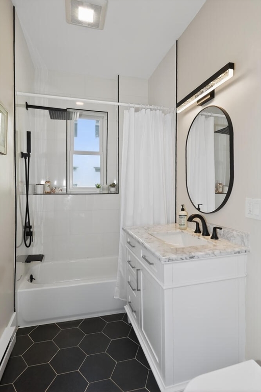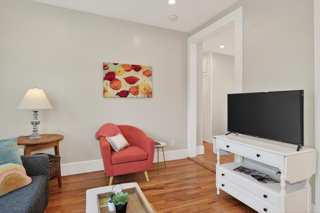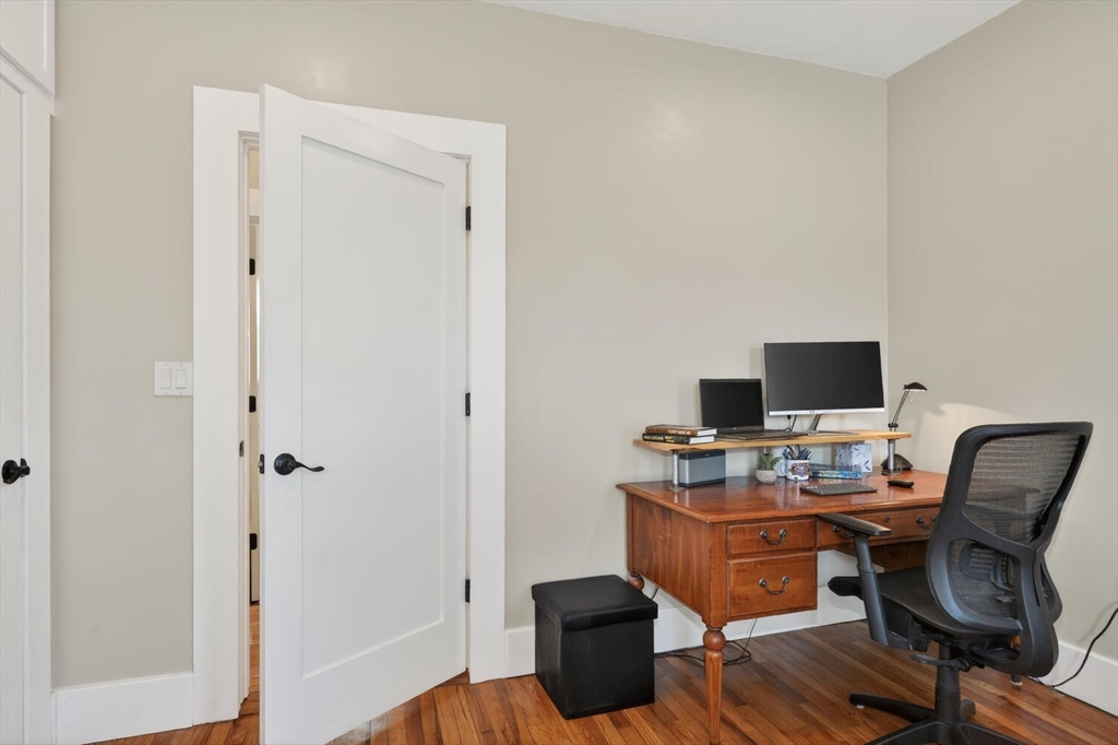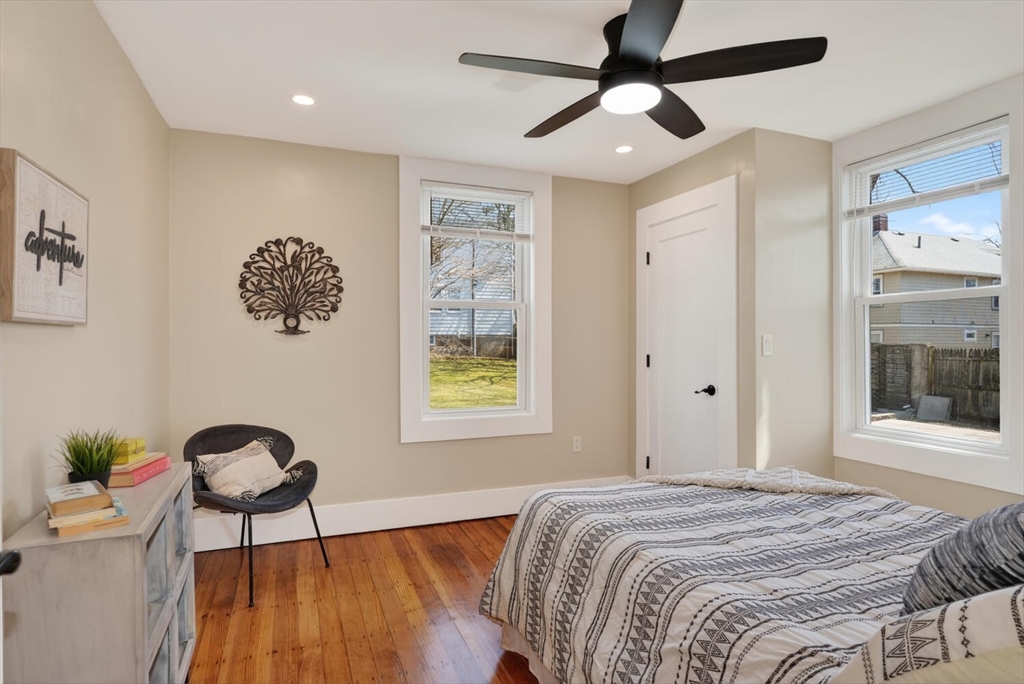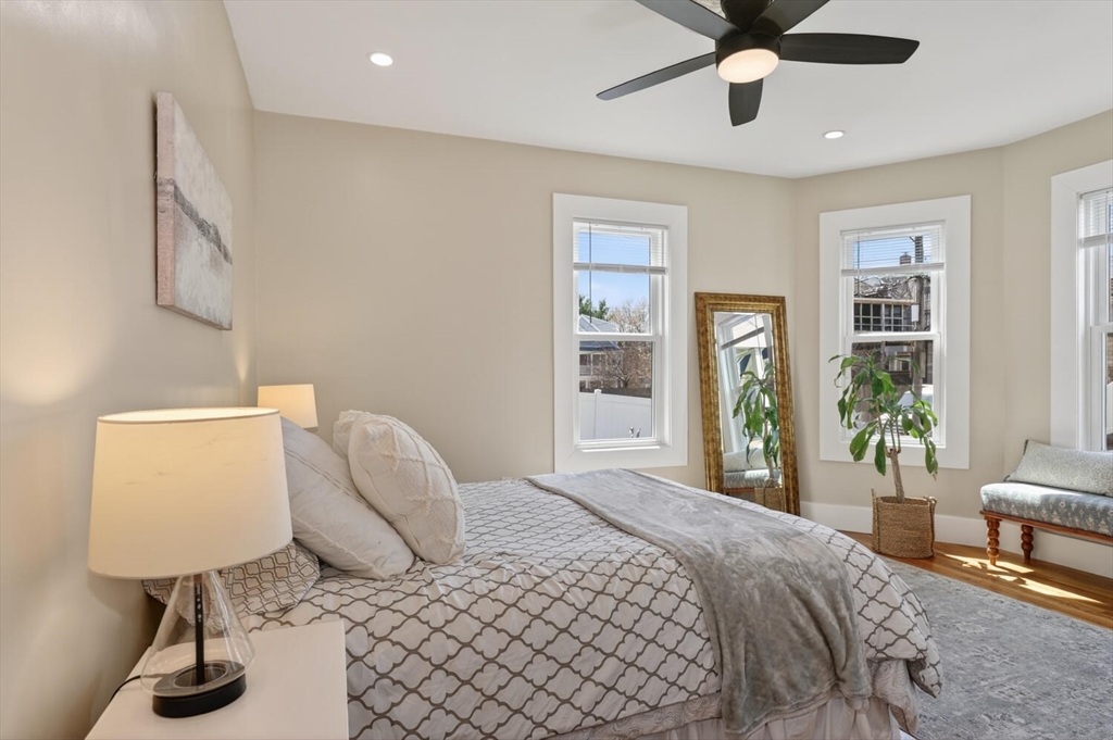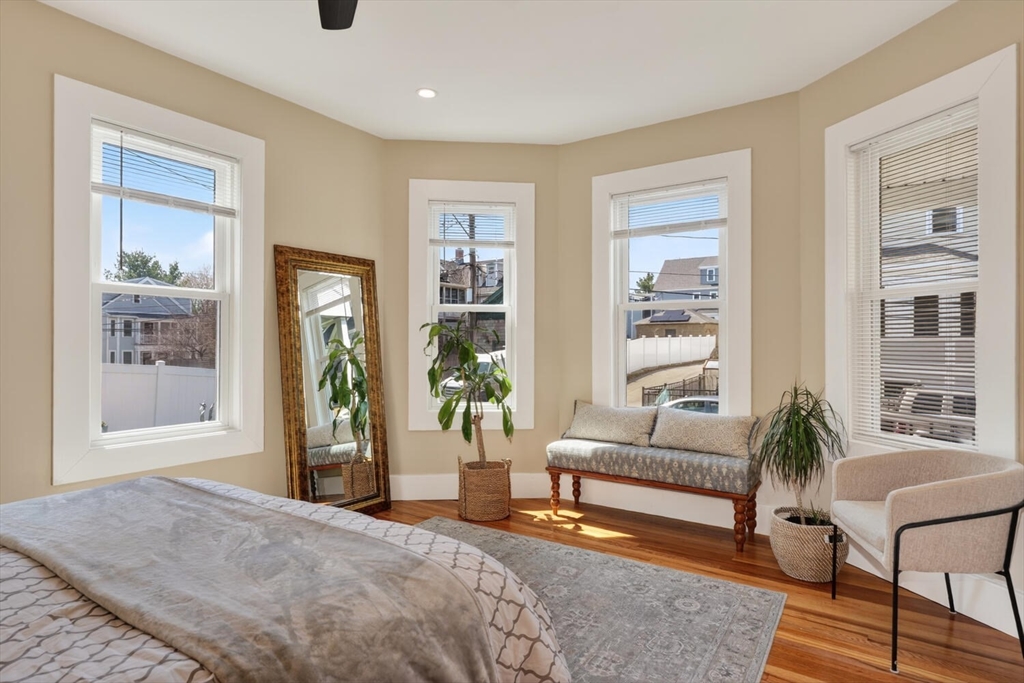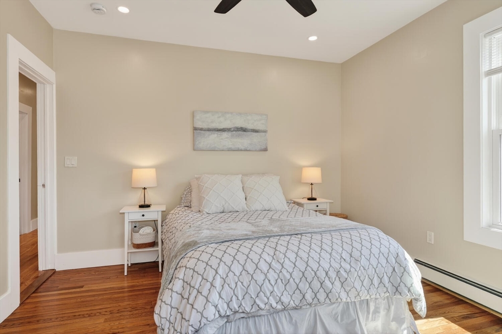 An Urban Oasis in Woodbourne. Discover a rare find: a stunning 3-bed, 2-bath condo tucked on a quiet dead-end street with a sprawling 3,000+ sq ft shared backyard and patio. Step inside to a sun-splashed home fully transformed from top to bottom. Soaring ceilings, gleaming hardwoods, and oversized windows create an airy, inviting feel. The showstopping open-concept kitchen features white shaker cabinetry, a large island, quartz countertops, and stainless appliances — perfect for everyday living and entertaining. The retreat-like primary suite offers a brand-new ensuite bath, while two additional bedrooms provide great space and flexibility. Enjoy peace of mind with extensive building updates including new siding, roof, windows, front porch, blown-in insulation, and high-efficiency heating. Additional perks include in-unit laundry, two deeded parking spaces, and ~200 sq. ft. of private storage. All near Forest Hills, the Arboretum, and JP/Roslindale dining. Your urban sanctuary awaits!
