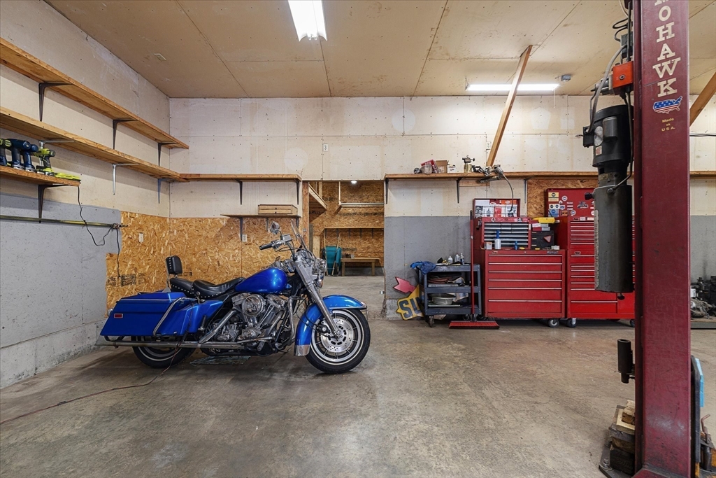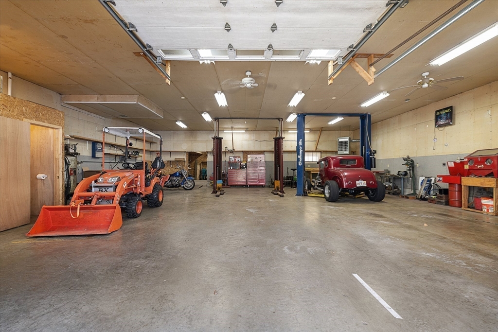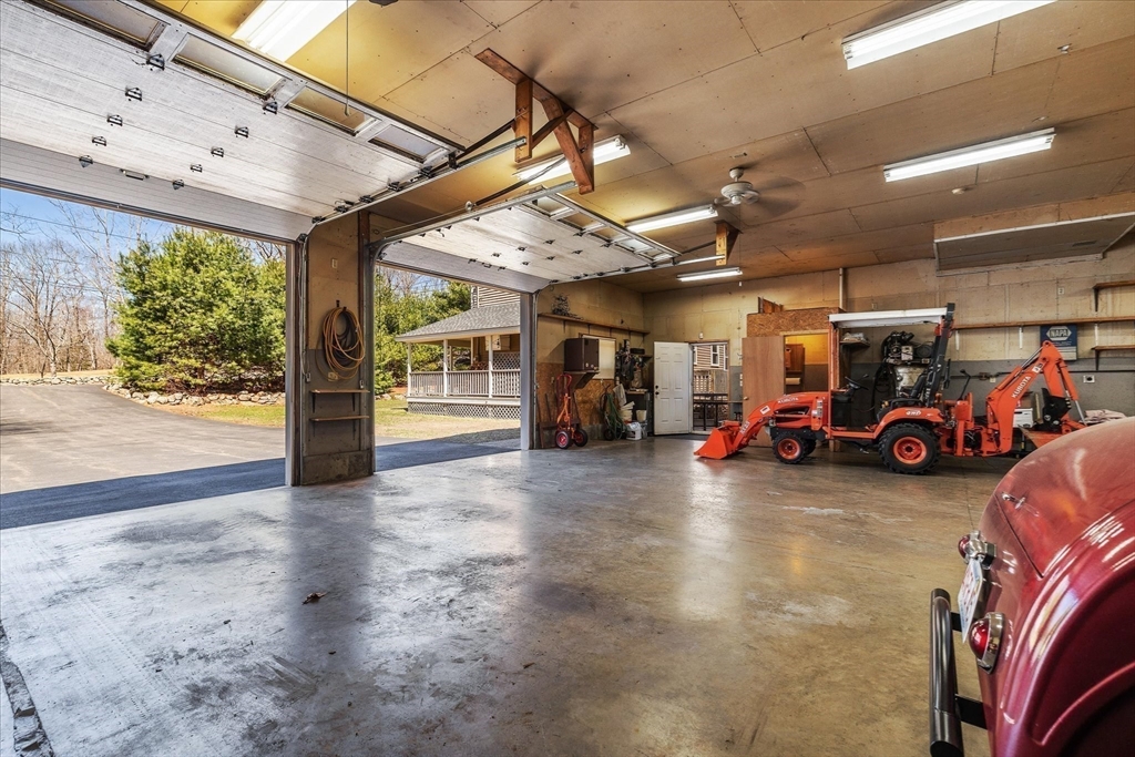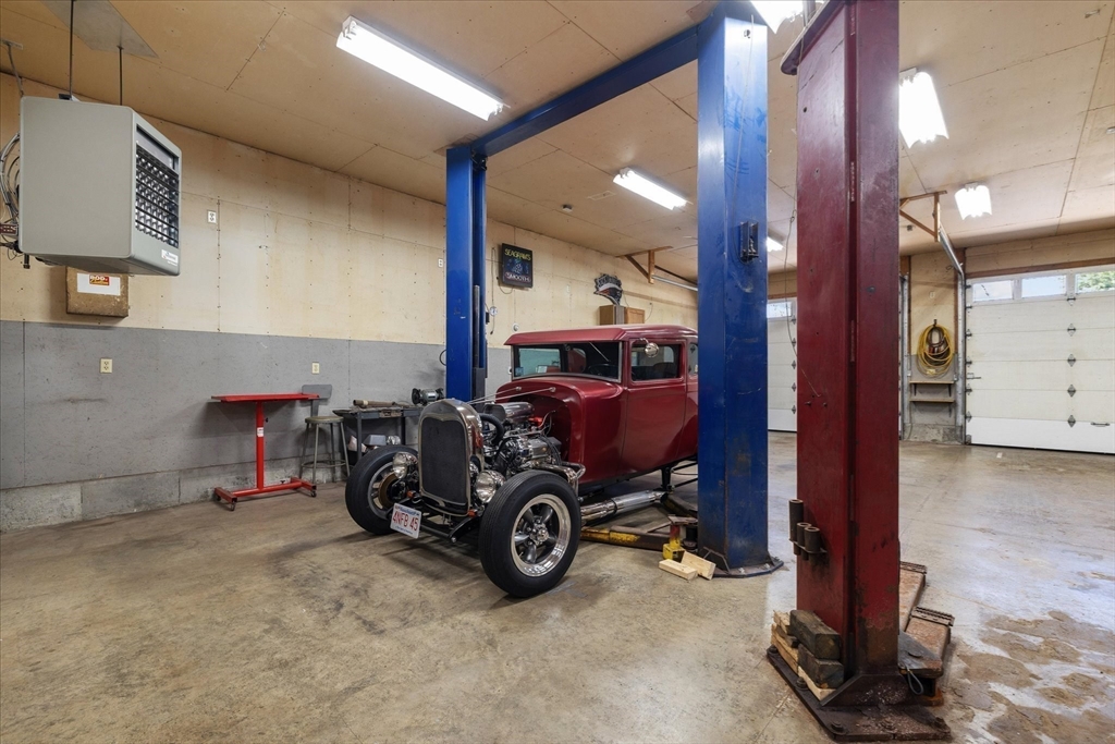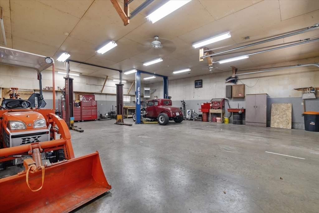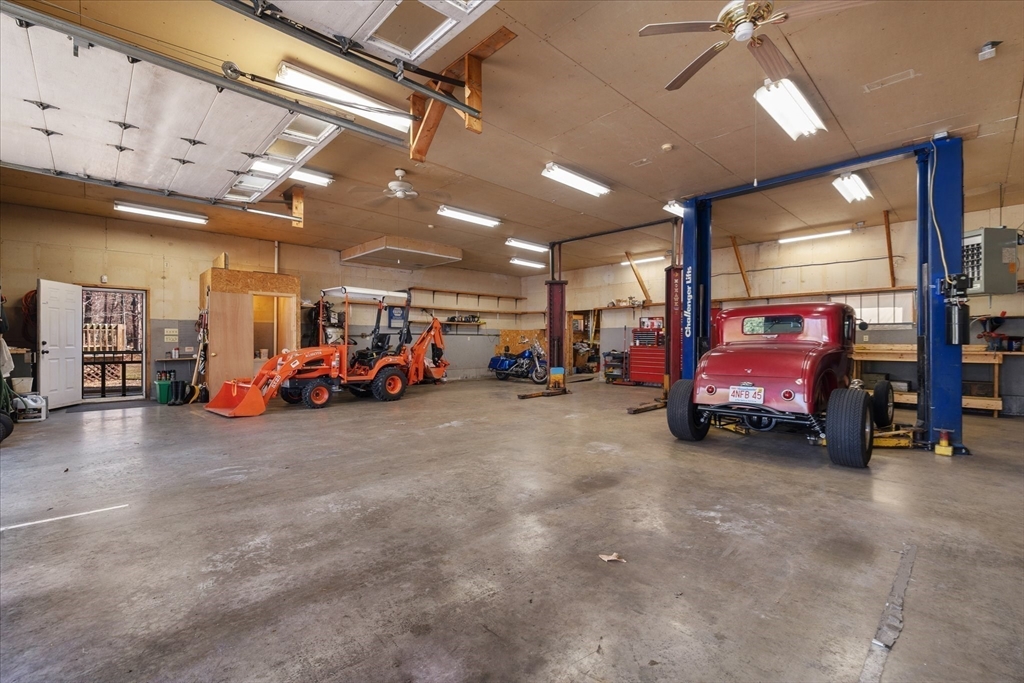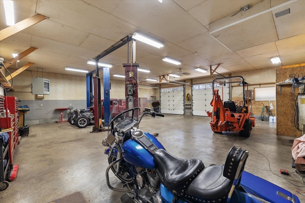 Whether you’re a car enthusiast, contractor, hobbyist or just someone who values a serious garage, this one checks the box in a big way. The heated 40x40 garage w/ an attached 19x25 workshop was built with intention—2 car lifts, 2nd-floor storage, a bathroom, & the kind of layout that actually works for real projects. It’s the kind of space you don’t outgrow. The house matches the quality & thoughtfulness with a classic New England colonial layout featuring a front-to-back living room with a fireplace, a formal dining room off the kitchen, & sliders that lead out to the back deck. The wraparound farmer’s porch ties it all together and gives the home that timeless curb appeal. Inside, the big updates are already done—kitchen, baths, flooring, heating system, hot water tank, roof, windows, siding, and decking—so it’s truly move-in ready. Outside, the fenced yard, dog kennel, generator, oversized lot, & quiet dead-end road offer privacy, function, & space to actually enjoy the property
