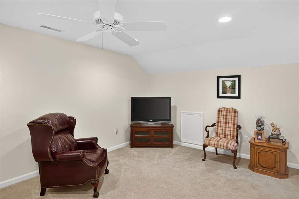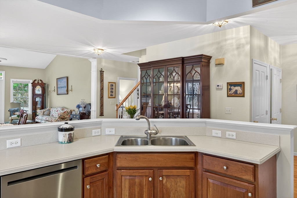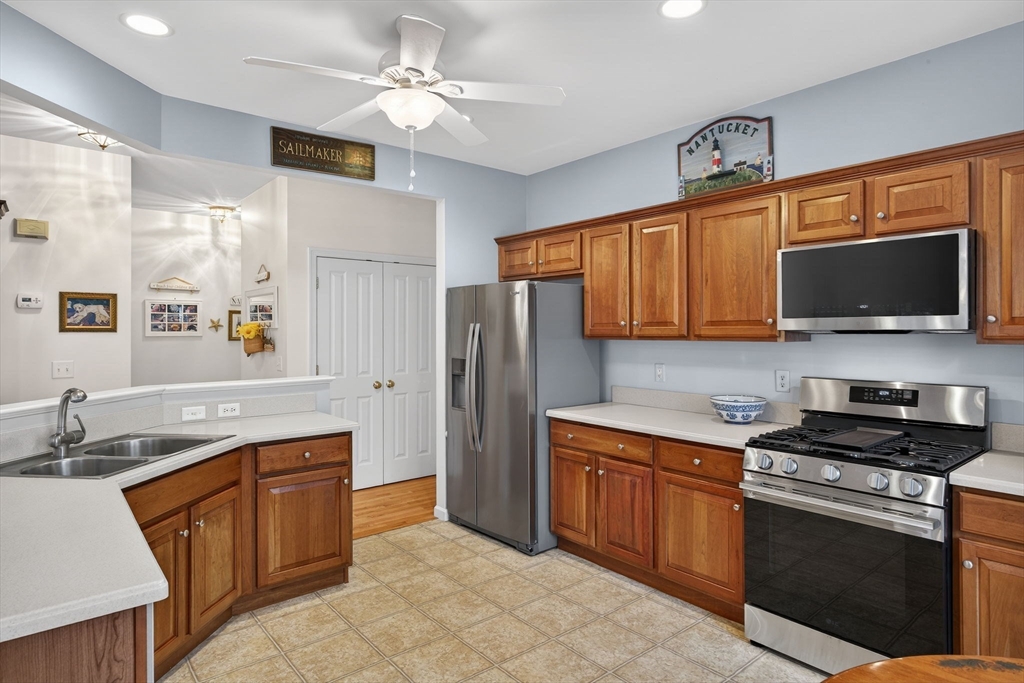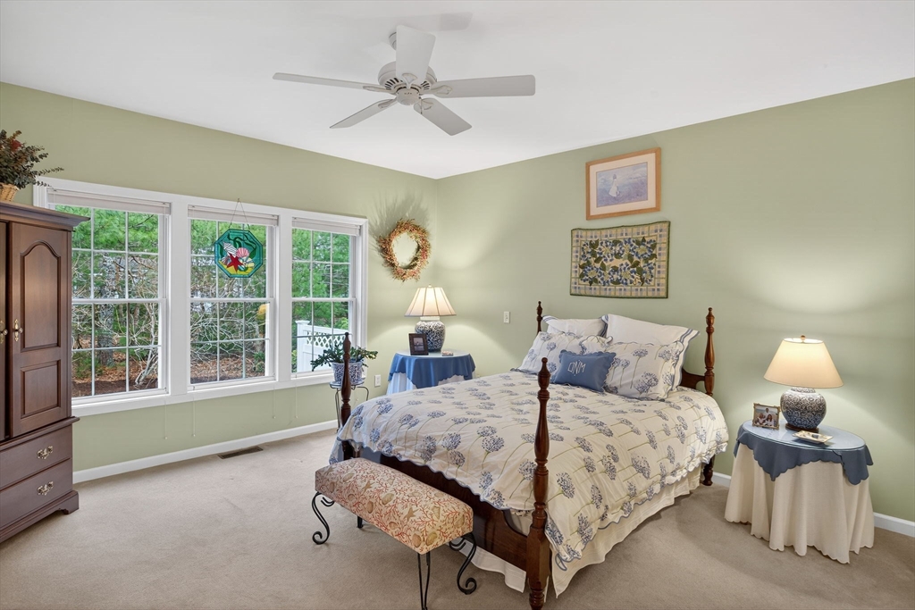 Picture Perfect! An opportunity to own the highly sought-after Brookshire floor plan in the Great Island 55+ community in The Pinehills. This spacious and thoughtfully designed home features 3 bedrooms and 3 full bathrooms, each arranged to provide a sense of personal retreat and privacy. The open-concept layout allows the kitchen to flow seamlessly into the dining and living areas, all while offering a scenic wooded view. Enjoy easy living with a deck overlooking a lush green lawn, perfect for entertaining or quiet mornings with coffee. The professionally landscaped grounds add to its charm and curb appeal. Newer appliances & a guest bedroom/den with an additional full bath on the first floor. Expansive loft and 3rd bedroom with a full bath on 2nd floor. First floor laundry room. Enjoy access to two exclusive clubhouses; The Overlook Clubhouse: indoor swimming pool, pickleball and tennis courts, bocce and a wide variety of activities and classes & The Stonebridge Club. Come & enjoy!