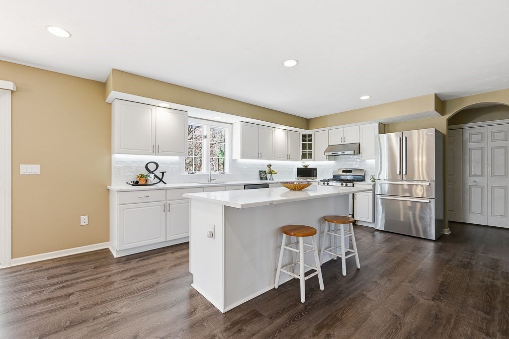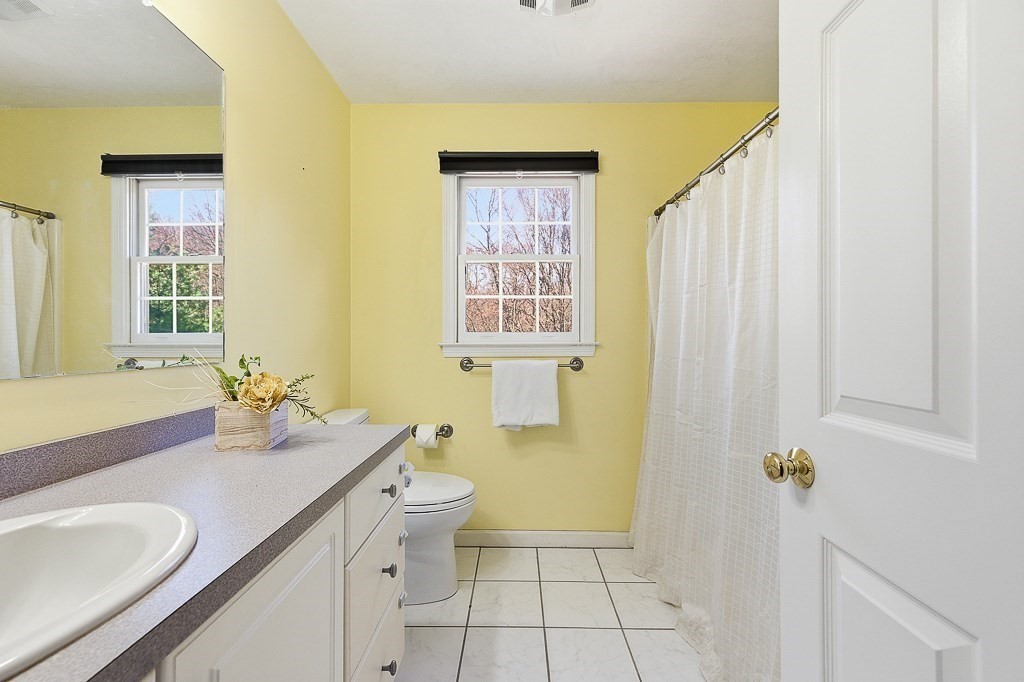 Welcome to this well maintained colonial home in Shrewsbury. Freshly painted exterior, with a large yard for play and deck for entertainment in the back yard. Enter into the bright foyer which leads into the den. There is a spacious dining room with hardwood flooring and elegant wainscoting. This leads into the great room through beautiful arch way openings. The great room has skylights, cathedral ceilings, ceiling fan- great for entertaining or relaxing by the fireplace. The kitchen equipped with stainless steel appliances, island, recessed lighting and tile backsplash. First floor laundry room- 2 car garage- Large finished family room in basement as bonus space for entertaining, work or exercising. Roof, HVAC and hot water all updated within the last 8 years. Tesla EV charger installed in garage.