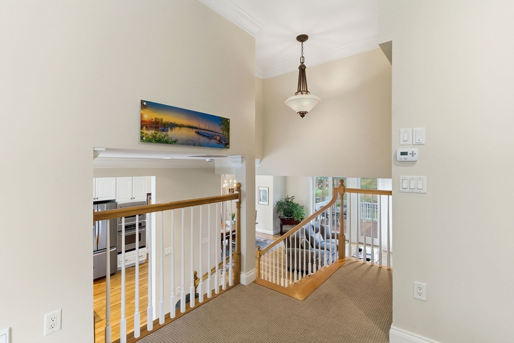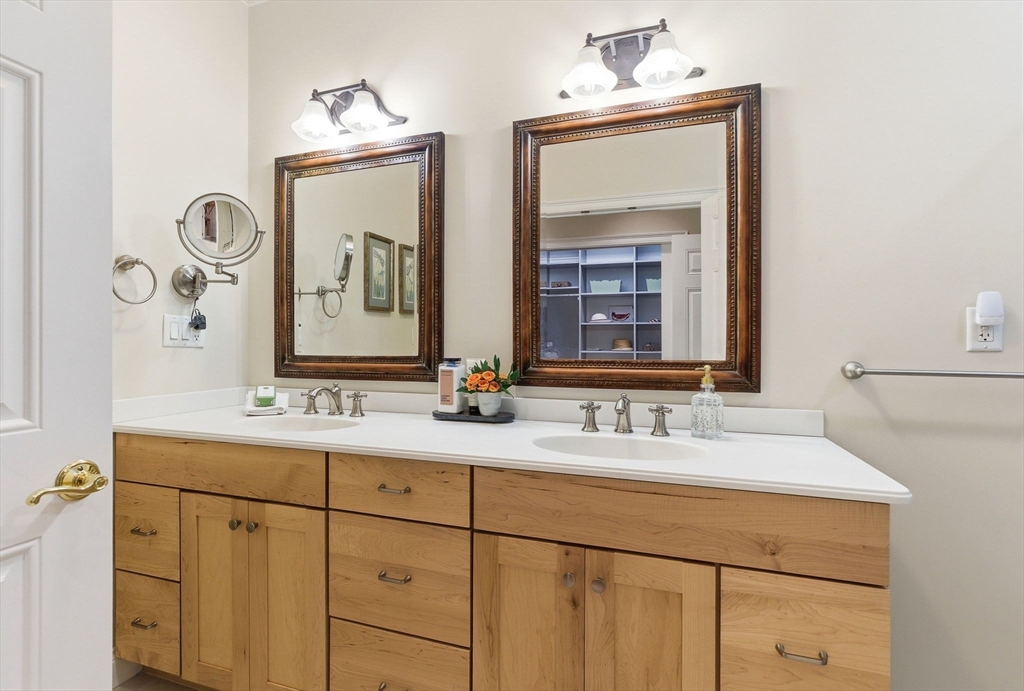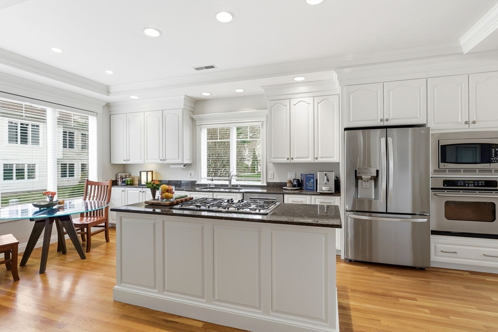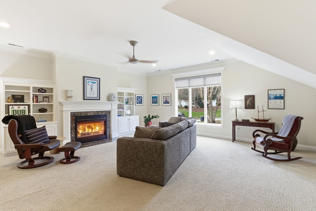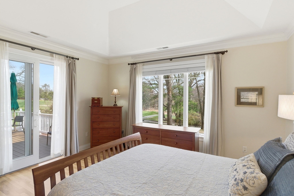 Rare opportunity to enjoy effortless living at Andover Country Club, with stunning views of the 6th fairway and sweeping vistas across one of the area’s most beautiful courses. This bright, thoughtfully designed home features a welcoming kitchen with white cabinetry, custom built-ins, and stainless steel appliances. With 3 bedrooms, 3.5 baths, and generous storage, there’s space for comfort and convenience throughout.The first-floor primary suite offers a walk-in closet with custom built-ins, private deck access, and peaceful golf course views. The recently updated bath includes a spacious tiled shower and double vanity, while a renovated half bath with washer/dryer supports easy single-level living.Additional living areas provide flexibility for guests or hobbies, including a private upper-level suite and a finished lower level ideal for a home office. Complete with two gas fireplaces and a 2-car garage, this home blends elegance w/ low-maintenance living. Don't let this one get away!