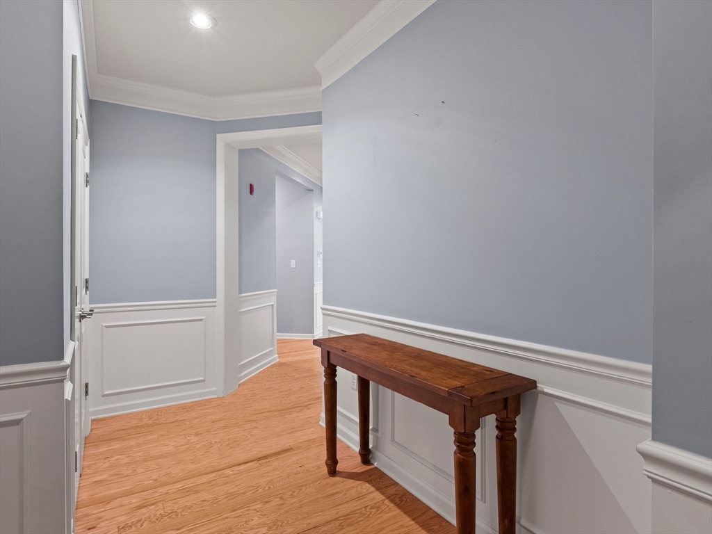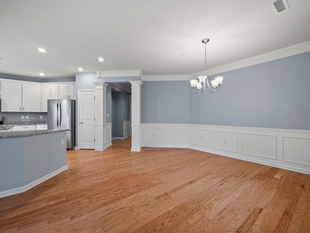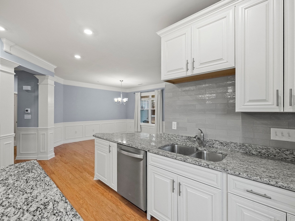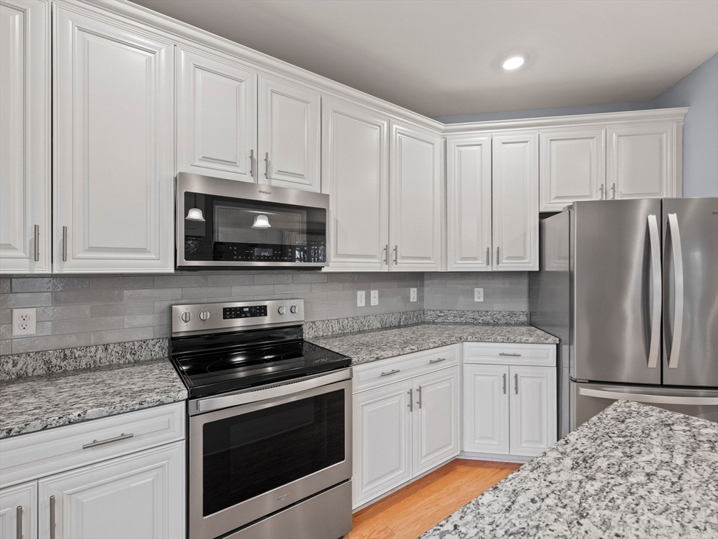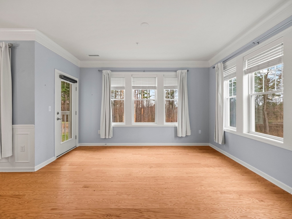 Riverside Woods – Vibrant Adult (62+) Community in a modern, secure building. This desirable first-floor, corner unit offers the ultimate in convenient living, just steps from the elevator and lobby. Enjoy the serene rear-facing setting with peaceful woodland views and direct access to walking paths along the Merrimack River. The open kitchen shines with white cabinetry, stone countertops, and a tasteful backsplash. The spacious living and dining area opens to a private balcony – perfect for morning coffee with nature as your backdrop. The generous primary ensuite and well-separated guest suite each offer privacy and ample space. Hardwood floors, recessed lighting, and crown molding add elegant finishing touches. Two garage parking spaces with additional storge complete the package. The community clubhouse features a fitness center and outdoor patio with grilling area. Easy, elegant living at its best!