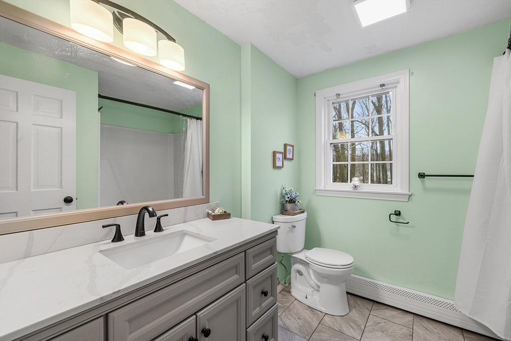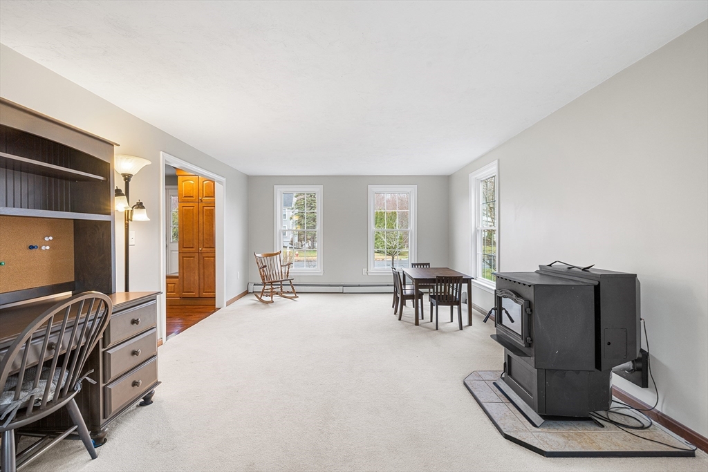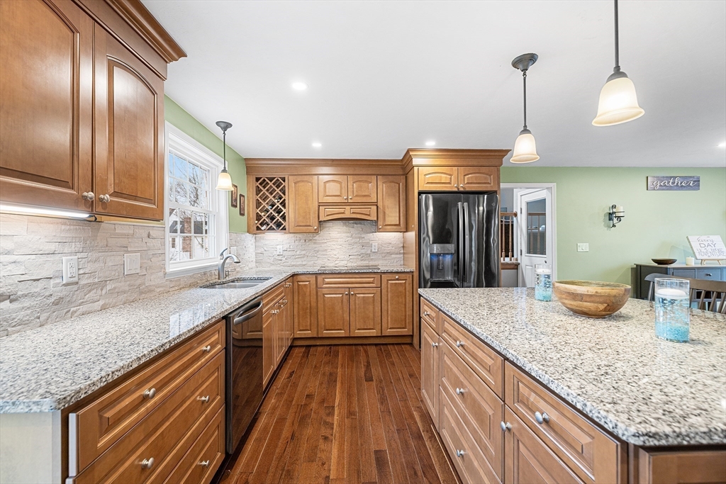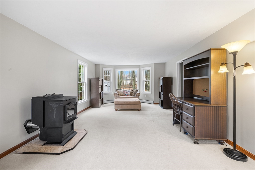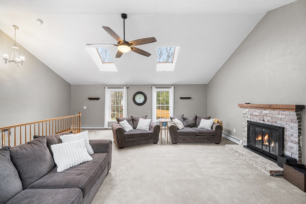 This well-maintained home showcases true pride of ownership with numerous thoughtful updates throughout. A charming front portico enhances curb appeal, while the partially fenced yard has been beautifully landscaped with fruit trees, strawberry plantings, and raised garden beds. Inside, you’re welcomed by custom built-ins, adding both style & function. The updated, large open kitchen is centered around an oversized island with granite countertops and stainless steel appliances, making it ideal for cooking and entertaining. The home offers 4BD/2.5BA, fresh paint, and updated windows throughout. The living room features a cozy wood stove, while the large vaulted family room is centered around a stunning wood fireplace. Additional updates include whole-house water filtration & irrigation system, high-efficiency Buderus boiler and oil tank, finished basement with wide-plank flooring & mini-split, & an oversized deck built with added support for a future 3-season porch.