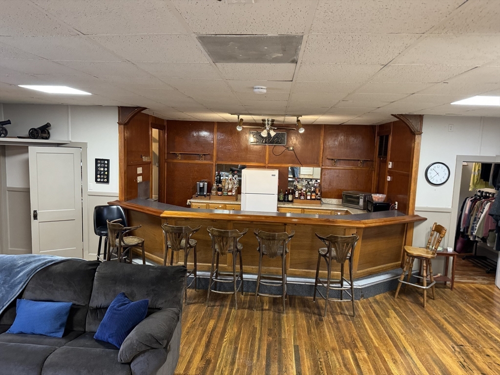 Welcome Home!! Move in ready home located at the end of a quiet street yet close to everything! This huge studio style home in a prime location is within walking distance of Bridgewater State University and the Bridgewater MBTA station. Potential to be used as a dormitory, fraternity, sorority, college club or bachelor/bachelorette pad the opportunities are endless with this unique property. Imagine hosting friends and family at your own private bar? Large open floor plan with hardwood floors and commercial bar give the foundation to any direction your plans go. Partially finished basement that would almost double the living area. See the pictures showing a 3 bedroom ranch and two car garage addition possibilities. Great investment opportunities here, let your imagination run wild and have fun!