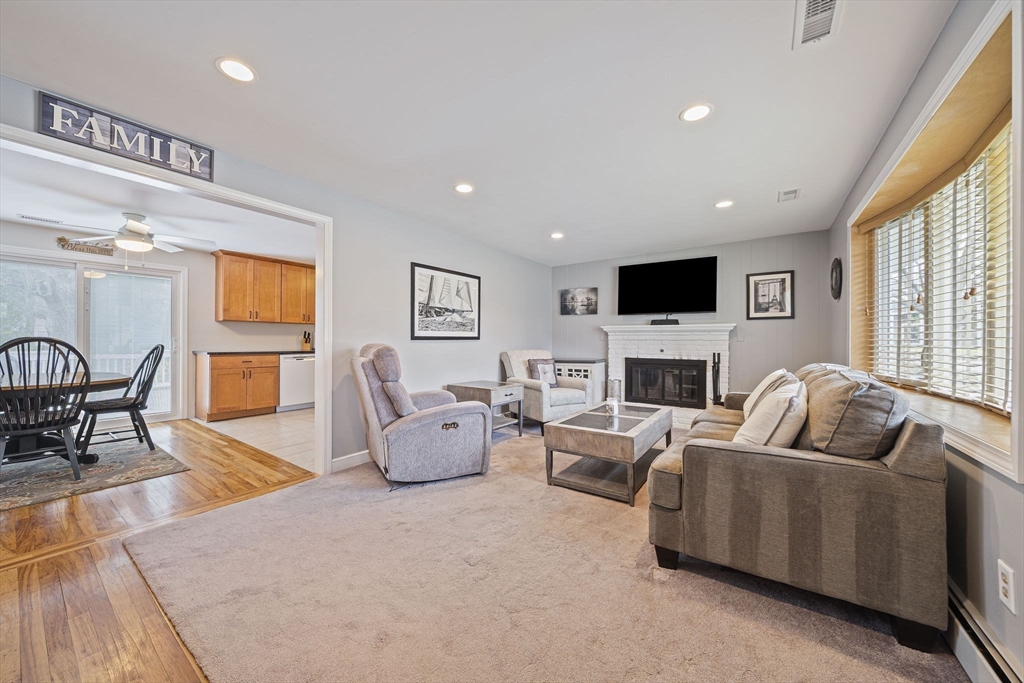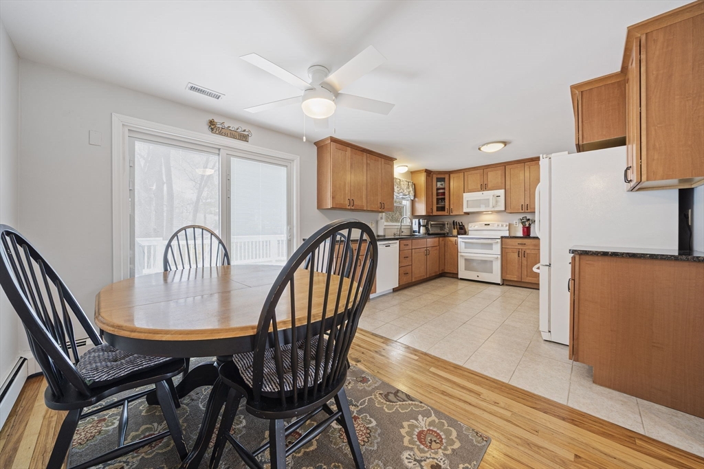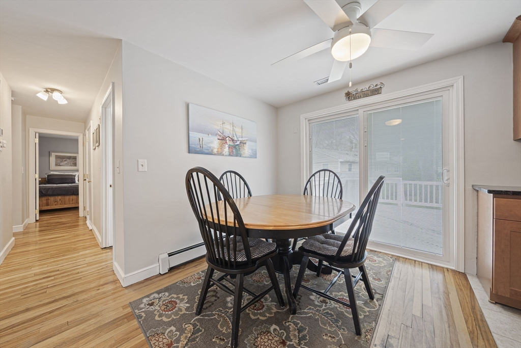 Welcome to easy living in this well maintained 3 bedroom ranch set on quiet corner lot in a desirable neighborhood. This charming home offers the ideal blend of comfort, updates and location. Perfect for first time homebuyers or empty nesters. Inside you'll find an open floor plan with fireplaced living room with hardwoods leading into a cabinet packed kitchen with granite countertops and newer appliances. The dining area opens to a slider leading to a large deck, perfect for entertaining or relaxing outdoors. Three generous sized bedrooms all with hardwood floors and a refreshed bath with double sink vanity. Recent updates include newer roof, new hvac system, new hot water heater, upgraded electric and a new driveway with a 1 car garage. One floor living at its finest. Perfectly located near the T, major highways and shopping. Come see all this home has to offer. You won't be disappointed.