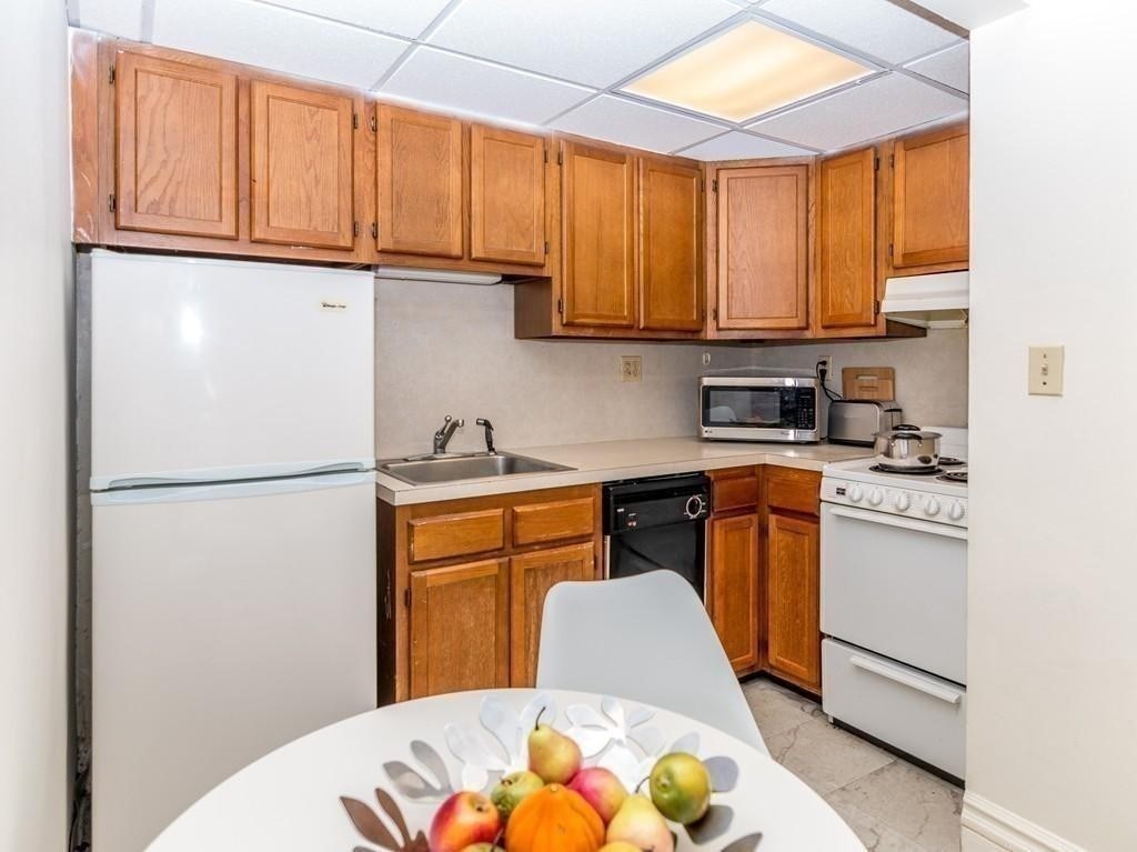 JULY 1 - PERFECT FOR LONGWOOD/BU. Centrally located in the desirable BRAEMORE CONDOMINIUM, this updated and clean PENTHOUSE STUDIO offers great light, pretty moldings, renovated kitchen with dishwasher/disposal and central air conditioning. Laundry in the building. The building has an amazing common roof deck with panoramic Boston views of downtown and of the Charles River. Walk to Back Bay, BU, Longwood Medical, the Charles, and the T is downstairs! No smokers, no pets. Unit professionally cleaned before move in. Will consider undergraduate with cosigner. International students welcome. Video tour available.