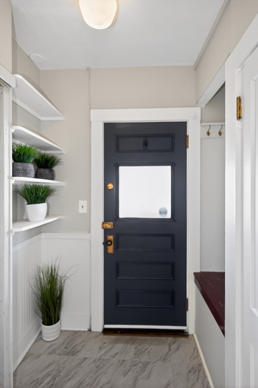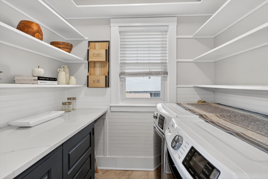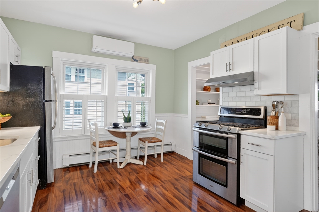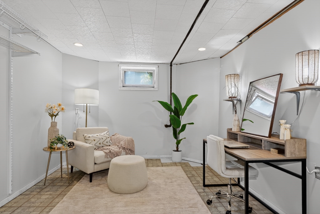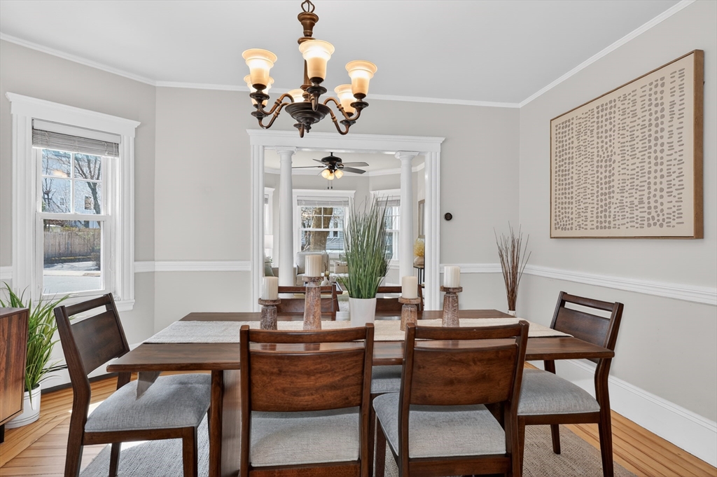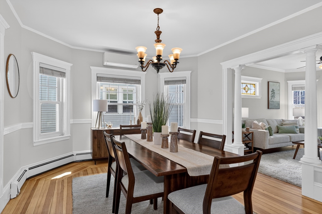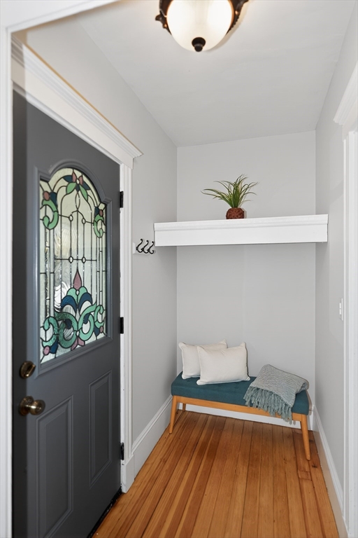 SELLERS ACCEPTED INCREDIBLE OFFER. OH's CANCELLED. Absolutely gorgeous first floor 2 bed/1 bath condo with bonus office/gym in lower level and room for more. Refinished floors, vinyl windows with custom blinds, renovated eat-in kitchen with gas stove and bath with fresh tile and fixtures, 2 original gorgeous stained glass windows, beautiful columns between living and dining rooms, built in china cabinet, in-unit laundry, artistic paint colors, great open layout, entryway & back mudrooms, front farmers porch and back sprawling porch for relaxing overlooking a lovely landscaped yard. Unencumbered side by side parking at end of driveway. Bedrooms, kitchen and LR have mini-splits for zone heating and cooling. Around the corner from the 73 busline stop to Harvard Sq, a huge playground with tennis, basketball, baseball and soccer fields and the famous Butler Elementary School. Just down the road from the commuter rail, many shops, stores, salons, fitness centers, dining options.