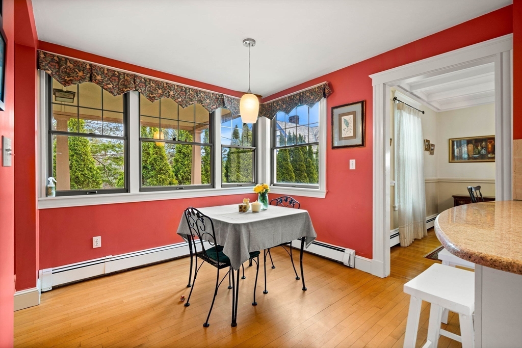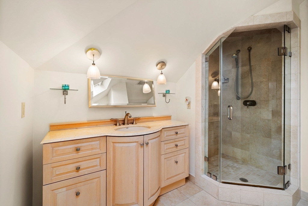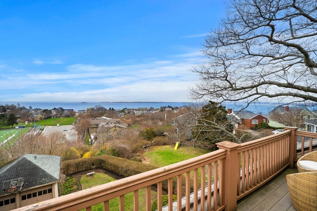 Perched high above the coastline, this exceptional Swampscott home offers breathtaking, panoramic ocean views from every level. The original 1920 residence blends timeless charm with a thoughtfully designed addition that maximizes southern exposure and stunning water vistas. The main level features a spacious eat-in kitchen, dining and living areas oriented toward the views, formal entry foyer, and half bath. A dramatic lower-level family/sunroom showcases cathedral ceilings and floor-to-ceiling windows, opening to professionally landscaped, mature gardens. Upstairs, the second floor includes two large bedrooms with direct ocean views, a full bath, third bedroom, and laundry. The top-floor primary suite offers a roof deck and glass doors with sweeping ocean views, walk-in closet, and full bath. Additional highlights include a two-car garage, porte-cochere, plentiful driveway parking, and ample basement storage. Within .6mi of new elementary school, middle school, shops, and ocean