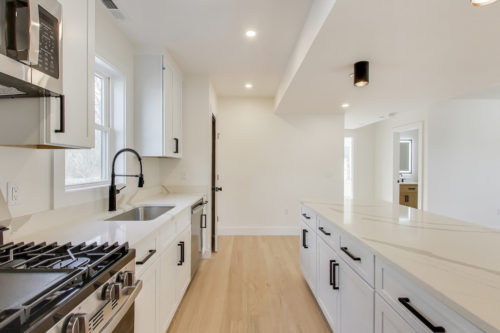 Available Sept 1 2026! Come enjoy this fully gut renovated condo-quality apartment with 3 beds and 2 baths in an incredible location in Dorchester's Lower Mills within walking distance to the Ashmont Red Line T Stop! Each apartment was renovated from the studs and features high-end finishes starting with the kitchen which has beautiful white shaker cabinets with quartz countertops and s/s appliances! You'll love the open concept flow of the kitchen and the living space that gets flooded with light. There are three large bedrooms including one primary suite that features a large primary bathroom. The unit also features brand new hardwood floors, recessed lighting throughout, and in-unit laundry. This unit has a private deck in the rear along with access to a shared yard! Off street parking available for $100/mo. Incredible location in Dorchester close to the T, shopping, restaurants and parks. First month/last month rent due at lease signing.