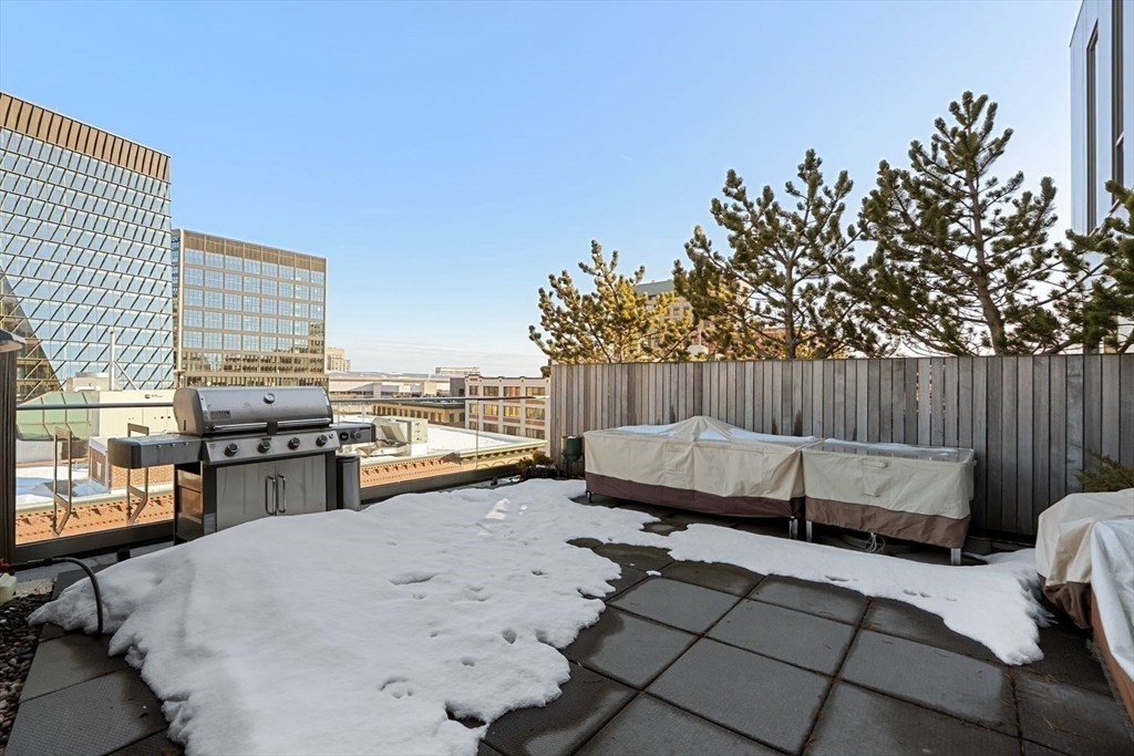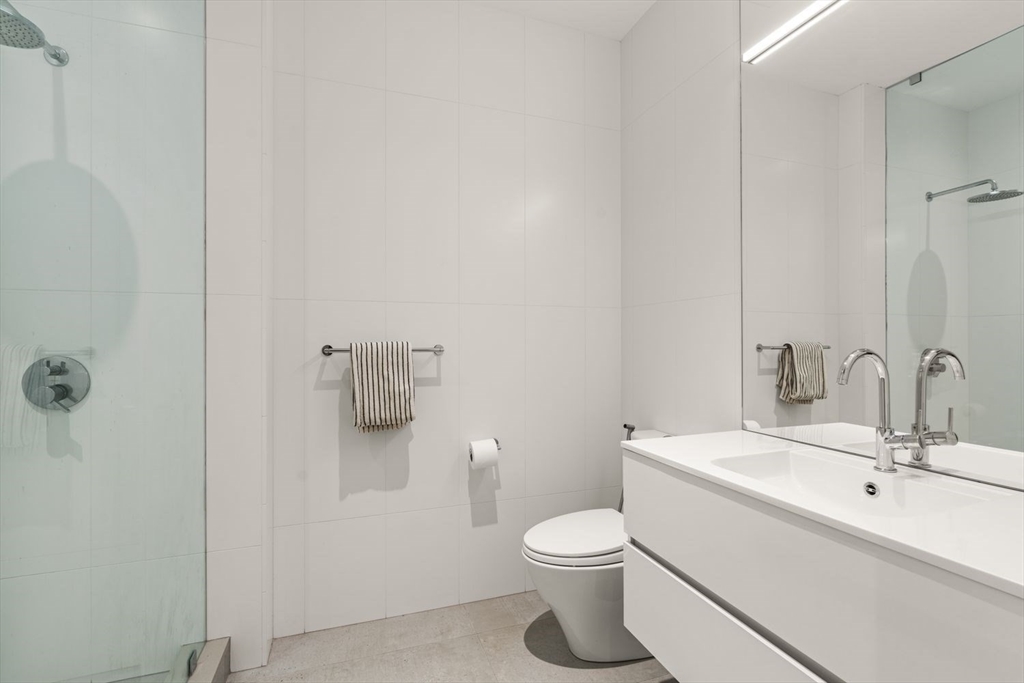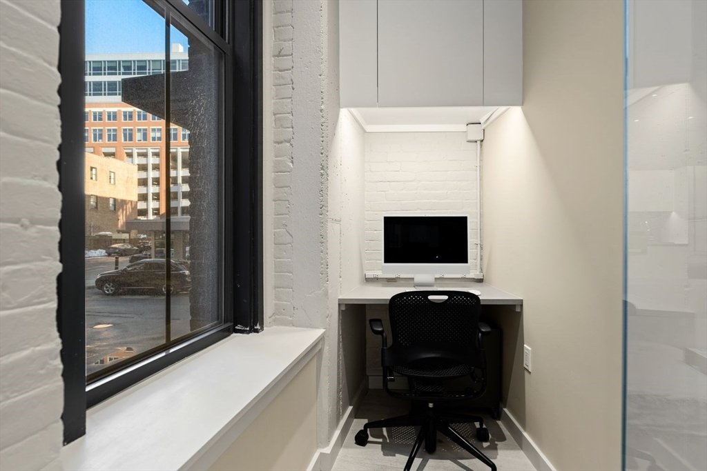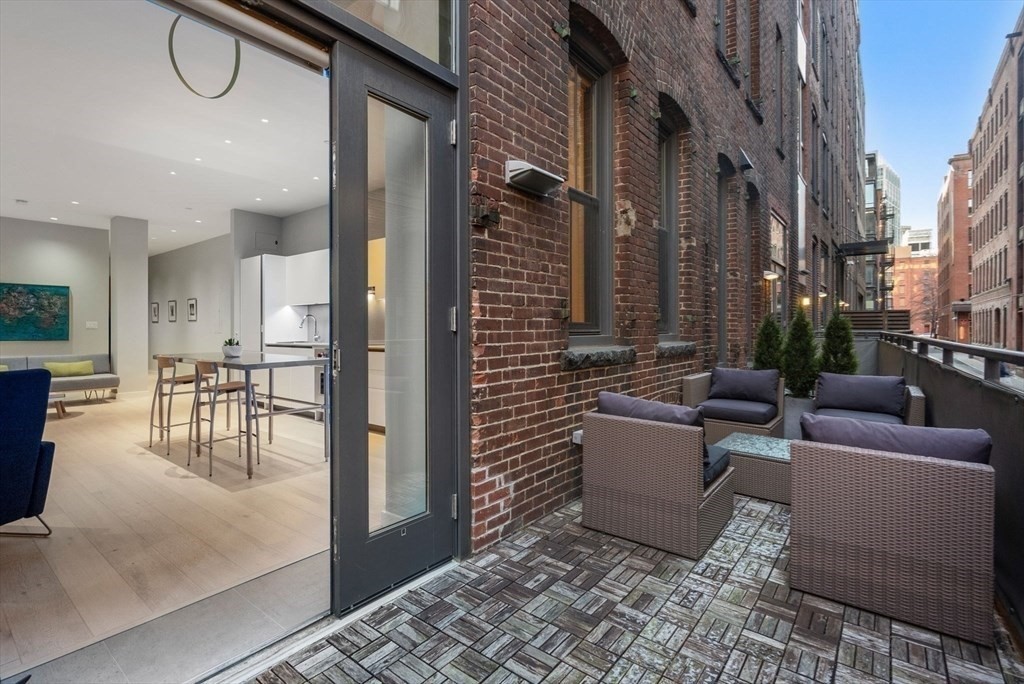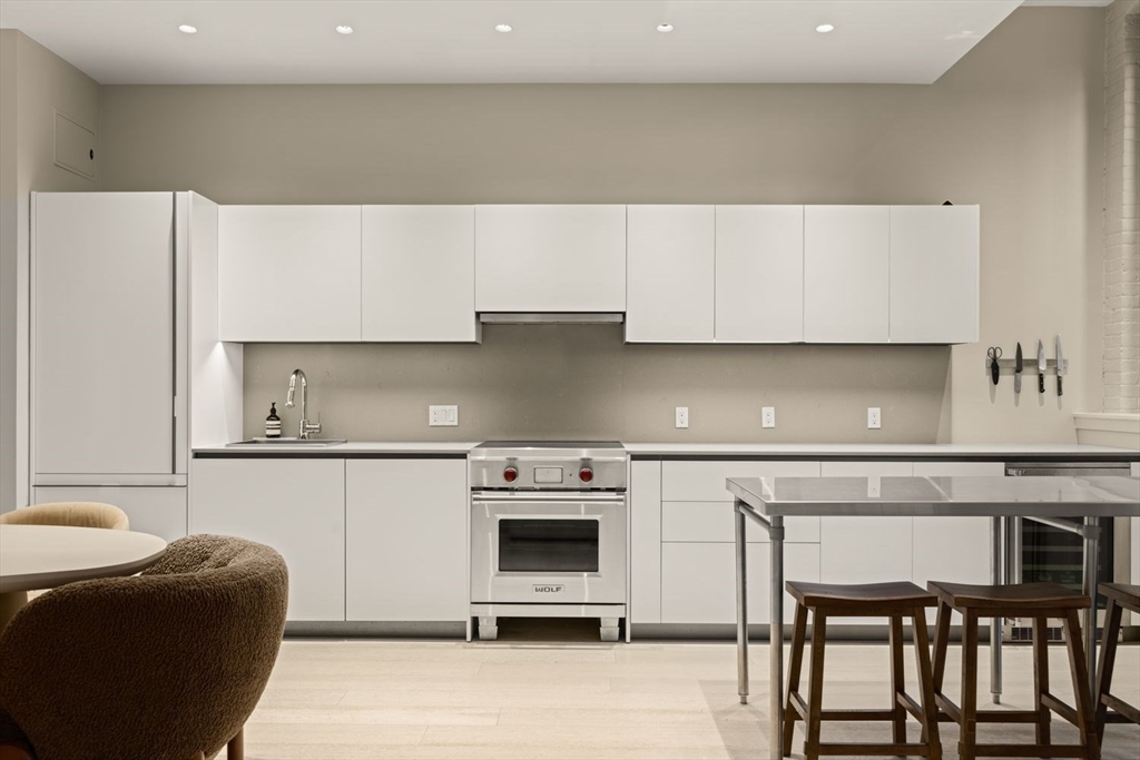 FP3 | Rare Loft-Style Living with Private Terrace in the Heart of SeaportExpansive and design-forward, this rarely available FP3 residence offers a true loft-style layout with soaring ceilings, floor-to-ceiling windows, and a private outdoor terrace in Boston’s most dynamic neighborhood.Bathed in natural light, the open-concept living space showcases wide-plank oak flooring and a refined, modern palette. The kitchen is both sculptural and functional, featuring custom cabinetry and premium appliances including a Wolf range, Bosch refrigerator and dishwasher, and Marvel wine fridge—ideal for both everyday living and entertaining.The bedroom is thoughtfully positioned for privacy and comfort, complemented by a spa-inspired bathroom with radiant heated floors. Additional features include integrated LED lighting, a built-in Molteni mirrored closet system, and in-unit laundry.