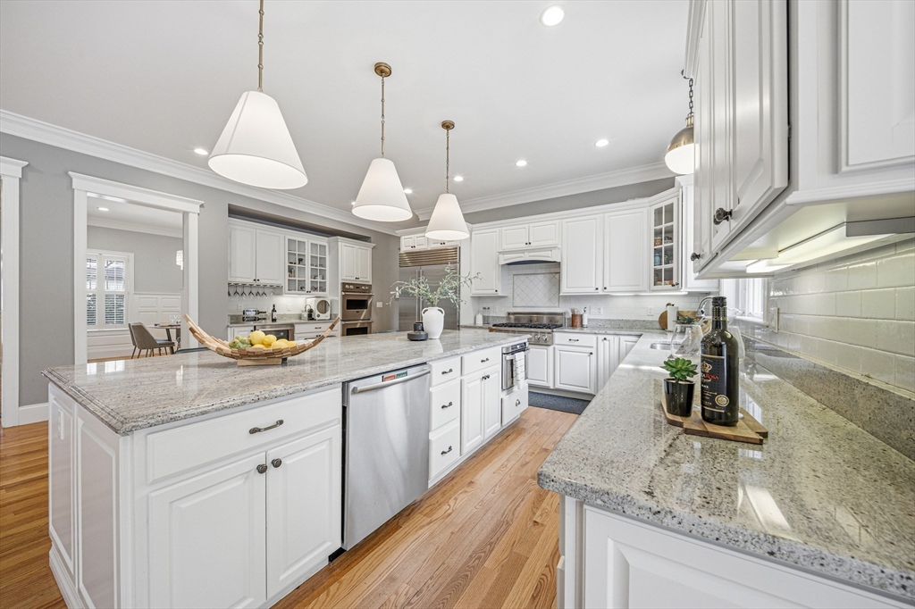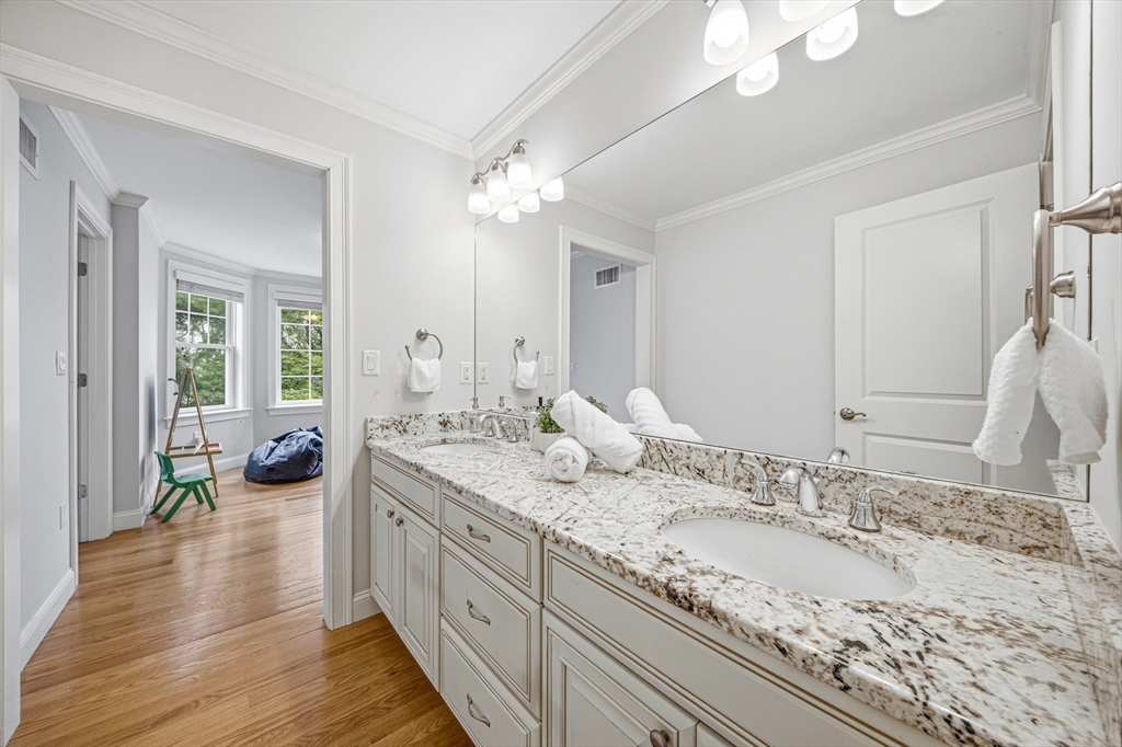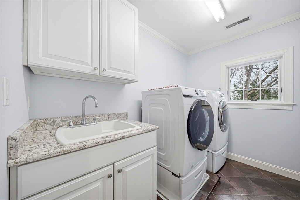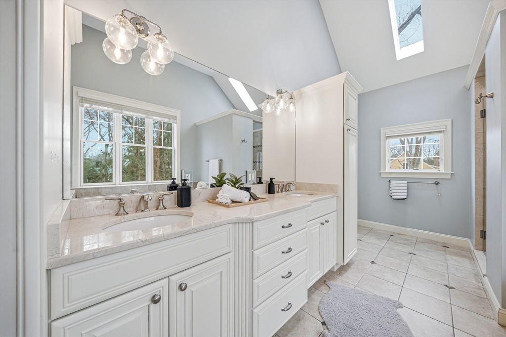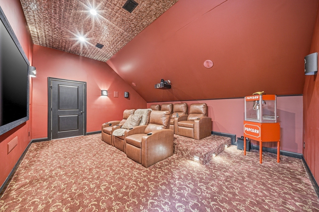 Exceptional grand Colonial offering approx. 6922 sqft in Lexington with sun-filled open layout and refined design. Chef’s kitchen features large island, granite counters, stainless steel appliances, double dishwashers, and breakfast nook with window seating. Main level includes fireplace living room, private office with fireplace, and spacious bedroom suite with full bath and walk-in closet. Second floor offers a luxurious primary suite with vaulted ceilings, oversized walk-in closet with makeup station, and spa-like bath with soaking tub, large walk-in shower, and private toilet, plus Jack-and-Jill bedrooms and laundry. Top floor features home theater and game area with pool table. Finished lower level includes gym, yoga area, sauna, locker room, heated-floor bath, wine cellar, flexible space, and second laundry. Heated 2-car garage, large deck with outdoor TV hookup and hot tub, irrigation system, and fenced yard with multiple access points. Located in a top-rated school district.