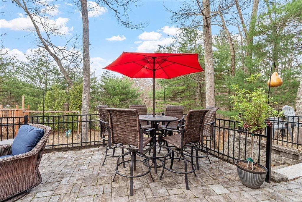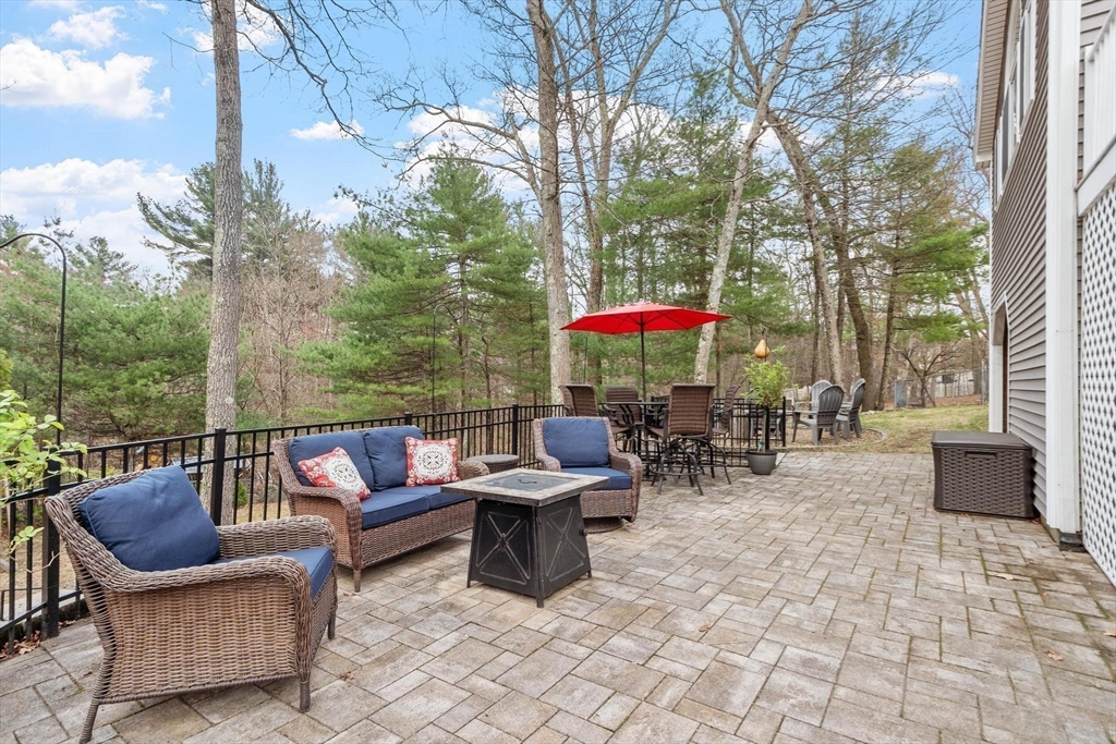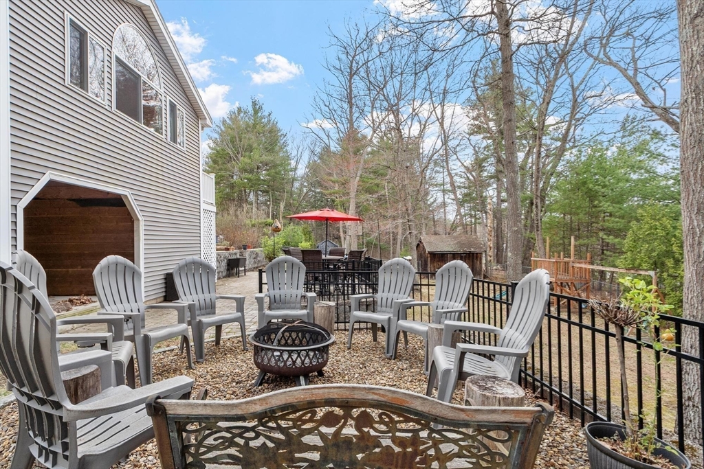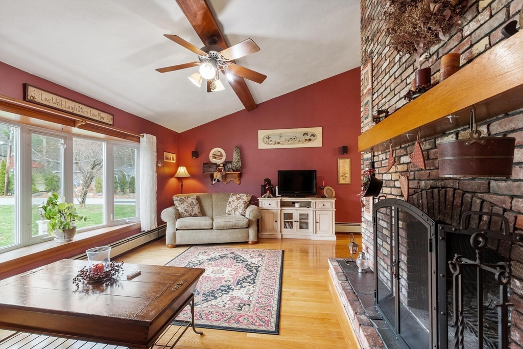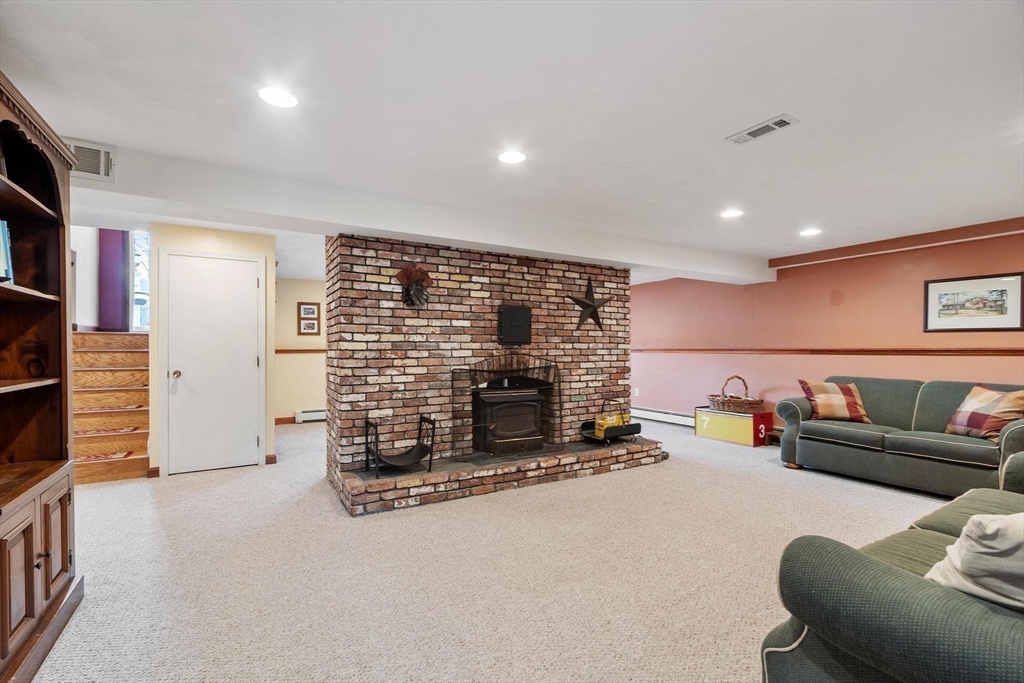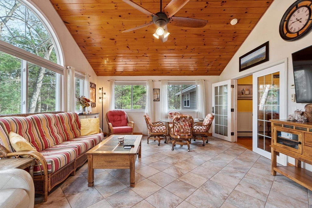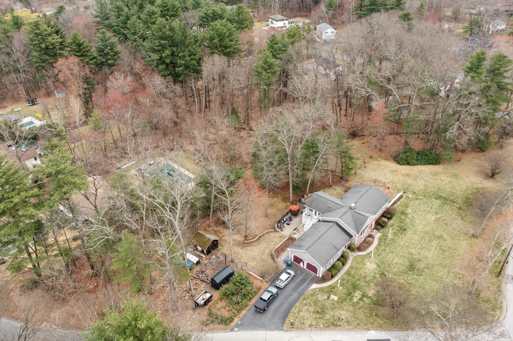 No open house, make your appointment today! Nicely maintained home with large lot in quiet neighborhood in desirable Tewksbury. Large open living areas: Inviting living room with fireplace. Stunning sunroom has radiant heat and soaring ceilings. Terrific family room with fireplaces on two sides and exterior access leads to enclosed storage room and covered storage area. Deck and extraordinary patio with multiple areas for entertaining overlooks spacious, grassy and wooded backyard. Beautiful primary bedroom with bath and three (!) closets. Cozy country kitchen with stainless steel appliances, island and charcoal grill! Spacious two car garage with storage and work area. Shed at back of lot for more storage and play gym stays. Easy access to highways for commuters, plenty of shopping nearby. Any or all offers to be received and reviewed after Monday at 5 PM. Seller reserves the right to accept an outstanding offer prior to the deadline. Please allow 24 hours in offer for review.