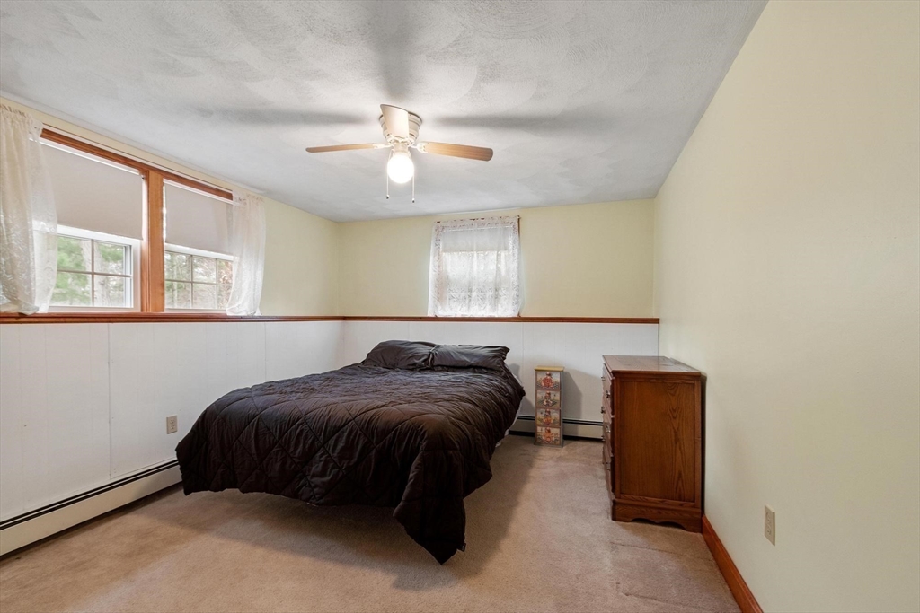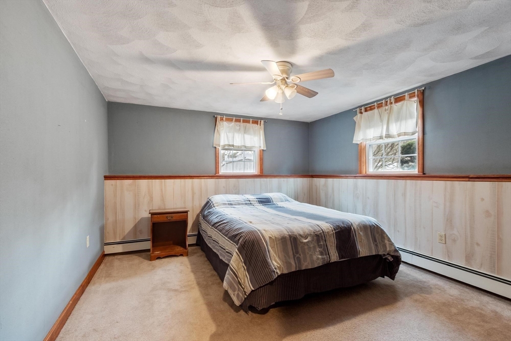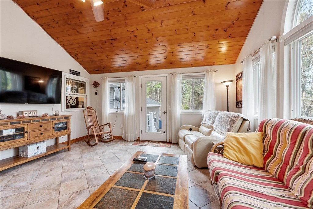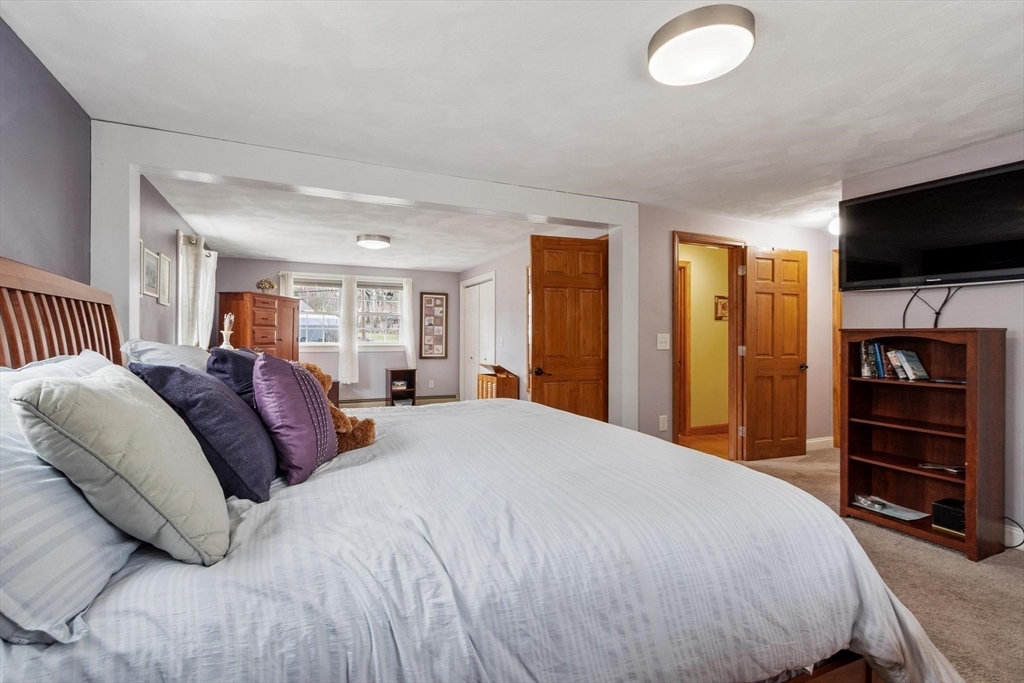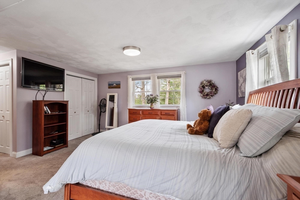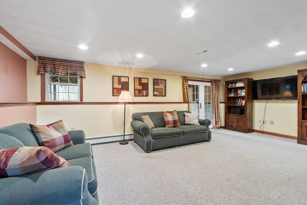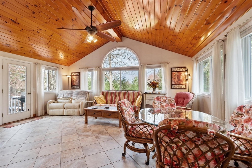 No open house, make your appointment today! Nicely maintained home with large lot in quiet neighborhood in desirable Tewksbury. Large open living areas: Inviting living room with fireplace. Stunning sunroom has radiant heat and soaring ceilings. Terrific family room with fireplaces on two sides and exterior access leads to enclosed storage room and covered storage area. Deck and extraordinary patio with multiple areas for entertaining overlooks spacious, grassy and wooded backyard. Beautiful primary bedroom with bath and three (!) closets. Cozy country kitchen with stainless steel appliances, island and charcoal grill! Spacious two car garage with storage and work area. Shed at back of lot for more storage and play gym stays. Easy access to highways for commuters, plenty of shopping nearby. Any or all offers to be received and reviewed after Monday at 5 PM. Seller reserves the right to accept an outstanding offer prior to the deadline. Please allow 24 hours in offer for review.
