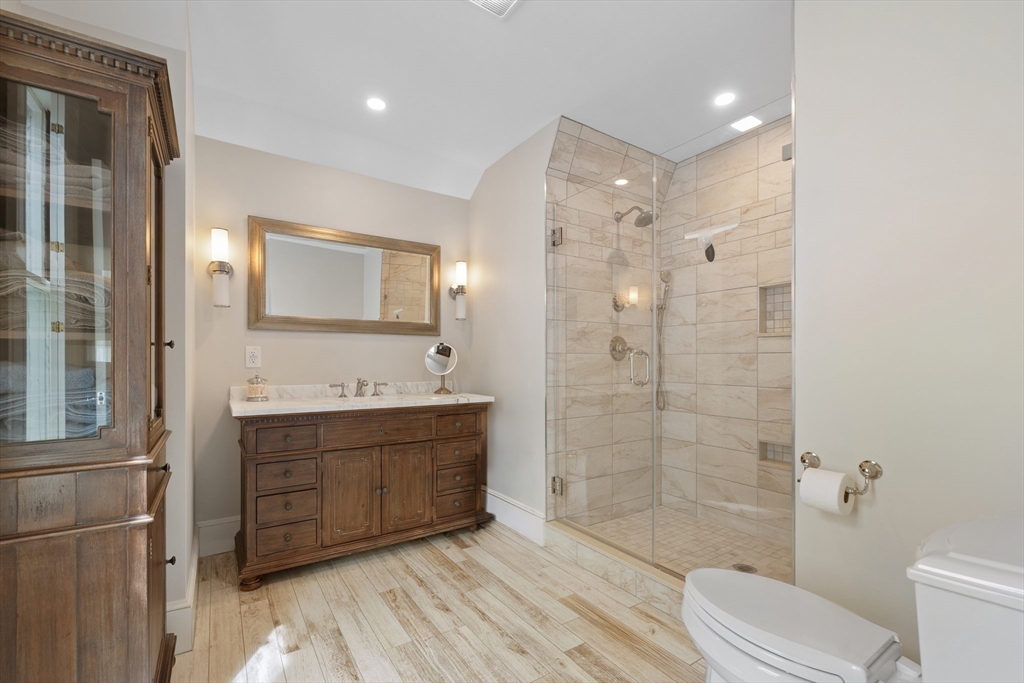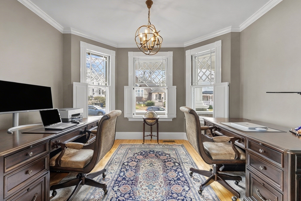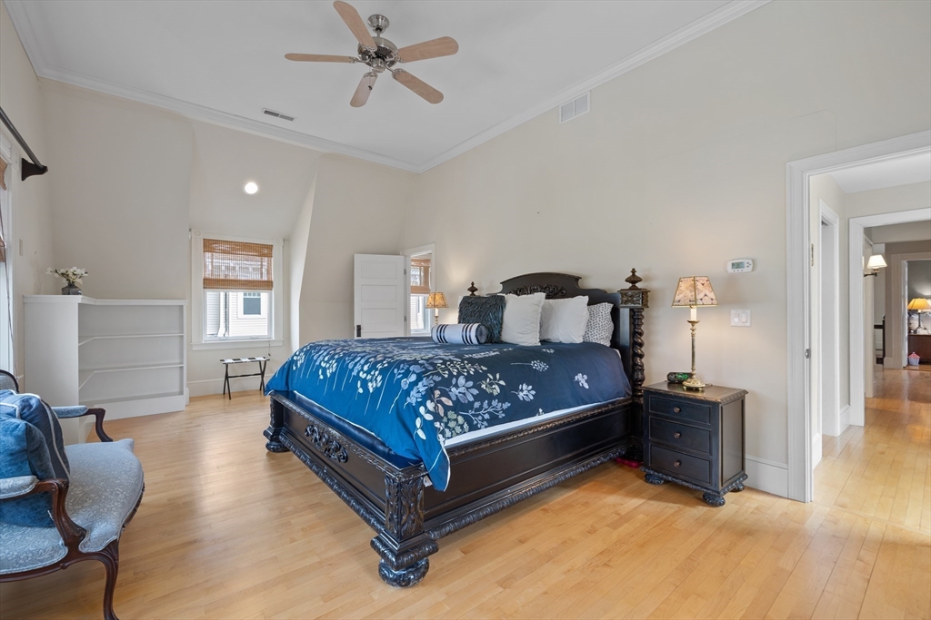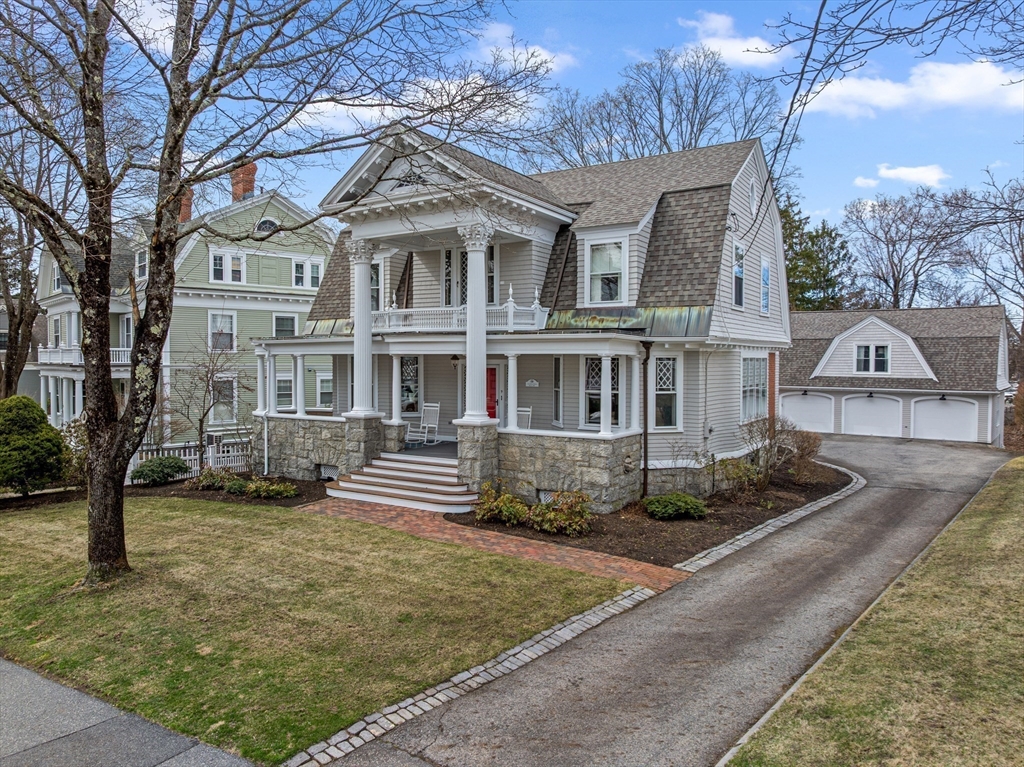 OWN A RARE PIECE OF ANDOVER HISTORY, “THE SPHINX HOUSE”! Located in downtown, two blocks from Phillips Academy, this distinguished Victorian blends timeless character with comfortable, livable elegance. Offering 5 beds, 4 full & 2 half baths across 5,660+ SF, the home features hardwood floors, crown molding, and a seamless layout for everyday living and entertaining. The sun-filled main level showcases a fireplaced living room, open dining area, family room, private office, and a new custom kitchen with cabinetry, quartz counters, oversized island, Wolf oven, and Sub-Zero fridge. Upstairs, the primary suite offers a walk-in closet and spa-like bath. Set on a .24-acre lot with a detached 3-car garage with EV charger, featuring finished upper-level space with kitchen, living area, bedroom, and full bath for flexible use. See attached document for list of updates and improvements. DON’T MISS THIS UNIQUE OPPORTUNITY!