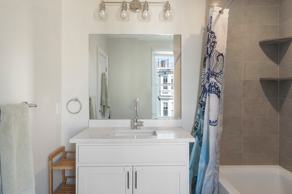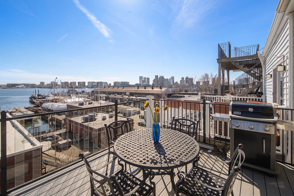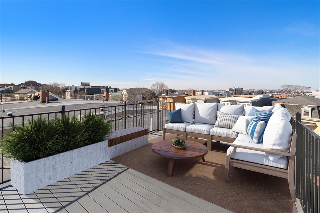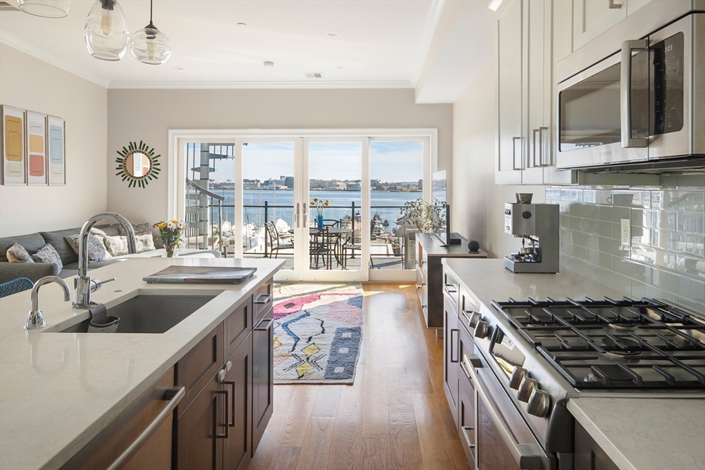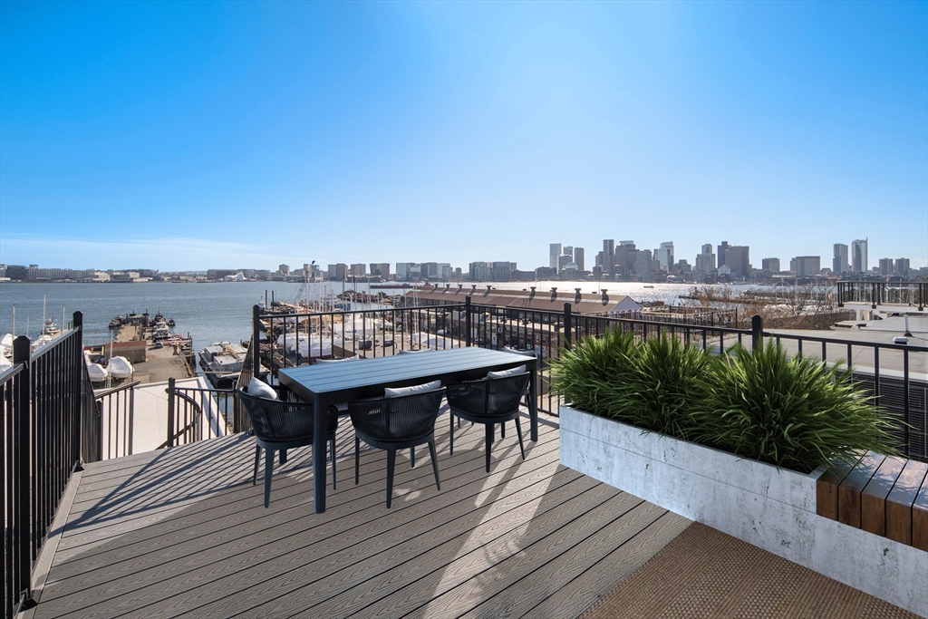 Experience the best of Jeffries Point waterfront living just in time for summer in this beautiful 2 bed 2 bath penthouse on the harbor facing side of coveted Webster Street. The open concept living room and kitchen features quartz countertops, a large center island, stainless steel appliances, and excellent storage. The spacious primary suite boasts a walk-in closet, modern bathroom with shower/tub. The second bedroom can easily accommodate a queen-sized bed or double as a home office/exercise space. Professionally managed and additional basement storage. Two private decks, one off the living area perfect for sipping morning coffee and the other being an amazing roof deck offering commanding unobstructed views of Boston Harbor and the city skyline. Short walk to the waterfront jogging path, stunning Piers Park, restaurants/café/bars such as Aloe Natural, TallShip, and The Reelhouse. Easy walk to Maverick Sq. T and the water ferry landing for quick access to downtown Boston/Seaport.