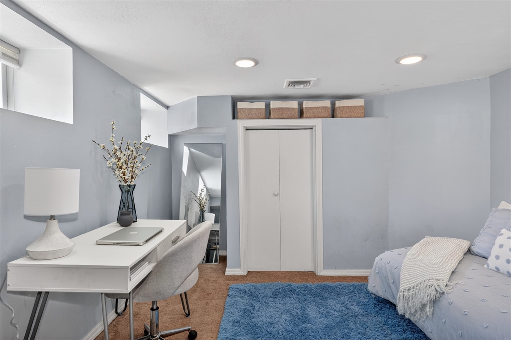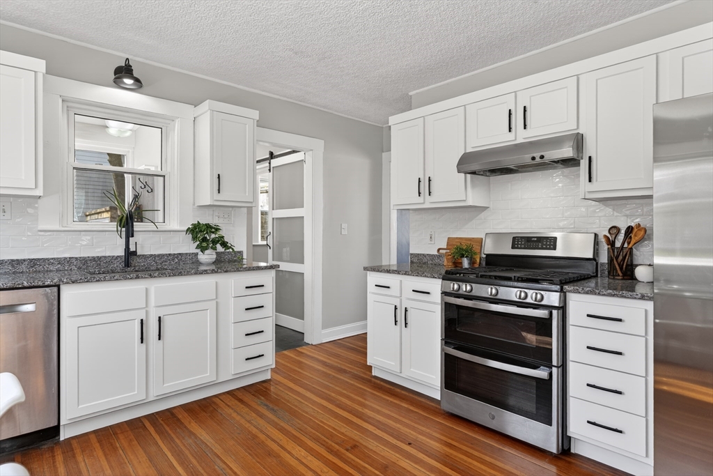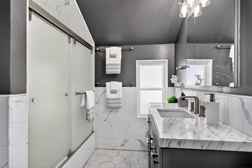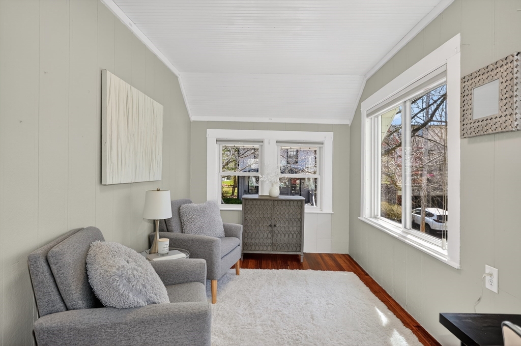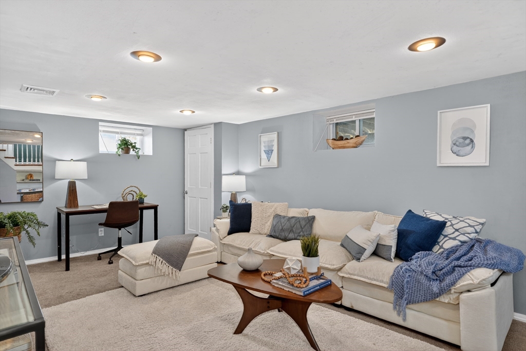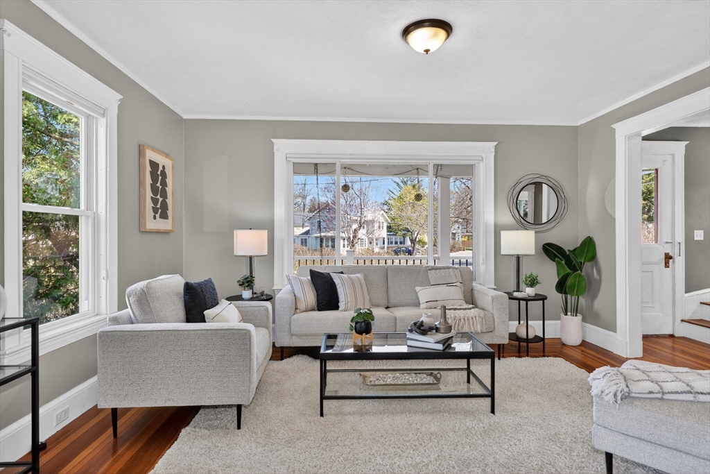 This 3 bed, 1.5 bath home rests on a quiet street near Town Field & has been gorgeously renovated. Once greeted by the farmer's porch with a swing bench, the first floor has hardwood and large new windows that blast in the natural sunlight. Front hall has been opened up to flow into living and dining room for sweeping views. The eat-in kitchen, bath (with laundry) and mudroom on this level have been renovated to create more useful space. Upstairs we have 3 bedrooms that used the family room for additional closet space (decorated differently than assigned to show possibilities). Our lower level has a recreation room, and an office that is perfect for visiting guests. We have a great big yard surrounding this home and are one block from Town Field with tennis, pickle ball, base and softball, soccer and playground. Trapelo Rd has the 73 busline & commuter rail. Near shopping, groceries, cafes, salons, florist, fitness, wines and cheese.