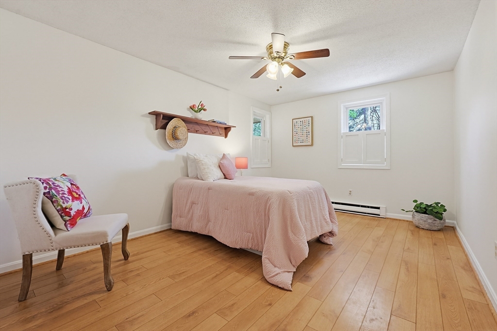 Discover easy, affordable condo living at Heritage Park, with its beautiful setting, walking paths, gazebos, & a scenic pond. This move-in ready second-floor unit features an open floor plan that connects the kitchen, dining, & living area, providing a spacious feel. A French door leads to a private balcony overlooking tree-lined grounds (not parking lot!), complete with a walk-in storage area. This unit includes two spacious bedrooms with ample closet space & ceiling fans for warm, summer days. A dedicated laundry room with built-in cabinetry keeps your space neat & organized. The full bath features tile flooring & a tub/shower combination. Second-floor living offers energy efficiency, & Northbridge’s low tax rate enhances affordability. Enjoy maintenance-free living with no lawn care or snow removal. Young a.c. unit, windows, floors, and microwave. Parking for 2 vehicles. Conveniently located near schools, shopping, & Rte 146, come make it YOURS!