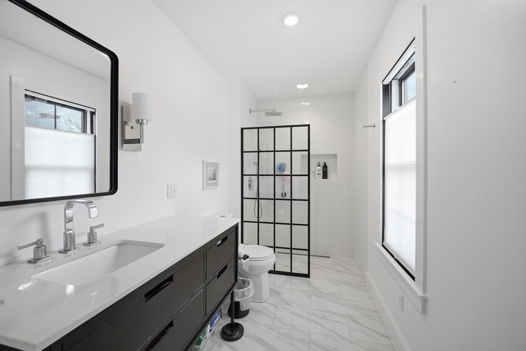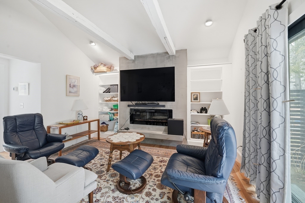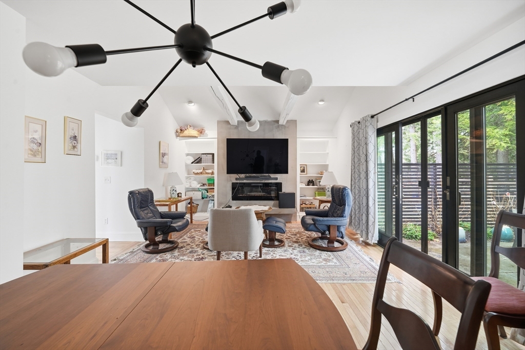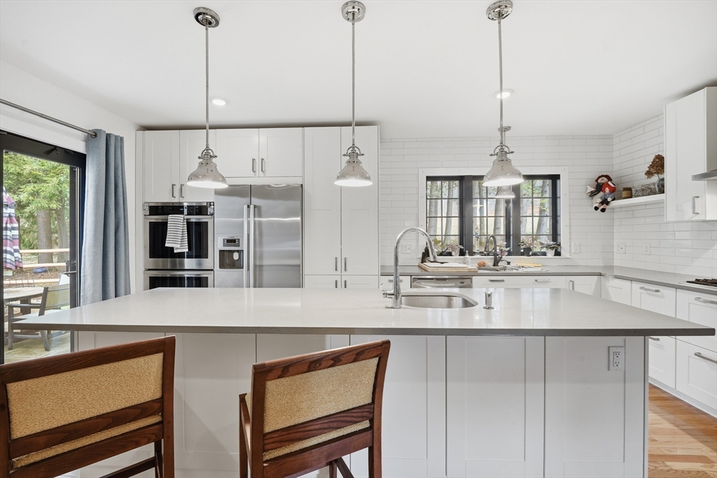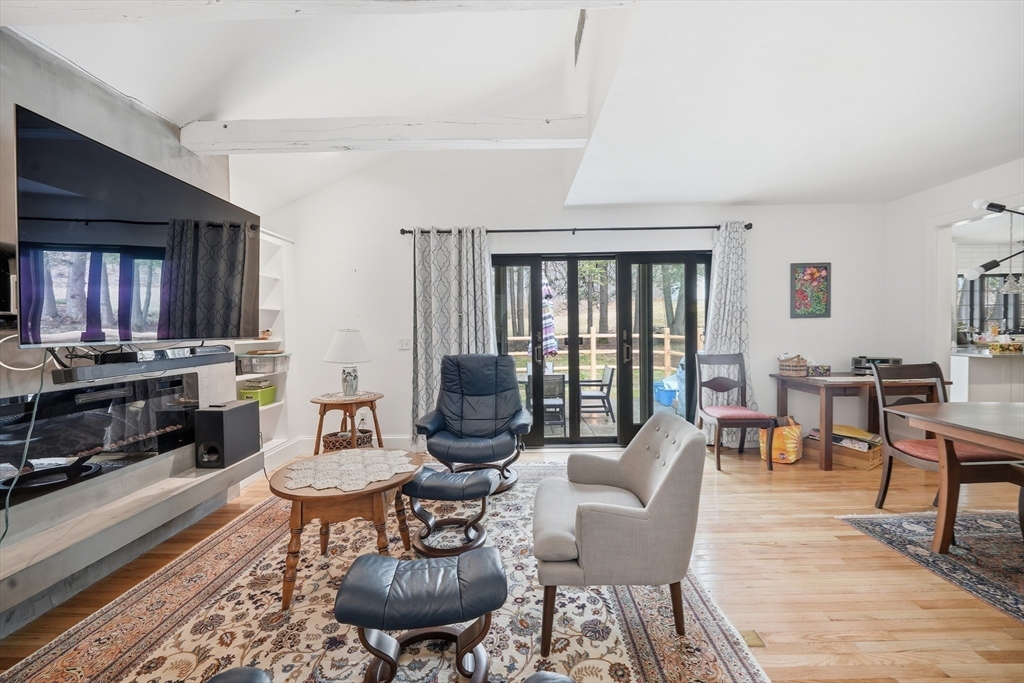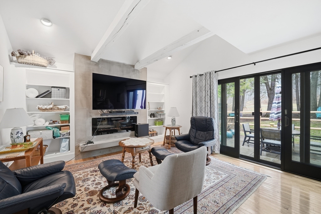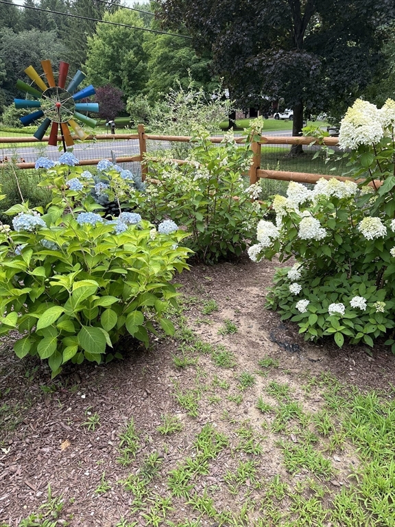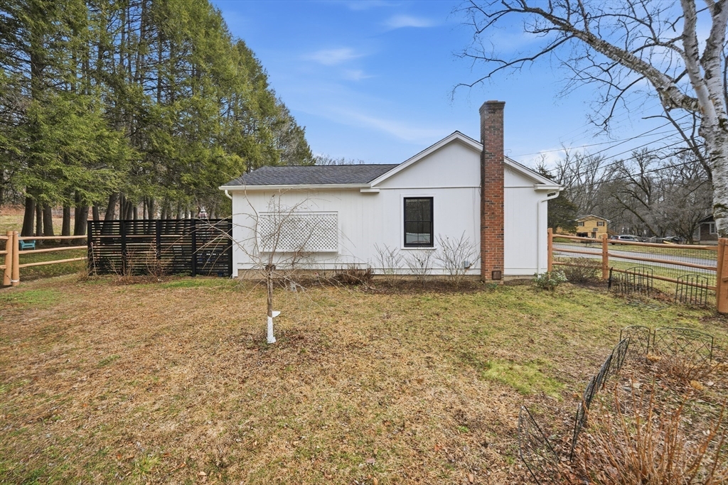 Welcome to a beautifully renovated home set on 1.6 acres in a desirable Hadley location, conveniently located just minutes from shopping, UMASS and major highway access. Enjoy exceptional curb appeal with impressive, established gardens and a generous, private yard with a storage shed. Inside, the expansive kitchen is a standout with a large island, double ovens & ample storage space—perfect for cooking and entertaining. Bright living areas offer an open, inviting feel, highlighted by a modern electric fireplace that serves as a stylish focal point. Large doors off the living room open to a private patio, allowing enjoyment of the quiet backyard setting. The primary bedroom offers privacy with its own tastefully updated bathroom, while an additional bedroom provides comfort and charm. Central A/C, a spacious laundry room, a full bathroom, and an office area round out this eye-catching home.