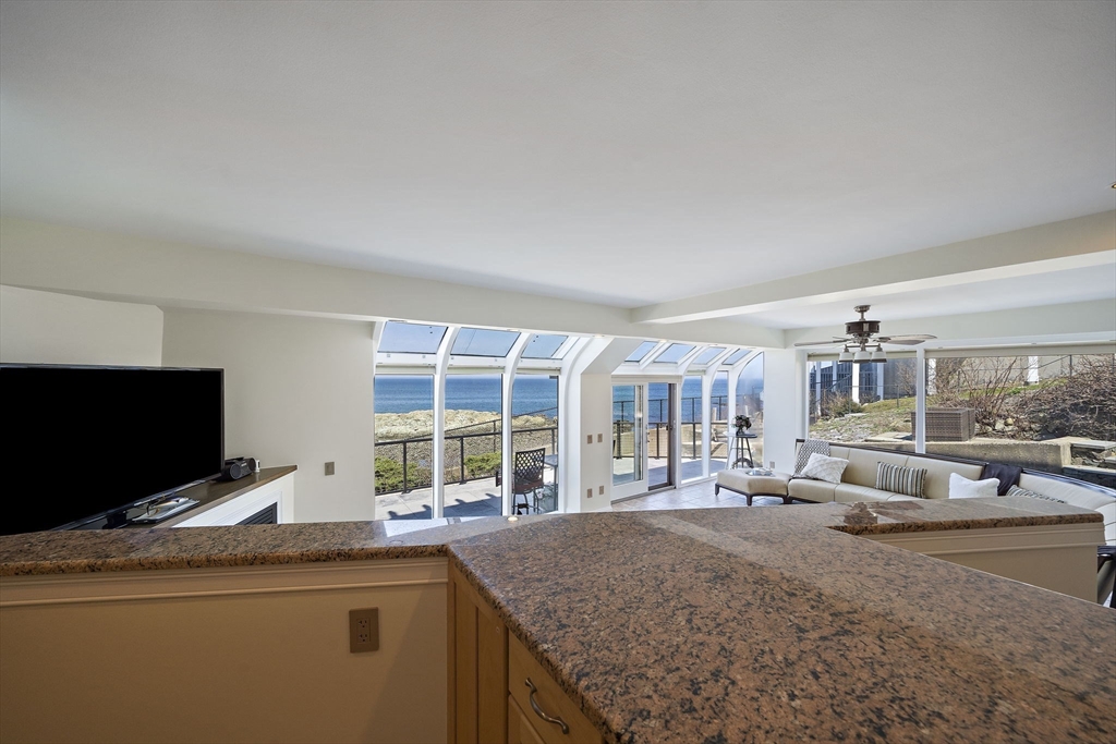 Imagine walking up to the soothing symphony of crashing waves, the salty tang of the ocean air, and panoramic views that stretch endlessly across the horizon. This isn't just a dream; it's your everyday reality at 25 Oceanside Drive. Nestled directly on the captivating shores of Nantasket Beach. This exceptional 2-bedroom, 2-bath end unit offers unparalleled coastal living experience. From the moment you step inside, you will be enveloped by the bright, airy ambiance, with floor-to-ceiling walls of glass in the living room, dining room and kitchen, ensuring that the breathtaking ocean vistas are always the star of the show. Picture cozy evenings by warmth of your gas fireplace, a gentle crackle complementing the rhythm of the tide. Hull offers a charming blend of seaside tranquility. Twenty minute commuter boat ride directly to Boston's Long Wharf. Guest Parking available. NO SPECIAL ASSESSMENTS.