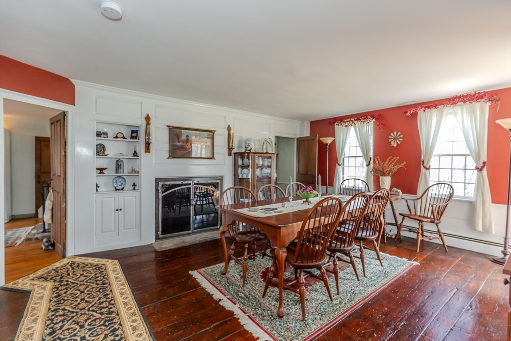 Distinguished 5-bedroom, 2 bath home offering over 2900 square feet of above-grade living space. This architecturally significant home blends historic charm with thoughtful modern updated, ideal for buyers who value both character and comfort.The updated kitchen features contemporary appliances, a cozy wood stove, and integrated laundry. A formal dining room providence an elegant space for entertaining and gatherings. Spacious bedrooms, including three with adjoining keeping rooms, offer excellent flexibility for home office, guest, or retreats. exposed hand carved beams and wide-plank floors highlight authentic craftmanship throughout.A central chimney with 5 fireplaces anchors the home's early Federal design. Additional details include 12 over 12 windows, diamond-pane accents, and custom millworkSituated on a nicely landscaped 27,800+sqft corner lot/large brick patio-perfect for relaxing or entertaining. 1 car detached garage-storage.Don't Delay. Call Today!