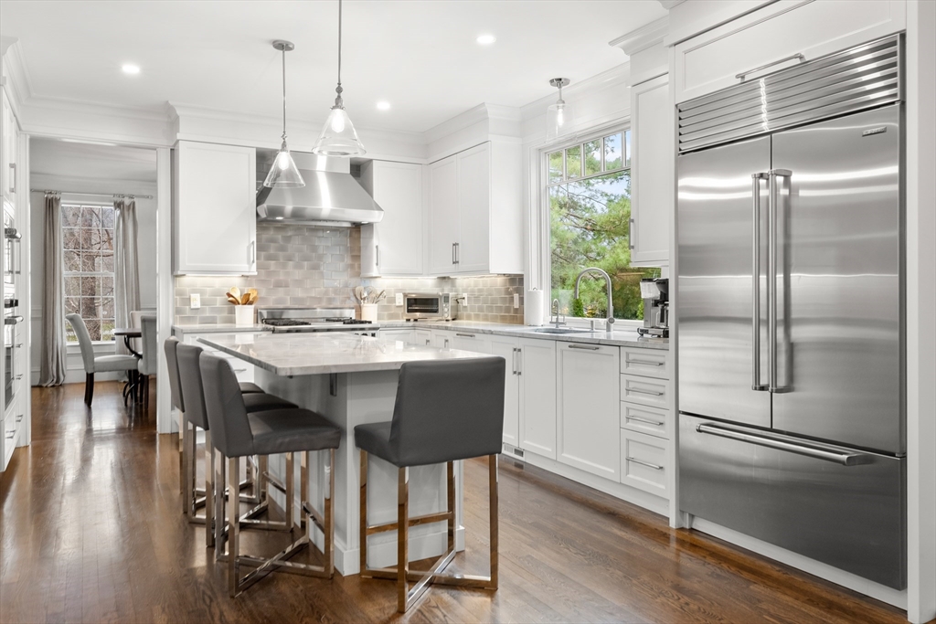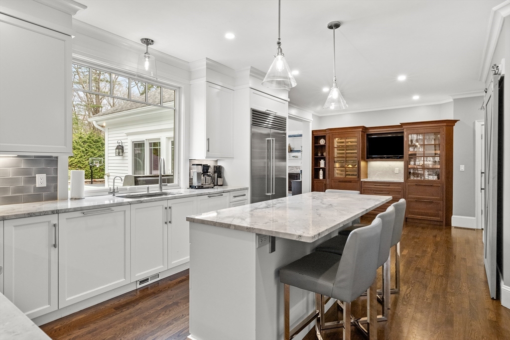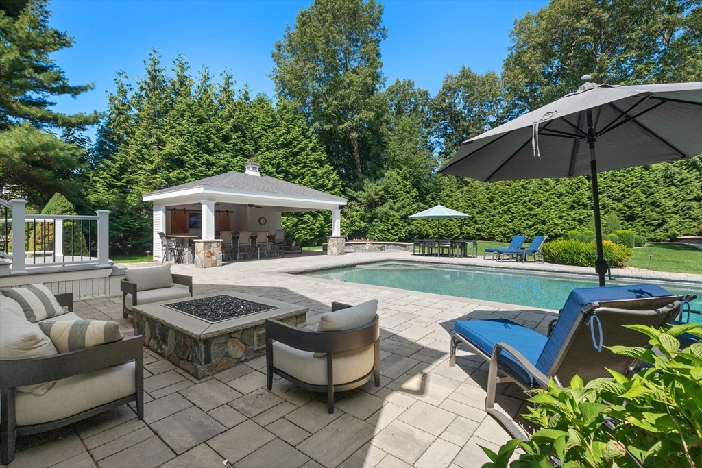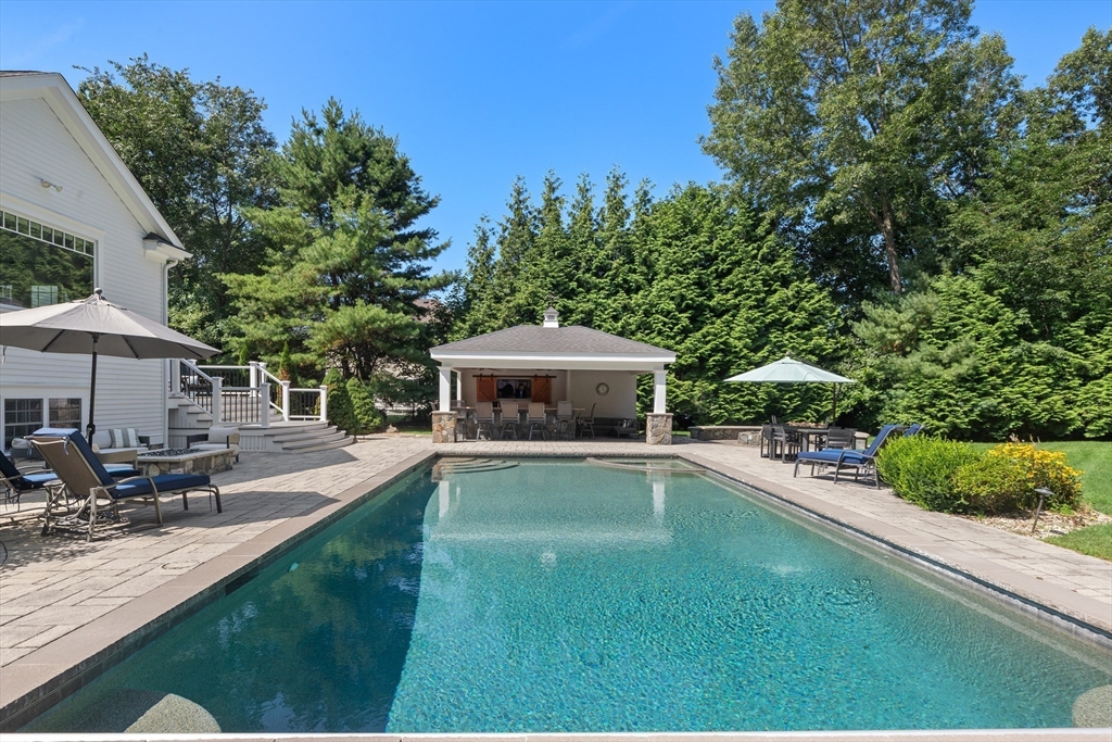 Stately Colonial offering high-end custom details is designed for both elegant living & exceptional entertaining. The newly renovated custom kitchen features Sub-Zero & high-end appliances, custom cabinetry, charming pantry & a large center island, flowing seamlessly into a fireplaced family room with built-ins, and classic picture frame moldings. A stunning picture window overlooks the private backyard retreat with a gunite pool, two fire pits (one gas), outdoor kitchen with TV, grassy play area & a basketball court. An elegant living room flows into the dining room for those special events. Upstairs, you’ll find four spacious bedrooms, including a luxurious primary suite with a newly updated spa-like bath, along with beautiful hardwood floors throughout. The walk-out lower level offers a wet bar, recreation room, bathroom, & home gym, creating the ultimate lifestyle property inside & out. FIRST SHOWINGS AT SUNDAY OPEN HOUSE 2:00 TO 3:30. HURRY, SHARP PRICE WILL ENSURE A QUICK SALE