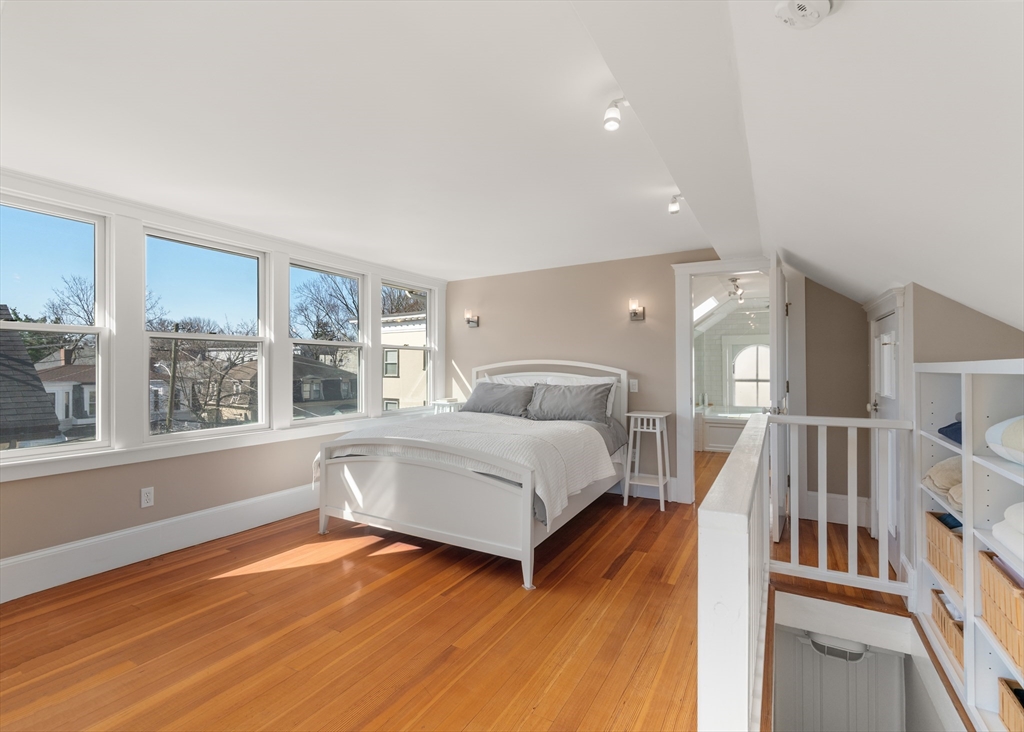 Located in the heart of the historic Baldwin neighborhood & designed with a Cape Cod aesthetic, this exceptional home showcases period features that complement the modern updates throughout. The open-plan 1st floor features an expansive living room with a bay window & fireplace, and dining room with another bay window. The eat-in kitchen provides striking stone countertops, stainless steel appliances, and access to the patio surrounded by curated gardens and a fence. There's also an office/guest bedroom with a separate entrance, and 1/2 bath on this floor. Upstairs are 2 bedrooms, a study, laundry area, and 4-piece radiant-heated hall bath with a double vanity, and soaking tub. The top level houses the primary bedroom with a spacious en-suite bath. The full-footprint lower level offers a large storage & utility area with bulkhead exterior access. Outside, there is a brick driveway accommodating 2 cars. Just 1 block to the Baldwin School, and down the street from Sacramento Field.