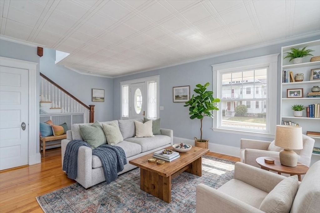 Welcome to 16 Rutherford Ave, where timeless character meets thoughtful modern updates. This beautifully maintained New England four-square is a true standout, set in one of Haverhill’s most desirable neighborhoods. A screened-in porch welcomes you home, an ideal spot to unwind on warm summer evenings. Inside, the spacious living and dining rooms flow seamlessly together, filled with natural light that creates a warm and inviting atmosphere throughout. The kitchen and first-floor bathroom have been tastefully renovated. Upstairs, you’ll find three generously sized bedrooms, all offering ample closet space. The full bathroom is charming and conveniently located, while an additional bonus room provides the perfect space for a home office. The walk-up attic features high ceilings and offers excellent storage potential. Outside, enjoy a fully fenced backyard complete with a large deck, a two-car garage, and an additional shed—plenty of space for entertaining, hobbies, and everyday living.