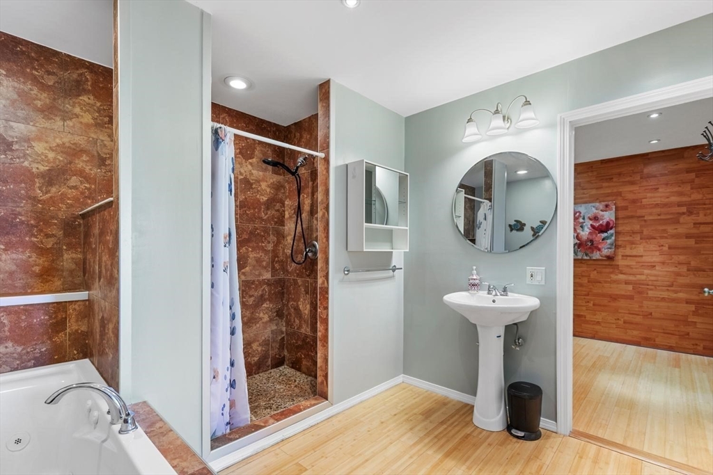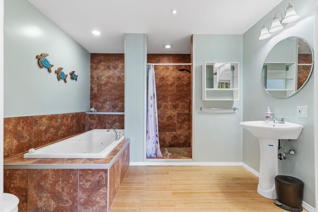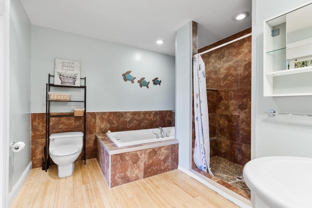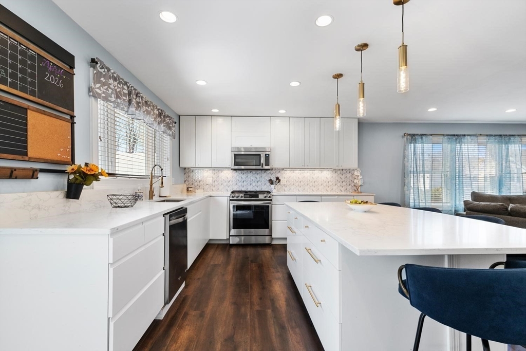 Feels like a single-family! This duplex-style two-family townhome offers over 1,800 square feet of living area with an open floor plan, tastefully renovated with a fully applianced kitchen featuring an updated stove, beautiful cabinetry, and granite countertops. The space flows into a bright, inviting living area with beautiful dark sgyflooring throughout. Enjoy a spacious primary suite and a bathroom on each level. Additional highlights include updated heating, basement storage, no condo fee, off-street parking, and a yard area just in time for summer grilling. Ideally located just under 2 miles to the center, with easy access to the train, Dean College, and more. Enjoy all the shops and amenities that Franklin has to offer, along with convenient highway access.showings start now!