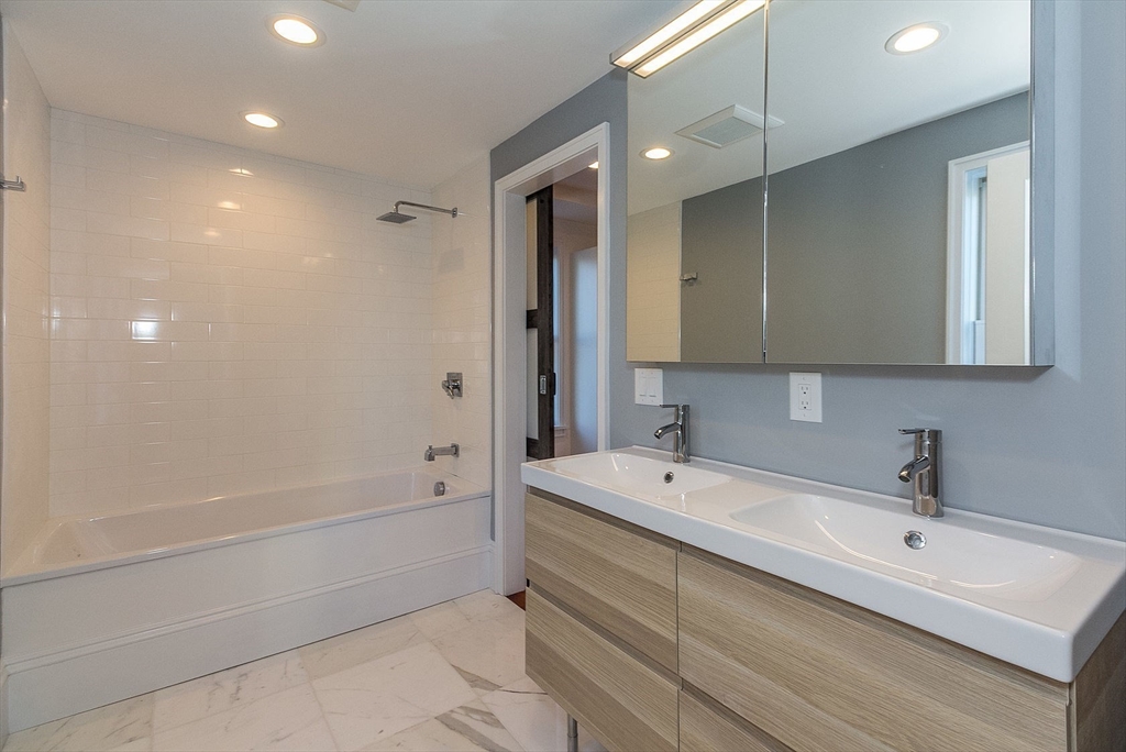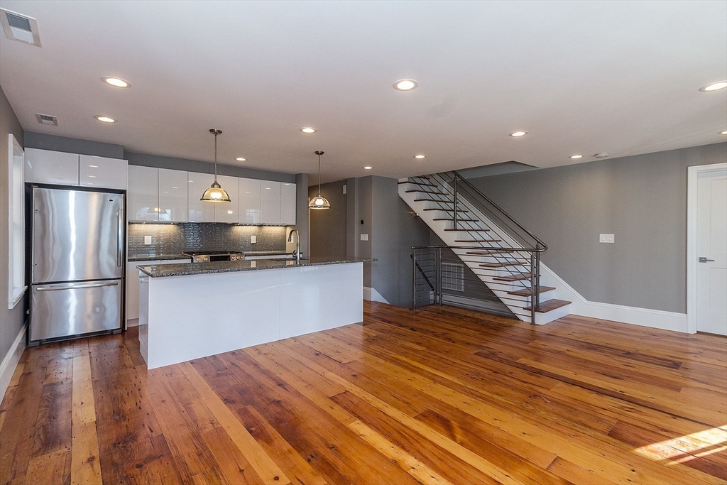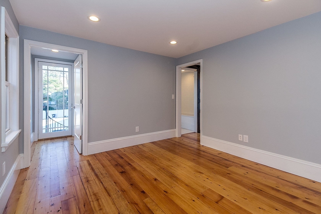 Elegant and beautifully appointed duplex located less than 1 mile from the heart of Harvard Square. This home recently underwent a full gut renovation retaining the elegant look of a classic Cambridge residence while adding desirable modern amenities. Spacious and homey, this unit features an ideal floor plan with a lovely blend of both defined rooms and open flow. Stunning, honey-stained wide plank flooring catches your eye immediately upon entry. The kitchen was designed for both cooking and family time, with island seating and plenty of counterspace. There are many various combinations for home office and/or home learning areas with 3 bedrooms plus a large, third-floor room. Extras with this unit include in-unit laundry, central air conditioning, Nest thermostat, and off-street parking. Relish the warm summer nights on your exclusive deck or enjoy some of the most desirable restaurants in Cambridge just a short distance away. No pets!