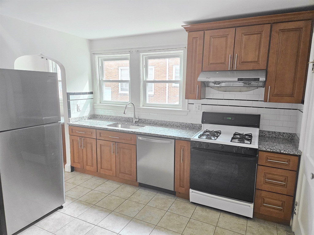 Bright and welcoming 2-bedroom apartment in a well-kept two-family house, blending classic charm with modern updates. Hardwood floors throughout the living room, dining room and both bedrooms. Double-pane windows throughout the apartment provide added comfort and efficiency. The renovated eat-in kitchen features granite countertops, wood cabinetry, tile flooring, pantry space, gas cooking with a vented hood, dishwasher and disposal. A rear deck overlooks the back yard, offering a perfect spot to unwind or entertain. Common laundry area in basement and parking is included in rent. No pets, no smoking. Located near Brighton Center, Cleveland Circle and Boston College. Just a 10–15 minute walk to the MBTA Green Lines (B, C, D). Easy drive into Boston makes this an excellent choice for commuters. Applicants must have strong credit and provide proof of income.