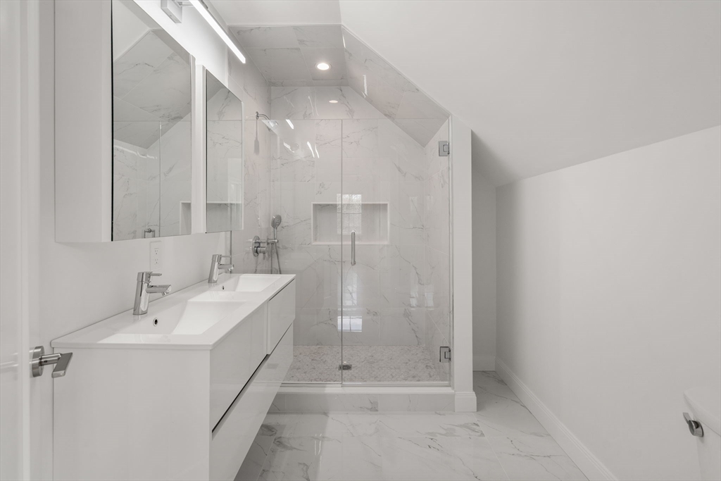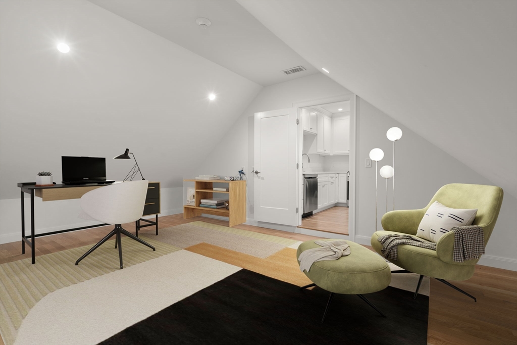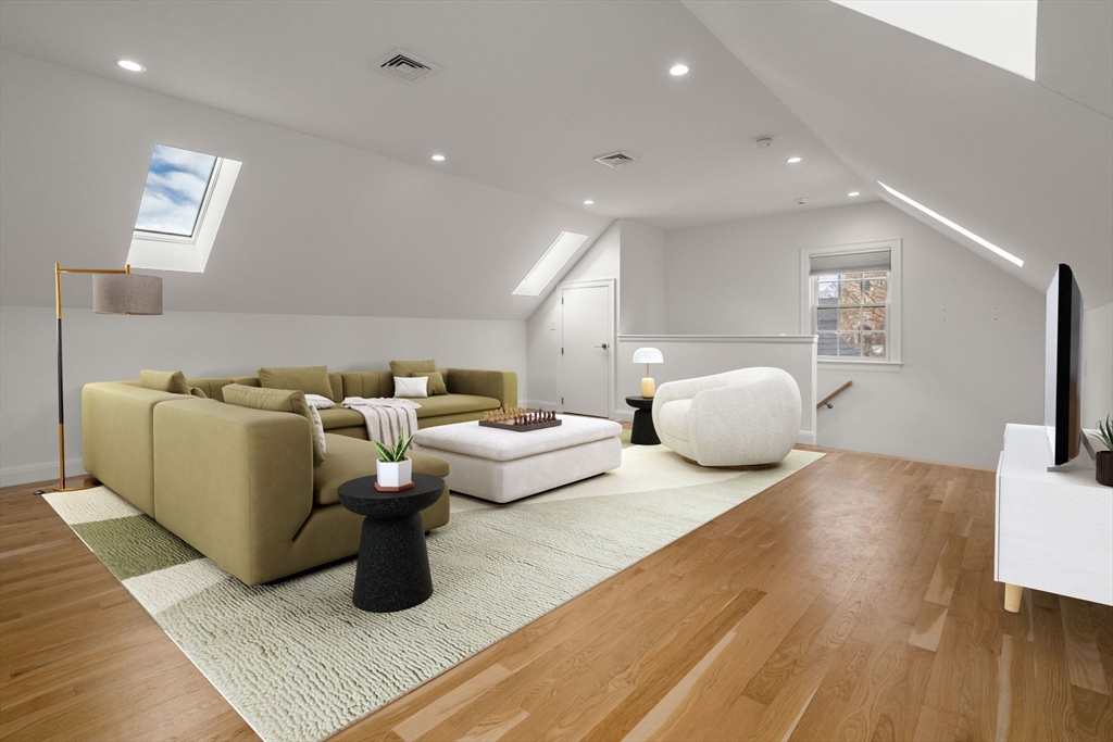 Beautifully rebuilt and expanded 1+ bedroom residence in a newly converted two-unit property, offering sophisticated, contemporary living in a premier Wellesley Hills commuter location just moments from the Wellesley Hills Branch Library. This thoughtfully designed home features a chef’s kitchen with custom shaker cabinetry, quartz/stone countertops, and high-end finishes, opening to a dramatic living space with vaulted ceilings and skylights that fill the home with natural light. A spacious, spa-inspired bath and a versatile flex room—ideal for a home office or guest space—add both comfort and functionality. Enjoy easy access to the Wellesley Hills commuter rail, Route 9, and I-128, along with the convenience of two deeded parking spaces. An exceptional opportunity to own a meticulously crafted residence in one of Wellesley’s most desirable locations.