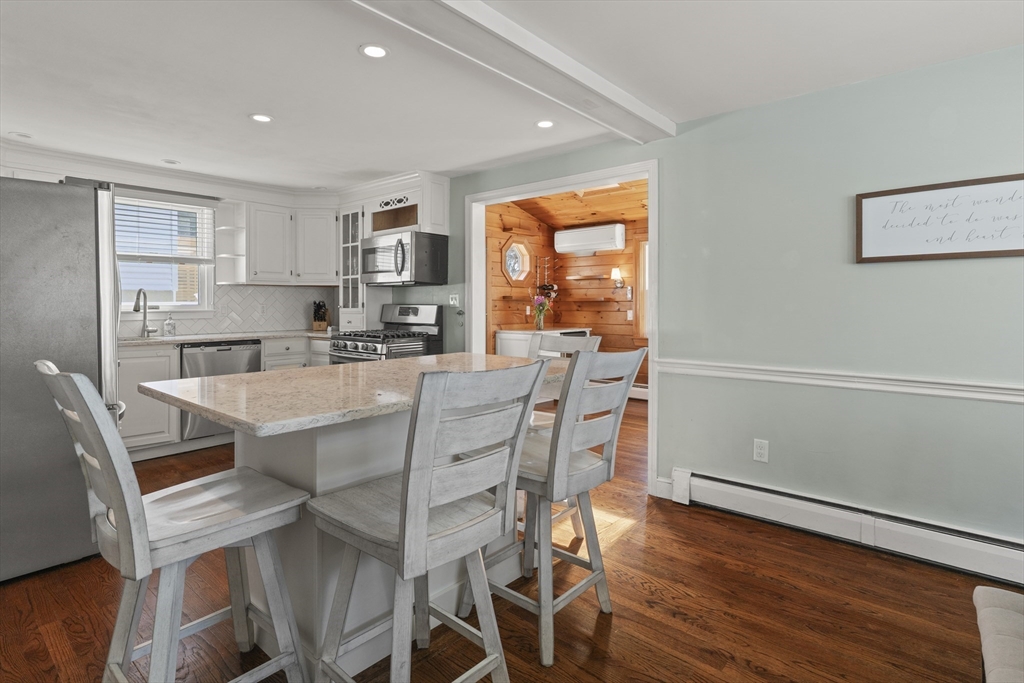 Move right into this sun filled, thoughtfully updated Colonial in one of West Roxbury’s most desirable neighborhoods! The main level features a fireplaced living room, dedicated dining area, convenient half bath and an updated kitchen with quartz countertops, stainless steel appliances, and a large island. Just off the kitchen, a standout sunroom wrapped in natural wood with skylights and a wet bar offering the perfect flex space for a second living area, playroom, or home office.Upstairs you'll find four bedrooms and a full bathroom, with hardwood floors throughout. The finished lower level adding the ultimate bonus living space for a playroom, gym, or media area, plus a full bath and dedicated laundry space. Major updates include central air (2021), roof (2017), and water heater (2025).Step out onto the composite deck to enjoy a private, fully fenced backyard sure to become your personal sanctuary for relaxing and entertaining. Minutes to Centre St, Roche Bros, shops, and MBTA!