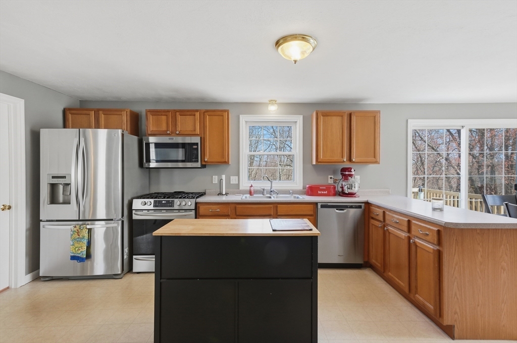 Welcome to this charming Colonial nestled in the highly desirable Bradford section of Haverhill! This well-maintained home offers 6+ spacious rooms, including 3 bedrooms and 2.5 baths, providing plenty of room for comfortable living. The fully applianced eat-in kitchen with stainless steel appliances and big breakfast nook, makes it perfect for everyday meals and entertaining alikeEnjoy additional living space with a partially finished walk-up attic—ideal for a home office, playroom, or guest area. The home features low-maintenance vinyl siding and a two-car garage for added convenienceStep outside to a large deck overlooking a beautiful, private lot of over half an acre—perfect for outdoor gatherings, gardening, or simply relaxing.A wonderful opportunity to own in one of Haverhill’s most sought-after neighborhoods—don’t miss it!