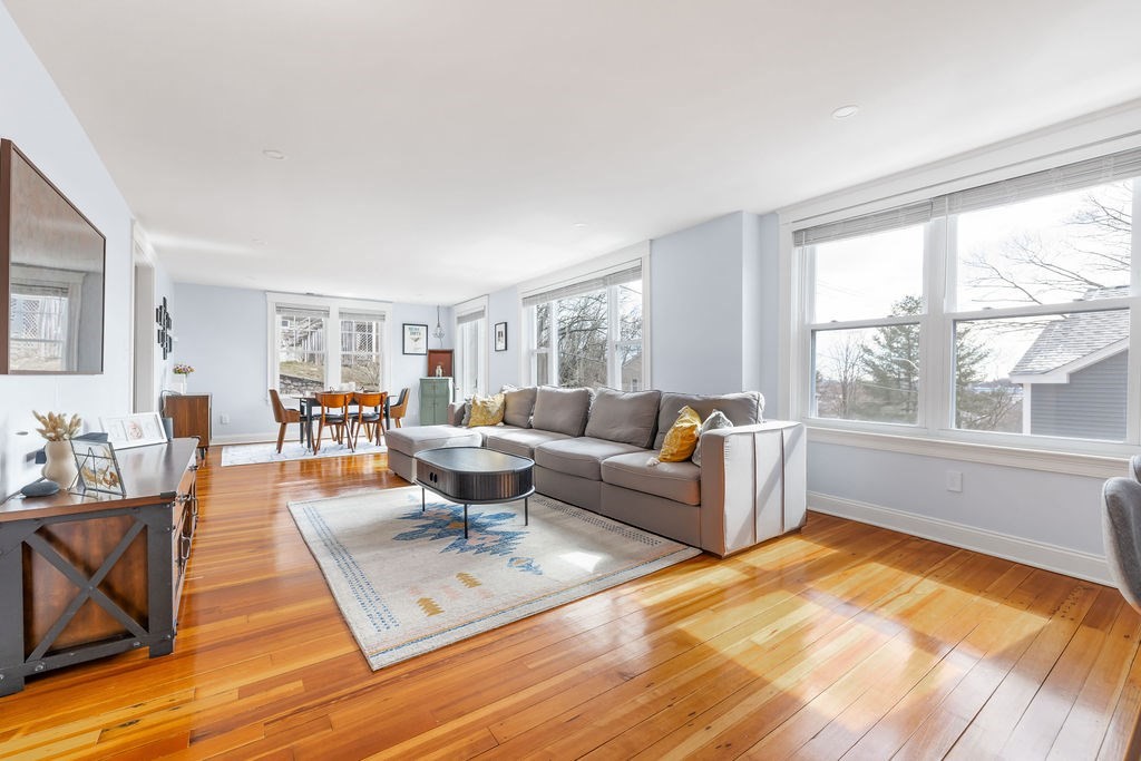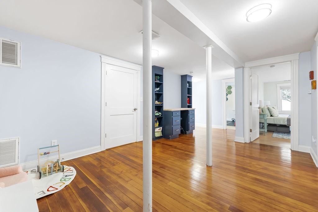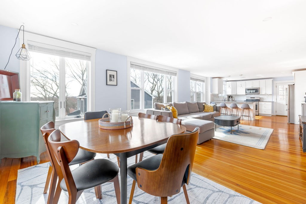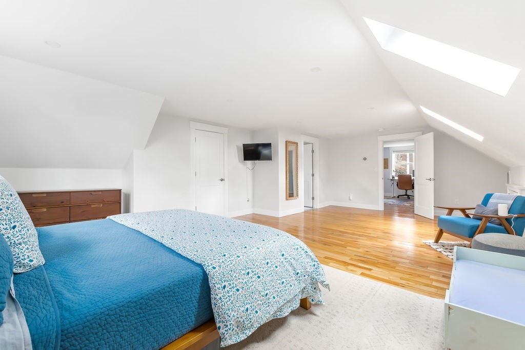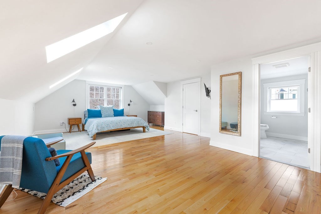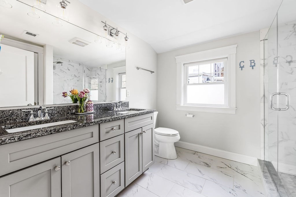 Thoughtfully expanded and fully reimagined, this 4 bed, 3 bath Colonial offers a distinctive, design-forward layout across multiple levels. The main floor unfolds with an open living and dining area, enhanced by recessed lighting and seamless flow into a well-appointed kitchen with granite surfaces, stainless appliances, and abundant cabinetry. A first-floor bedroom, full bath, and dedicated laundry add flexibility. Upstairs, the primary suite feels like a private retreat—complete with a 16x24 bedroom, walk-in closet, glass-enclosed shower, and an adjoining den or lounge. The lower level introduces two additional bedrooms, a full bath, and a versatile living space with direct access to the exterior—well-suited for work, guests, or extended living. Central air, gas systems, and wood and tile flooring throughout. Fully fenced yard with patio and shed, plus decks for outdoor enjoyment.