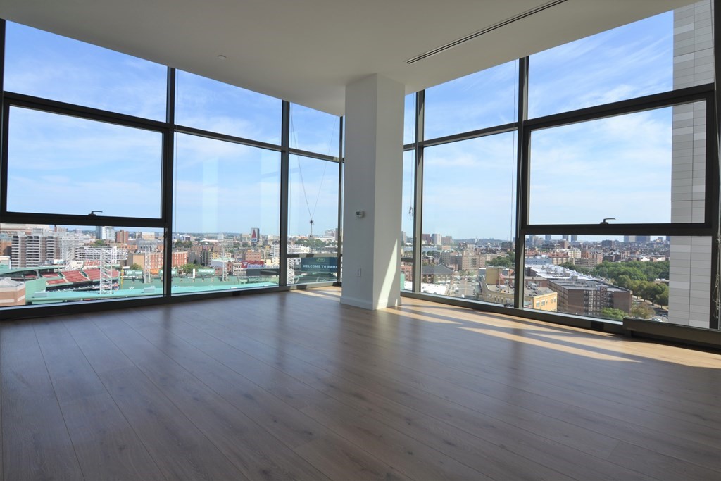 Corner penthouse with large private terrace and unique views of Fenway Park and Charles River, plus peeks back towards the Fens and MFA. 14-foot windows, open design with wide plank flooring, and modern finishes give this apartment the perfect finishing touches. This stylish apartment in Fenway offers discerning renters a location minutes to LMA hospitals, the MFA, Fenway Park, and the bustling Fenway restaurant scene. 24/7 concierge, 20th floor Sky Deck w/reservable Greenhouse event space, grills, outdoor TV, dining and seating areas, 15th floor Sun Deck w/outdoor showers, movie screening & lounge areas, The Jade Room for relaxing or meetings, and a 24/7 health club. Onsite garage parking available for rent $480/month. Renters pay water/sewer, electricity, internet (usage-based via third-parties). Bike storage $15/month. Pets $50/month. Sorry, no undergrads. 12 MONTH LEASE TERM.