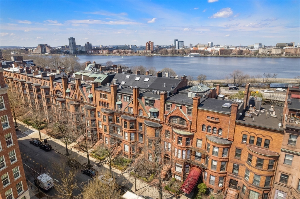 Located on the border of Back Bay and Fenway, this gracious upper-level floor-through residence in an elevator Brownstone building offers unobstructed views of the Charles River and a refined living experience at exceptional value. This pristine home is filled with natural light throughout the day, features high ceilings and includes two bedrooms plus an office, two full bathrooms, and two direct-access parking spaces. The renovated chef’s kitchen, complete with stainless steel appliances, granite countertops, a breakfast bar, and ample prep space, flows seamlessly into the living room with a gas fireplace and a dining area showcasing stunning Charles River views. The oversized primary suite offers a wall of closet space and a stylish en-suite bath. The second bedroom is generously sized, and the office/flex space presents the opportunity for a third bedroom. Central A/C, in-unit laundry, professional management, and a pet-friendly association complete this exceptional home.