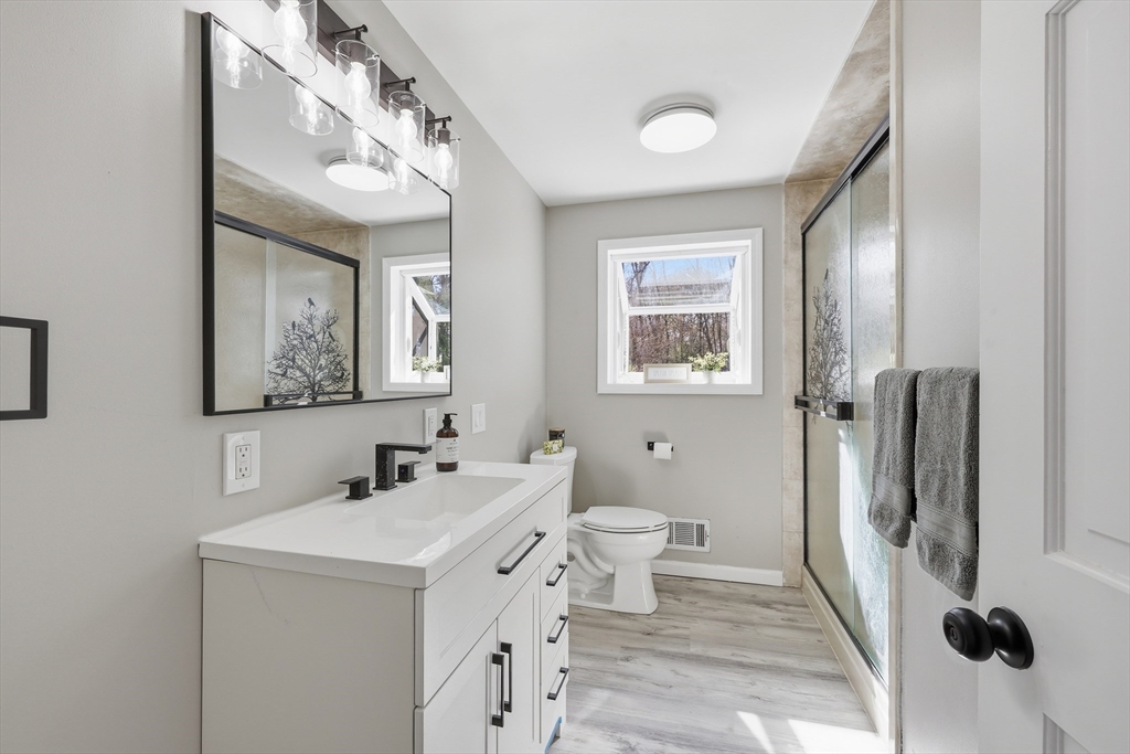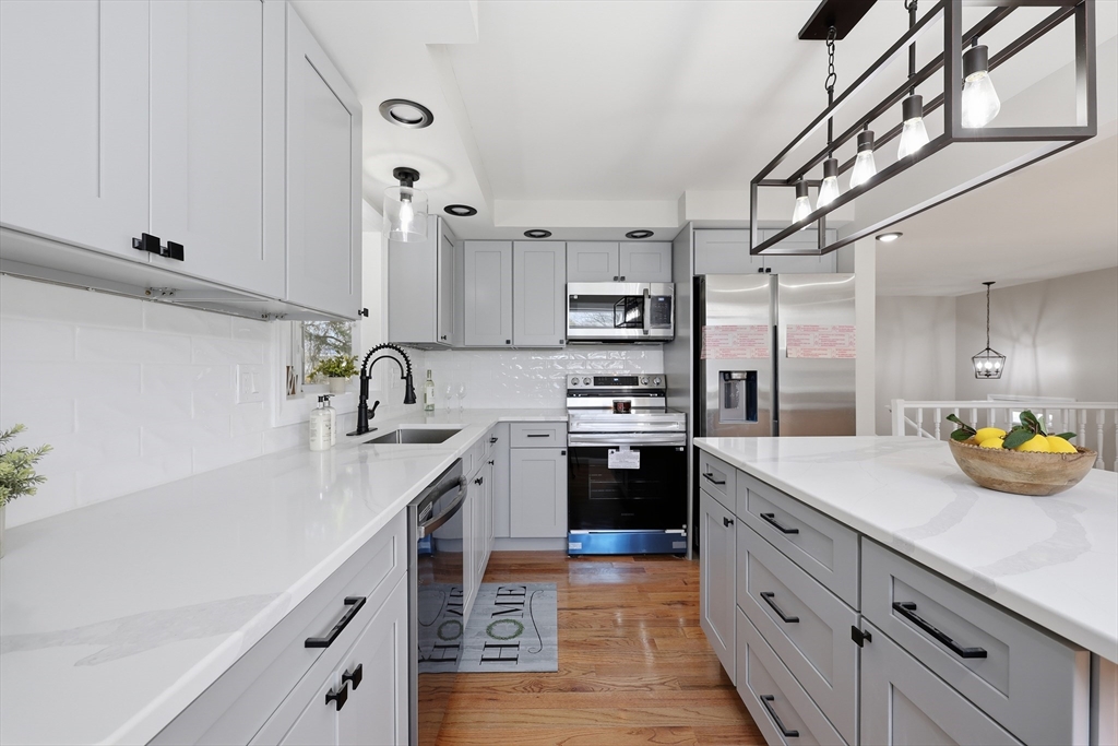 Welcome to this beautifully updated split-level home in sought-after Feeding Hills, offering modern finishes, flexible layout and true move-in-ready convenience. The heart of the home is a FABULOUS BRAND-NEW KITCHEN, featuring gray shaker cabinetry, sleek quartz countertops, stainless appliances and a center island -perfect for both everyday living & entertaining. The open-concept main level showcases an updated full bath, all new flooring, updated lighting & lovely porch adding to the bright atmosphere. This home offers a versatile floor plan w/ 2 bedrooms on the upper level and a 3rd on the lower level, ideal for guests, home office or added privacy. The lower level also includes an additional living space & a second full bath. Step outside to a spacious yard w/ endless potential for outdoor enjoyment, gardening or future enhancements. Attached 2 car garage adds convenience and storage. Located close to local amenities, schools and highway. This is the one you have been waiting for!